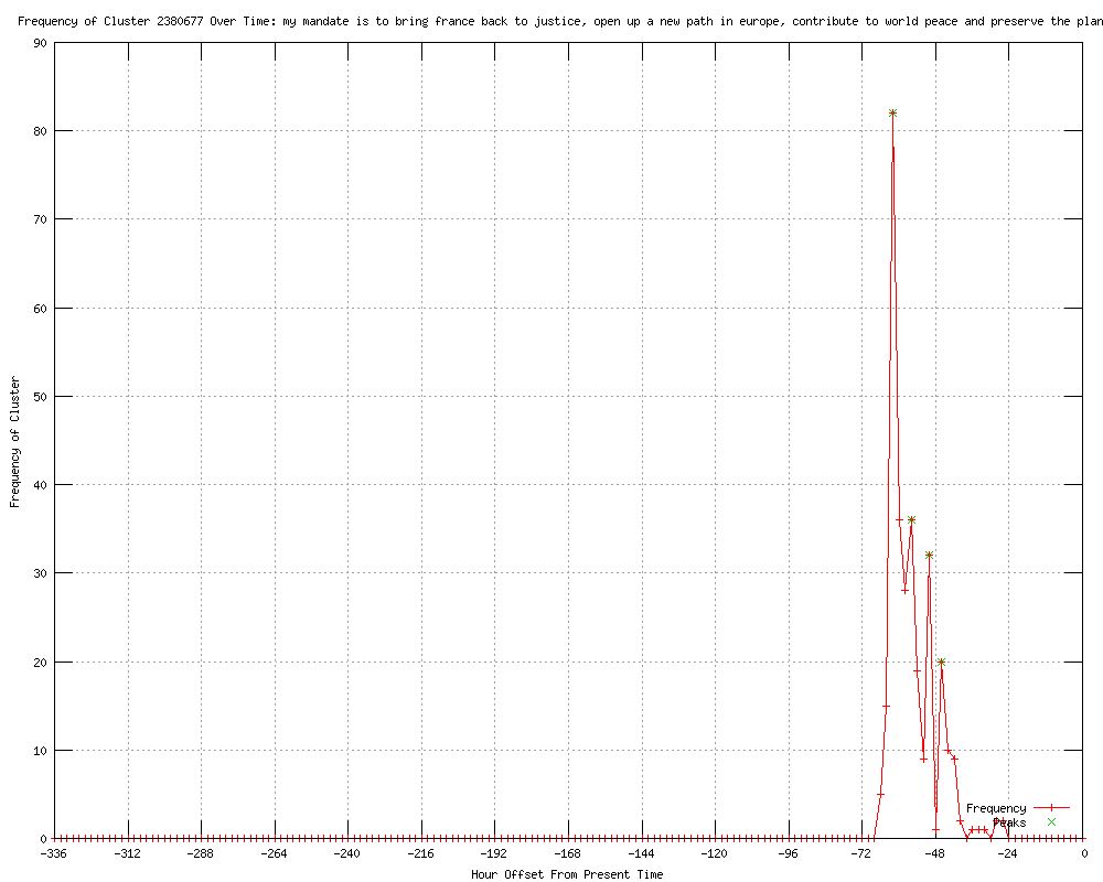 | 17 | my mandate is to bring france back to justice, open up a new path in europe, contribute to world peace and preserve the planet Urls http://shamsterwheels.blogspot.com/2012/05/francois-hollande-becomes-frances-new.html http://news.bbc.co.uk/news/world-europe-18067852 http://bbc.co.uk/news/world-europe-18078845#sa-ns_mchannel=rss&ns_source=PublicRSS20-sa http://news.bbc.co.uk/news/world-europe-18078845 http://bbc.co.uk/news/world-europe-18078845 http://sott.net/articles/show/245490-Message-from-the-Universe-French-President-Hollande-s-plane-hit-by-lightning- http://news.peacefmonline.com/news/201205/114112.php http://thaindian.com/newsportal/politics/new-french-presidents-first-flight-struck-by-lightning_100618257.html http://siasat.com/english/news/new-french-presidents-first-flight-struck-lightning http://indiatalkies.com/2012/05/french-presidents-flight-struck-lightning.html http://newkerala.com/news/newsplus/worldnews-21216.html http://francenews.net/story/205830152 http://twocircles.net/2012may15/new_french_presidents_first_flight_struck_lightning.html http://radionz.co.nz/news/world/105944/hollande-in-germany-after-lightning-strikes-plane http://expressbuzz.com/world/Hollande?s-first-flight-struck-by-lightning/392107.html http://expressbuzz.com/world/hollande?s-first-flight-struck-by-lightning/392107.html http://radionz.co.nz/news/world/105944/new-french-president-stresses-need-for-growth |