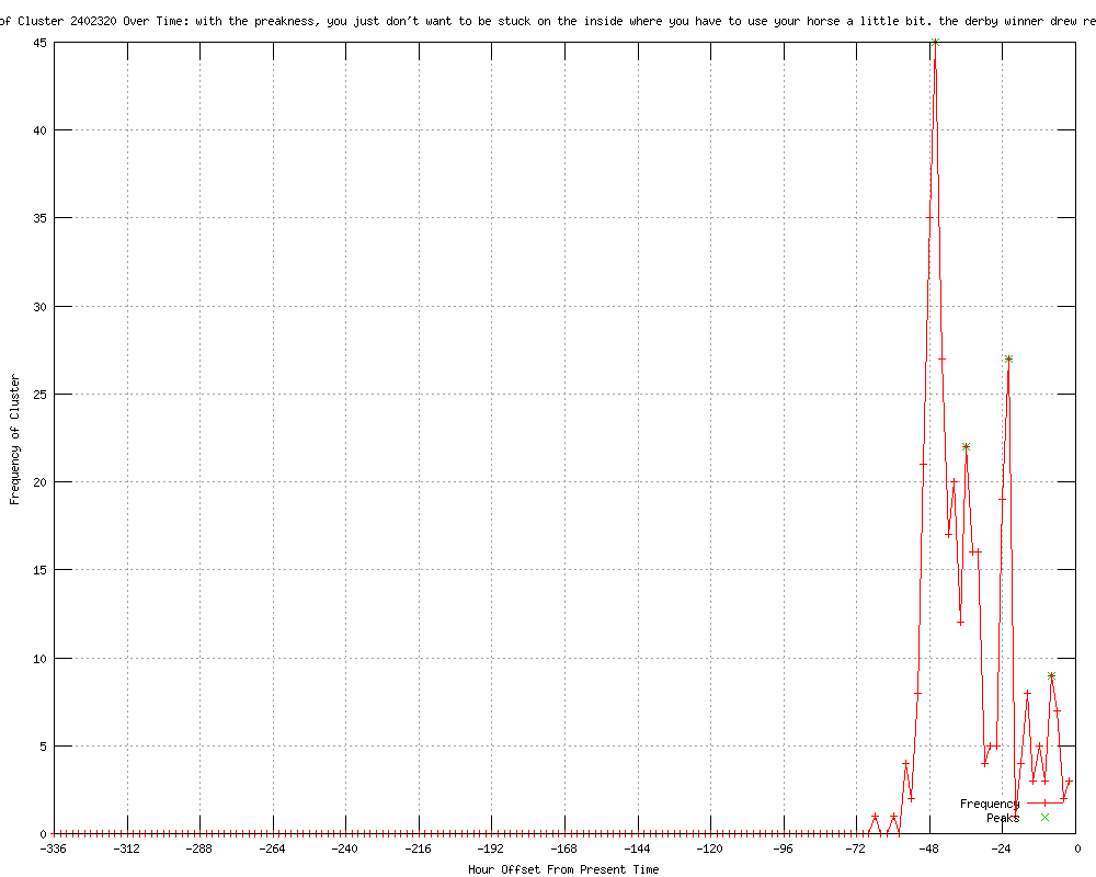 | 49 | with the preakness, you just don't want to be stuck on the inside where you have to use your horse a little bit. the derby winner drew really well, also Urls http://condo.com/Community/UserBlogPost.aspx?ID=57685 http://sportsillustrated.cnn.com/2012/more/05/16/preakness-draw.ap/index.html?xid=si_topstories http://sportsillustrated.cnn.com/2012/more/05/16/preakness-draw.ap/index.html?eref=si_more http://artesianews.com/ap-news/sports-ap-news/bodemeister-8-5-morning-line-favorite-in-preakness/ http://blog.pennlive.com/patriotnewssports/2012/05/bodemeister_8-5_morning_line_f.html http://bangordailynews.com/2012/05/16/sports/bodemeister-8-5-morning-line-favorite-in-preakness/ http://ohio.com/sports/the-preakness-derby-runner-up-bodemeister-is-favorite-in-no-7-post-1.307537 http://statesman.com/sports/derby-runner-up-bodemeister-favorite-in-preakness-2360519.html?cxtype=rss_sports http://app.com/article/20120516/NJSPORTS07/305160111/1002/SPORTS&source=rss http://goerie.com/article/20120517/SPORTS1402/305179920/Bodemeister-picks-up-early-edge-on-I%27ll-Have-Another http://durangoherald.com/article/20120516/SPORTS01/705179995&source=RSS http://.wsls.com/sports/2012/may/16/virginia-born-bodemeister-early-favorite-preakness-ar-1920170/ http://news-sentinel.com/apps/pbcs.dll/article?AID=/20120516/AP01/305169908 http://courier-tribune.com/sections/sports/pro/bodemeister-8-5-morning-line-favorite-preakness.html http://heraldnet.com/article/20120516/SPORTS/120519813 http://.wsls.com/sports/2012/may/16/2/virginia-born-bodemeister-early-favorite-preakness-ar-1920170/ http://wsbradio.com/ap/ap/top-news/bodemeister-8-5-morning-line-favorite-in-preakness/nN7hg/ http://cleveland.com/horseracing/index.ssf/2012/05/derby_runner-up_bodemeister_re.html http://seattletimes.nwsource.com/html/othersports/2018224835_horse17.html?syndication=rss http://aikenstandard.com/story/s0348-BC-RAC-Preakness-1stLd-Writethru-05-16-0928--4005582 http://jsonline.com/sports/etc/bodemeister-ready-for-another-chance-qs5ep0t-151823725.html http://themonitor.com/sports/morning-60938-preakness-baltimore.html http://sfgate.com/cgi-bin/article.cgi?f=/c/a/2012/05/16/SPHQ1OIVSA.DTL&feed=rss.sports http://tcpalm.com/news/2012/may/17/bodemeister-8-5-favorite-in-preakness/ http://ktvn.com/story/18469899/derby-winner-is-second-favorite-in-preakness http://artesianews.com/ap-news/sports-ap-news/derby-winner-is-second-favorite-in-preakness/ http://news.yahoo.com/derby-winner-second-favorite-preakness-090918294--spt.html http://abc3340.com/story/18469899/derby-winner-is-second-favorite-in-preakness http://wten.com/story/18469899/derby-winner-is-second-favorite-in-preakness http://utsandiego.com/news/2012/may/17/derby-winner-is-second-favorite-in-preakness/ http://kdwn.com/news/sports-news/Derby_winner_is_second-favorite_in_Preakness http://goerie.com/apps/pbcs.dll/article?AID=/20120517/APS/1205170627 http://cbssports.com/general/story/19071713/derby-winner-ill-have-another-52-second-favorite-for-preakness/rss http://news-sentinel.com/apps/pbcs.dll/article?AID=/20120517/SPORTS/120519644 http://wralsportsfan.com/rs/story/11110920/ http://fox41.com/story/18469899/derby-winner-is-second-favorite-in-preakness http://cbsnews.com/8301-400_162-57436230/preakness-derby-winner-ill-have-another-is-second-favorite-behind-bodemeister/ http://newschannel10.com/story/18469899/derby-winner-is-second-favorite-in-preakness http://sportmax.se/2012/05/17/2012-preakness-odds/ http://freep.com/article/20120517/SPORTS18/205170732/1048/sports http://the-review.com/ap%20sports/2012/05/17/bodemeister-favorite-in-preakness http://thenewstribune.com/2012/05/17/2147852/bodemeister-installed-as-preakness.html?storylink=rss http://spokesman.com/stories/2012/may/17/bodemeister-installed-as-preakness-favorite/ http://delmarvanow.com/article/20120517/SPORTS/205170407/The-Preakness-Bodemeister-8-5-morning-favorite?odyssey=mod|newswell|text|frontpage|s http://brownsvilleherald.com/sports/horse-140325-line-baltimore.html http://daily-jeff.com/ap%20sports/2012/05/17/bodemeister-is-favored-in-preakness http://hawaiitribune-herald.com/sections/sports/procollege/derby-runner-favored-again-preakness.html http://bucyrustelegraphforum.com/usatoday/article/39269503?odyssey=mod|newswell|text|Frontpage|s http://sfgate.com/cgi-bin/article.cgi?f=/c/a/2012/05/17/SPHQ1OIVSA.DTL&feed=rss.sports |