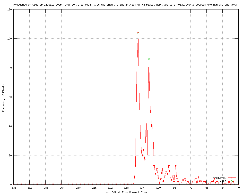 | 71 | so it is today with the enduring institution of marriage. marriage is a relationship between one man and one woman Urls http://my.news.yahoo.com/romney-courts-young-evangelicals-promotes-values-003227145.html http://au.news.yahoo.com/a/-/business/13669804/romney-reaffirms-his-opposition-to-same-sex-marriage/ http://au.news.yahoo.com/a/-/world/13669804/romney-reaffirms-his-opposition-to-same-sex-marriage/ http://hindustantimes.com/world-news/Americas/Romney-reaffirms-opposition-to-same-sex-marriage/Article1-854871.aspx http://news24.com/World/News/Romney-maintains-opposition-to-gay-marriage-20120512 http://24.com.feedsportal.com/c/33816/f/607927/s/1f4b2610/l/0L0Snews240N0CWorld0CNews0CRomney0Emaintains0Eopposition0Eto0Egay0Emarriage0E20A120A512/story01.htm http://thenews.com.pk/Todays-News-1-108073-Romney-reaffirms-his-opposition-to-same-sex-marriage http://thenews.com.pk/article-48783-Romney-rejects-same-sex-marriage http://uk.news.yahoo.com/romney-adamantly-rejects-same-sex-marriage-185158116.html http://au.news.yahoo.com/world/a/-/world/13669804/romney-adamantly-rejects-same-sex-marriage/ http://rawstory.com/rs/2012/05/12/romney-adamantly-rejects-same-sex-marriage/ http://au.news.yahoo.com/a/-/world/13669804/romney-adamantly-rejects-same-sex-marriage/ http://au.news.yahoo.com/a/-/business/13669804/romney-adamantly-rejects-same-sex-marriage/ http://adelaidenow.com.au/news/breaking-news/romney-adamantly-rejects-same-sex-marriage/story-e6frea73-1226353949961?from=public_rss http://news.com.au.feedsportal.com/c/34564/f/632403/s/1f4b9257/l/0L0Snews0N0Bau0Cbreaking0Enews0Cromney0Eadamantly0Erejects0Esame0Esex0Emarriage0Cstory0Ee6frfku0A0E12263539499610Dfrom0Fpublic0Irss/story01.htm http://dailytelegraph.com.au/news/breaking-news/romney-adamantly-rejects-same-sex-marriage/story-e6freuyi-1226353949961 http://news.com.au.feedsportal.com/c/34564/f/632387/s/1f4b91b5/l/0L0Snews0N0Bau0Cbreaking0Enews0Cromney0Eadamantly0Erejects0Esame0Esex0Emarriage0Cstory0Ee6frfku0A0E12263539499610Dfrom0Fpublic0Irss/story01.htm http://news.com.au/breaking-news/romney-adamantly-rejects-same-sex-marriage/story-e6frfku0-1226353949961?from=public_rss http://japantoday.com/category/world/view/romney-adamantly-rejects-same-sex-marriage http://archive.japantoday.com/category/world/view/romney-adamantly-rejects-same-sex-marriage http://nwotruth.com/romney-adamantly-rejects-same-sex-marriage/ http://deccanchronicle.com/channels/world/north-america/romney-adamantly-rejects-same-sex-marriage-096 http://adelaidenow.com.au/news/breaking-news/mitt-romney-adamantly-rejects-same-sex-marriage/story-e6frea7u-1226354150270?from=public_rss http://hindustantimes.com/world-news/Americas/Romney-adamantly-rejects-same-sex-marriage/Article1-855027.aspx http://news.com.au.feedsportal.com/c/34564/f/632387/s/1f4d56b6/l/0L0Snews0N0Bau0Cbreaking0Enews0Cworld0Cmitt0Eromney0Eadamantly0Erejects0Esame0Esex0Emarriage0Cstory0Ee6frfkui0E1226354150A270A0Dfrom0Fpublic0Irss/story01.htm http://dailytelegraph.com.au/news/breaking-news/mitt-romney-adamantly-rejects-same-sex-marriage/story-e6freuz9-1226354150270 http://abc.net.au/news/2012-05-13/cheers-as-romney-rejects-same-sex-marriage/4008412 http://channelnewsasia.com/stories/afp_world/view/1200970/1/.html http://uk.news.yahoo.com/romney-adamantly-rejects-same-sex-marriage-053947140.html http://theblaze.com/stories/romney-uses-commencement-to-reaffirm-marriage-between-one-man-and-one-woman/ http://blackpoliticalbuzz.blogspot.com/2012/05/view-larger-map.html http://foxtricities.com/politics/31050839/detail.html http://thehimalayantimes.com/rssReference.php?id=MzMxODAz http://abs-cbnnews.com/global-filipino/world/05/13/12/romney-adamantly-rejects-same-sex-marriage http://feeds.bangkokpost.com/c/33101/f/535952/s/1f4d5ec7/l/0L0Sbangkokpost0N0Cnews0Cworld0C2930A990Cromney0Eadamantly0Erejects0Esame0Esex0Emarriage/story01.htm http://afp.com/en/news/topstories/romney-adamantly-rejects-same-sex-marriage http://mysinchew.com/node/73468 http://rawstory.com/rs/2012/05/13/romney-adamantly-rejects-same-sex-marriage-2/ http://nwotruth.com/romney-adamantly-rejects-same-sex-marriage-2/ http://thestandard.com.hk/news_detail.asp?pp_cat=17&art_id=122356&sid=36387159&con_type=1&d_str=20120514 http://thestandard.com.hk/news_detail.asp?pp_cat=17&art_id=122356&sid=36387159&con_type=1 http://irishexaminer.com/sport/kfsnmhqlojcw/rss2/ http://monitor.co.ug/News/World/Romney+adamantly+rejects+same+sex+marriage/-/688340/1404956/-/gg5lolz/-/index.html http://mid-day.com/news/2012/may/140512-US-presidential-hopeful-Mitt-Romney-rejects-same-sex-marriages.htm http://thefinancialexpress-bd.com/more.php?news_id=129616&date=2012-05-14 http://kesq.com/news/politics/Romney-addresses-skeptical-Liberty-Univ/-/387816/13206316/-/j8wup5/-/index.html http://localnews8.com/politics/31054124/detail.html http://kjct8.com/politics/31054124/detail.html http://nbcmontana.com/politics/31054124/detail.html http://ktvz.com/politics/31054124/detail.html http://cnn.com/2012/05/14/politics/obama-gay-marriage/index.html?eref=rss_latest http://edition.cnn.com/2012/05/14/politics/obama-gay-marriage/index.html?eref=rss_latest http://cnn.com/2012/05/14/politics/obama-gay-marriage/index.html?eref=rss_topstories http://cnn.com/2012/05/14/politics/obama-gay-marriage/index.html?eref=rss_politics http://rss.cnn.com/~r/rss/cnn_topstories/~3/ISYYQduhIFw/index.html http://wibw.com/home/nationalnews/headlines/Obama-Gay-Marriage_151406945.html http://edition.cnn.com/2012/05/14/politics/obama-gay-marriage/index.html?eref=rss_topstories http://rss.cnn.com/%7Er/rss/cnn_allpolitics/%7E3/W9giLtAa9aM/index.html http://cnn.com/2012/05/14/politics/obama-gay-marriage/index.html?section=cnn_latest http://justnews.com/news/politics/Obama-calls-for-marriage-equality-says-I-want-everyone-treated-fairly/-/1895020/13382566/-/ccsmwd/-/index.html http://kjct8.com/politics/31061170/detail.html http://nbcmontana.com/politics/31061170/detail.html http://edition.cnn.com/2012/05/14/politi