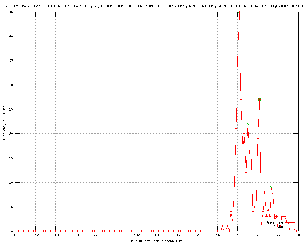 | 49 | with the preakness, you just don't want to be stuck on the inside where you have to use your horse a little bit. the derby winner drew really well, also Urls http://condo.com/Community/UserBlogPost.aspx?ID=57685 http://sportsillustrated.cnn.com/2012/more/05/16/preakness-draw.ap/index.html?xid=si_topstories http://sportsillustrated.cnn.com/2012/more/05/16/preakness-draw.ap/index.html?eref=si_more http://artesianews.com/ap-news/sports-ap-news/bodemeister-8-5-morning-line-favorite-in-preakness/ http://blog.pennlive.com/patriotnewssports/2012/05/bodemeister_8-5_morning_line_f.html http://bangordailynews.com/2012/05/16/sports/bodemeister-8-5-morning-line-favorite-in-preakness/ http://ohio.com/sports/the-preakness-derby-runner-up-bodemeister-is-favorite-in-no-7-post-1.307537 http://statesman.com/sports/derby-runner-up-bodemeister-favorite-in-preakness-2360519.html?cxtype=rss_sports http://app.com/article/20120516/NJSPORTS07/305160111/1002/SPORTS&source=rss http://goerie.com/article/20120517/SPORTS1402/305179920/Bodemeister-picks-up-early-edge-on-I%27ll-Have-Another http://durangoherald.com/article/20120516/SPORTS01/705179995&source=RSS http://.wsls.com/sports/2012/may/16/virginia-born-bodemeister-early-favorite-preakness-ar-1920170/ http://news-sentinel.com/apps/pbcs.dll/article?AID=/20120516/AP01/305169908 http://courier-tribune.com/sections/sports/pro/bodemeister-8-5-morning-line-favorite-preakness.html http://heraldnet.com/article/20120516/SPORTS/120519813 http://.wsls.com/sports/2012/may/16/2/virginia-born-bodemeister-early-favorite-preakness-ar-1920170/ http://wsbradio.com/ap/ap/top-news/bodemeister-8-5-morning-line-favorite-in-preakness/nN7hg/ http://cleveland.com/horseracing/index.ssf/2012/05/derby_runner-up_bodemeister_re.html http://seattletimes.nwsource.com/html/othersports/2018224835_horse17.html?syndication=rss http://aikenstandard.com/story/s0348-BC-RAC-Preakness-1stLd-Writethru-05-16-0928--4005582 http://jsonline.com/sports/etc/bodemeister-ready-for-another-chance-qs5ep0t-151823725.html http://themonitor.com/sports/morning-60938-preakness-baltimore.html http://sfgate.com/cgi-bin/article.cgi?f=/c/a/2012/05/16/SPHQ1OIVSA.DTL&feed=rss.sports http://tcpalm.com/news/2012/may/17/bodemeister-8-5-favorite-in-preakness/ http://ktvn.com/story/18469899/derby-winner-is-second-favorite-in-preakness http://artesianews.com/ap-news/sports-ap-news/derby-winner-is-second-favorite-in-preakness/ http://news.yahoo.com/derby-winner-second-favorite-preakness-090918294--spt.html http://abc3340.com/story/18469899/derby-winner-is-second-favorite-in-preakness http://wten.com/story/18469899/derby-winner-is-second-favorite-in-preakness http://utsandiego.com/news/2012/may/17/derby-winner-is-second-favorite-in-preakness/ http://kdwn.com/news/sports-news/Derby_winner_is_second-favorite_in_Preakness http://goerie.com/apps/pbcs.dll/article?AID=/20120517/APS/1205170627 http://cbssports.com/general/story/19071713/derby-winner-ill-have-another-52-second-favorite-for-preakness/rss http://news-sentinel.com/apps/pbcs.dll/article?AID=/20120517/SPORTS/120519644 http://wralsportsfan.com/rs/story/11110920/ http://fox41.com/story/18469899/derby-winner-is-second-favorite-in-preakness http://cbsnews.com/8301-400_162-57436230/preakness-derby-winner-ill-have-another-is-second-favorite-behind-bodemeister/ http://newschannel10.com/story/18469899/derby-winner-is-second-favorite-in-preakness http://sportmax.se/2012/05/17/2012-preakness-odds/ http://freep.com/article/20120517/SPORTS18/205170732/1048/sports http://the-review.com/ap%20sports/2012/05/17/bodemeister-favorite-in-preakness http://thenewstribune.com/2012/05/17/2147852/bodemeister-installed-as-preakness.html?storylink=rss http://spokesman.com/stories/2012/may/17/bodemeister-installed-as-preakness-favorite/ http://delmarvanow.com/article/20120517/SPORTS/205170407/The-Preakness-Bodemeister-8-5-morning-favorite?odyssey=mod|newswell|text|frontpage|s http://brownsvilleherald.com/sports/horse-140325-line-baltimore.html http://daily-jeff.com/ap%20sports/2012/05/17/bodemeister-is-favored-in-preakness http://hawaiitribune-herald.com/sections/sports/procollege/derby-runner-favored-again-preakness.html http://bucyrustelegraphforum.com/usatoday/article/39269503?odyssey=mod|newswell|text|Frontpage|s http://sfgate.com/cgi-bin/article.cgi?f=/c/a/2012/05/17/SPHQ1OIVSA.DTL&feed=rss.sports |