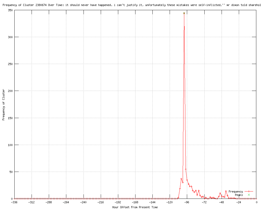 | 29 | this should never have happened. i can't justify it. unfortunately these mistakes were self inflicted Urls http://abclocal.go.com/wls/story?section=news/iteam&id=8663044&rss=rss-wls-article-8663044 http://us.rd.yahoo.com/finance/external/cnnm/rss/SIG=12gili7pe/*http://money.cnn.com/2012/05/15/markets/jpmorgan-shareholder-meeting/index.htm?source=yahoo_quote http://money.cnn.com/2012/05/15/markets/jpmorgan-shareholder-meeting/index.htm http://kjct8.com/money/31066190/detail.html http://money.cnn.com/rssclick/2012/05/15/markets/jpmorgan-shareholder-meeting/index.htm?section=money_topstories http://kvia.com/money/31066190/detail.html http://localnews8.com/money/31066190/detail.html http://ktxs.com/money/31066190/detail.html http://money.cnn.com/rssclick/2012/05/15/markets/jpmorgan-shareholder-meeting/index.htm?section=money_markets http://money.cnn.com/2012/05/15/markets/jpmorgan-shareholder-meeting/index.htm?hpt=hp_t1 http://kesq.com/news/money/JPMorgan-s-Dimon-gets-his-23-million-pay-package/-/232922/13403096/-/5s1xjg/-/index.html http://money.cnn.com/rssclick/2012/05/15/markets/jpmorgan-shareholder-meeting/index.htm?section=money_mostpopular http://clickorlando.com/news/money/JPMorgan-s-Dimon-gets-his-23-million-pay-package/-/1637116/13403096/-/smr88pz/-/index.html http://rss.cnn.com/%7Er/rss/money_topstories/%7E3/kDAS4MididE/index.htm http://stylemagazine.com/jpmorgans-dimon-gets-his-23-million-pay-package/ http://money.cnn.com/rssclick/2012/05/15/markets/jpmorgan-shareholder-meeting/index.htm?section=money_news_international http://indexonline.org/shareholders-approve-dimons-23-million-2/154322?utm_source=rss&utm_medium=rss&utm_campaign=shareholders-approve-dimons-23-million-2 http://upi.com/Business_News/2012/05/15/Shareholders-approve-Dimons-23-million/UPI-56141337067000/ http://hispanicbusiness.com/2012/5/15/shareholders_approve_dimons_23_million.htm http://wibw.com/home/nationalnews/headlines/JPMorgans_Dimon_Gets_His_23_Million_Pay_Package_151586015.html http://wibw.com/home/headlines/JPMorgans_Dimon_Gets_His_23_Million_Pay_Package_151586015.html http://politicalnewsnow.com/2012/05/15/jpmorgans-dimon-gets-his-23-million-pay-package-cnn-money/ http://godlikeproductions.com/forum1/message1869384/pg1 http://stylemagazine.com/fbi-opens-jpmorgan-investigation/ http://theskanner.com/article/JPMorgans-Dimon-Gets-His-23-Million-Pay-Package-2012-05-15 http://money.cnn.com/rssclick/2012/05/16/markets/jpmorgan-fbi-investigation/index.htm?section=money_topstories http://money.cnn.com/2012/05/16/markets/jpmorgan-fbi-investigation/index.htm?hpt=hp_t1 http://money.cnn.com/rssclick/2012/05/16/markets/jpmorgan-fbi-investigation/index.htm?section=money_mostpopular http://rss.cnn.com/%7Er/rss/money_topstories/%7E3/5MnnVoYoPOQ/index.htm |