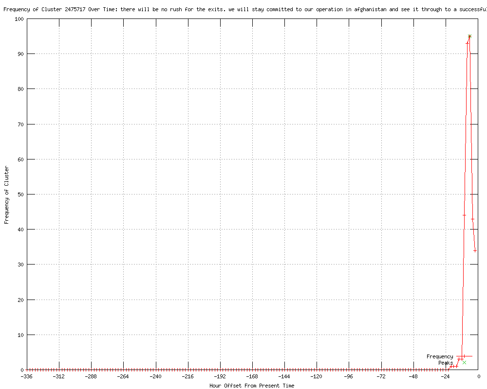 | 18 | there will be no rush for the exits. we will stay committed to our operation in afghanistan and see it through to a successful end Urls http://brecorder.com/top-news/1-front-top-news/58243-nato-chief-vows-no-rush-to-the-exits-in-afghanistan-.html http://nation.com.pk/pakistan-news-newspaper-daily-english-online/international/20-May-2012/nato-chief-vows-no-rush-to-the-exits-in-afghanistan http://uk.news.yahoo.com/nato-chief-vows-no-rush-exits-afghanistan-145543850.html http://ph.news.yahoo.com/nato-chief-vows-no-rush-exits-afghanistan-155543145.html http://focus-fen.net?id=n278472 http://afp.com/en/news/topstories/nato-chief-vows-no-rush-exits-afghanistan http://feeds.bangkokpost.com/c/33101/f/535952/s/1f870273/l/0L0Sbangkokpost0N0Cnews0Casia0C29430A10Cnato0Echief0Evows0Eno0Erush0Eto0Ethe0Eexits0Ein0Eafghanistan/story01.htm http://sg.news.yahoo.com/nato-chief-vows-no-rush-exits-afghanistan-155543145.html http://my.news.yahoo.com/nato-chief-vows-no-rush-exits-afghanistan-155543145.html http://hindustantimes.com/world-news/Americas/NATO-chief-vows-no-rush-to-the-exits-in-Afghanistan/Article1-858795.aspx http://au.news.yahoo.com/a/-/world/13734061/world-behind-strategy-to-exit-afghanistan-obama/ http://au.news.yahoo.com/a/-/business/13734061/world-behind-strategy-to-exit-afghanistan-obama/ http://news.yahoo.com/nato-chief-vows-no-rush-exits-afghanistan-155543483.html http://dailytimes.com.pk/default.asp?page=2012%5c05%5c21%5cstory_21-5-2012_pg7_1 http://thenews.com.pk/article-50128-World-backs-US-Afghan-exit-strategy http://deccanchronicle.com/channels/world/north-america/world-behind-strategy-exit-afghanistan-obama-403 http://spacewar.com/reports/World_behind_strategy_to_exit_Afghanistan_Obama_999.html http://thenews.com.pk/article-50128-World-behind-strategy-to-exit-Afghanistan:-Obama |