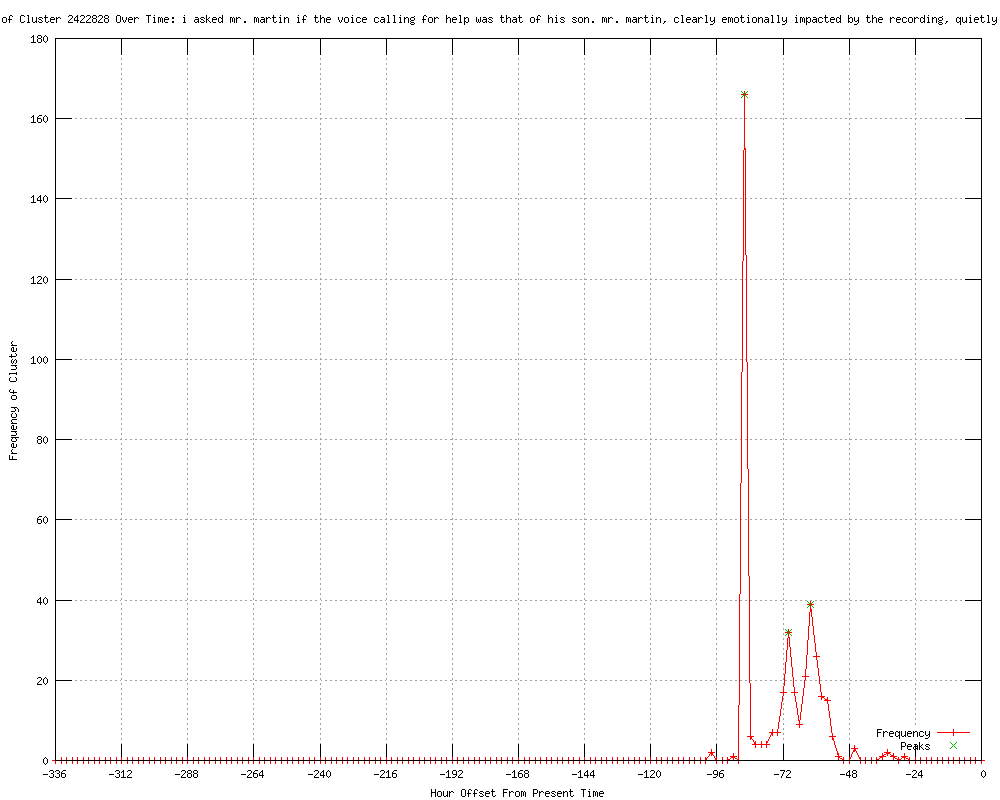 | 13 | i asked mr. martin if the voice calling for help was that of his son. mr. martin, clearly emotionally impacted by the recording, quietly responded 'no.' Urls http://usatoday.com/news/nation/story/2012-05-17/zimmerman-trayvon-shooting-report/55046944/1?csp=34news http://bucyrustelegraphforum.com/usatoday/article/55046944?odyssey=mod|newswell|text|FRONTPAGE|p http://bucyrustelegraphforum.com/usatoday/article/55046944?odyssey=mod|newswell|img|FRONTPAGE|p http://slumz.boxden.com/f5/may-17-police-report-says-trayvon-martin-shooting-could-have-been-avoided-1755086/ http://zanesvilletimesrecorder.com/usatoday/article/55046944?odyssey=mod|newswell|text|Frontpage|s http://portclintonnewsherald.com/usatoday/article/55046944?odyssey=mod|newswell|text|FRONTPAGE|s http://bucyrustelegraphforum.com/usatoday/article/55046944?odyssey=mod|newswell|text|FRONTPAGE|s http://wltx.com/news/national/article/187721/142/Police-Martin-Shooting-Avoidable- http://greenvilleonline.com/article/20120518/NEWS/305180038/Police-Trayvon-Martin-shooting-avoidable-?odyssey=tab|topnews|text|FRONTPAGE http://GreenvilleOnline.com/article/20120518/NEWS/305180038/Police-Trayvon-Martin-shooting-avoidable-?odyssey=tab|mostpopular|text|FRONTPAGE http://wlbz2.com/news/national/article/201208/45/Police-Trayvon-Martin-shooting-avoidable http://mysanfordherald.com/view/full_story/18655430/article-Evidence-in-Zimmerman-case-released--Documents-do-not-include-Zimmerman%E2%80%99s-account-of-incident?instance=home_news_right http://mysanfordherald.com/pages/full_story/push?article-Evidence+in+Zimmerman+case+released-+Documents+do+not+include+Zimmerman%E2%80%99s+account+of+incident%20&id=18655430&instance=home_news_right#comments_18655430 |
