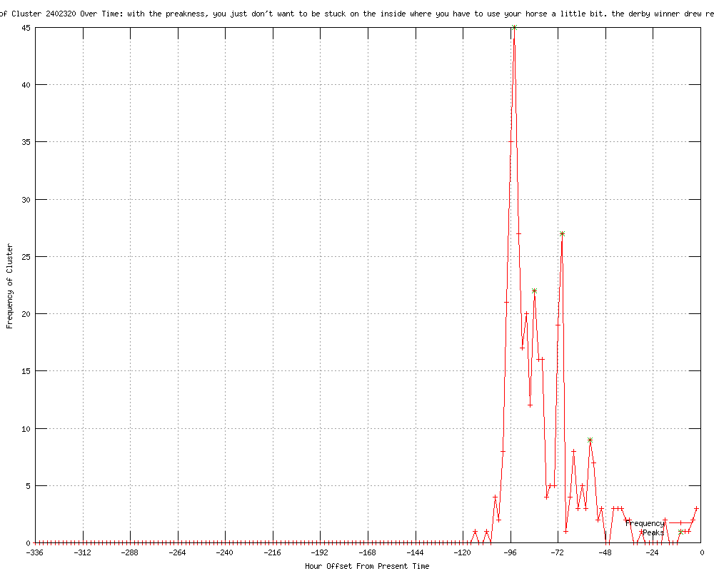 | 49 | with the preakness, you just don't want to be stuck on the inside where you have to use your horse a little bit. the derby winner drew really well, also Urls http://condo.com/Community/UserBlogPost.aspx?ID=57685 http://sportsillustrated.cnn.com/2012/more/05/16/preakness-draw.ap/index.html?xid=si_topstories http://sportsillustrated.cnn.com/2012/more/05/16/preakness-draw.ap/index.html?eref=si_more http://artesianews.com/ap-news/sports-ap-news/bodemeister-8-5-morning-line-favorite-in-preakness/ http://blog.pennlive.com/patriotnewssports/2012/05/bodemeister_8-5_morning_line_f.html http://bangordailynews.com/2012/05/16/sports/bodemeister-8-5-morning-line-favorite-in-preakness/ http://ohio.com/sports/the-preakness-derby-runner-up-bodemeister-is-favorite-in-no-7-post-1.307537 http://statesman.com/sports/derby-runner-up-bodemeister-favorite-in-preakness-2360519.html?cxtype=rss_sports http://app.com/article/20120516/NJSPORTS07/305160111/1002/SPORTS&source=rss http://goerie.com/article/20120517/SPORTS1402/305179920/Bodemeister-picks-up-early-edge-on-I%27ll-Have-Another http://durangoherald.com/article/20120516/SPORTS01/705179995&source=RSS http://.wsls.com/sports/2012/may/16/virginia-born-bodemeister-early-favorite-preakness-ar-1920170/ http://news-sentinel.com/apps/pbcs.dll/article?AID=/20120516/AP01/305169908 http://courier-tribune.com/sections/sports/pro/bodemeister-8-5-morning-line-favorite-preakness.html http://heraldnet.com/article/20120516/SPORTS/120519813 http://.wsls.com/sports/2012/may/16/2/virginia-born-bodemeister-early-favorite-preakness-ar-1920170/ http://wsbradio.com/ap/ap/top-news/bodemeister-8-5-morning-line-favorite-in-preakness/nN7hg/ http://cleveland.com/horseracing/index.ssf/2012/05/derby_runner-up_bodemeister_re.html http://seattletimes.nwsource.com/html/othersports/2018224835_horse17.html?syndication=rss http://aikenstandard.com/story/s0348-BC-RAC-Preakness-1stLd-Writethru-05-16-0928--4005582 http://jsonline.com/sports/etc/bodemeister-ready-for-another-chance-qs5ep0t-151823725.html http://themonitor.com/sports/morning-60938-preakness-baltimore.html http://sfgate.com/cgi-bin/article.cgi?f=/c/a/2012/05/16/SPHQ1OIVSA.DTL&feed=rss.sports http://tcpalm.com/news/2012/may/17/bodemeister-8-5-favorite-in-preakness/ http://ktvn.com/story/18469899/derby-winner-is-second-favorite-in-preakness http://artesianews.com/ap-news/sports-ap-news/derby-winner-is-second-favorite-in-preakness/ http://news.yahoo.com/derby-winner-second-favorite-preakness-090918294--spt.html http://abc3340.com/story/18469899/derby-winner-is-second-favorite-in-preakness http://wten.com/story/18469899/derby-winner-is-second-favorite-in-preakness http://utsandiego.com/news/2012/may/17/derby-winner-is-second-favorite-in-preakness/ http://kdwn.com/news/sports-news/Derby_winner_is_second-favorite_in_Preakness http://goerie.com/apps/pbcs.dll/article?AID=/20120517/APS/1205170627 http://cbssports.com/general/story/19071713/derby-winner-ill-have-another-52-second-favorite-for-preakness/rss http://news-sentinel.com/apps/pbcs.dll/article?AID=/20120517/SPORTS/120519644 http://wralsportsfan.com/rs/story/11110920/ http://fox41.com/story/18469899/derby-winner-is-second-favorite-in-preakness http://cbsnews.com/8301-400_162-57436230/preakness-derby-winner-ill-have-another-is-second-favorite-behind-bodemeister/ http://newschannel10.com/story/18469899/derby-winner-is-second-favorite-in-preakness http://sportmax.se/2012/05/17/2012-preakness-odds/ http://freep.com/article/20120517/SPORTS18/205170732/1048/sports http://the-review.com/ap%20sports/2012/05/17/bodemeister-favorite-in-preakness http://thenewstribune.com/2012/05/17/2147852/bodemeister-installed-as-preakness.html?storylink=rss http://spokesman.com/stories/2012/may/17/bodemeister-installed-as-preakness-favorite/ http://delmarvanow.com/article/20120517/SPORTS/205170407/The-Preakness-Bodemeister-8-5-morning-favorite?odyssey=mod|newswell|text|frontpage|s http://brownsvilleherald.com/sports/horse-140325-line-baltimore.html http://daily-jeff.com/ap%20sports/2012/05/17/bodemeister-is-favored-in-preakness http://hawaiitribune-herald.com/sections/sports/procollege/derby-runner-favored-again-preakness.html http://bucyrustelegraphforum.com/usatoday/article/39269503?odyssey=mod|newswell|text|Frontpage|s http://sfgate.com/cgi-bin/article.cgi?f=/c/a/2012/05/17/SPHQ1OIVSA.DTL&feed=rss.sports |