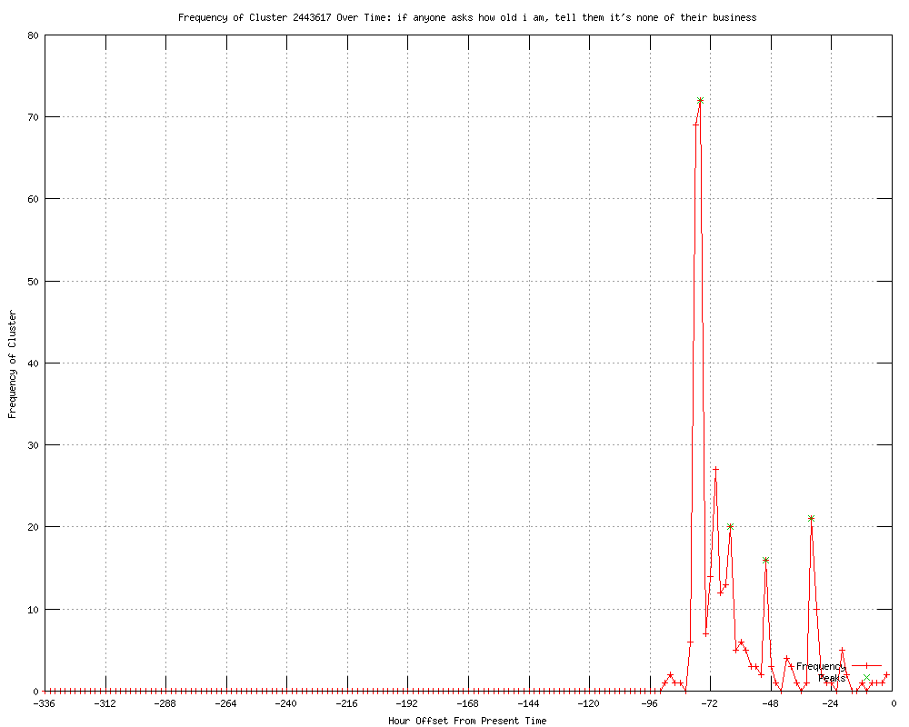| 325 | if anyone asks how old i am, tell them it's none of their business Urls http://wrcbtv.com/story/18556695/apnewsbreak-loretta-lynn-married-at-15-not-13 http://cbc.ca/news/arts/story/2012/05/18/loretta-lynn-age-biography.html?cmp=rss http://cbc.ca/news/arts/story/2012/05/18/loretta-lynn-age-biography.html http://waff.com/story/18556580/apnewsbreak-loretta-lynn-married-at-15-not-13 http://fox17.com/newsroom/top_stories/videos/wztv_vid_12235.shtml http://fox17.com/newsroom/top_stories/videos/wztv_vid_12235.shtml?wap=0 http://wral.com/entertainment/story/11117987/ http://accessatlanta.com/atlanta-music/apnewsbreak-loretta-lynn-married-1440321.html http://wduv.com/ap/ap/energy/apnewsbreak-loretta-lynn-married-at-15-not-13/nN8xw/ http://fox41.com/story/18556574/apnewsbreak-loretta-lynn-married-at-15-not-13 http://miamiherald.com/2012/05/18/2805961/apnewsbreak-loretta-lynn-married.html http://wten.com/story/18556547/apnewsbreak-loretta-lynn-married-at-15-not-13 http://music.yahoo.com/news/apnewsbreak-loretta-lynn-married-15-not-13-181403949.html http://idahostatesman.com/2012/05/18/2122327/apnewsbreak-loretta-lynn-married.html#storylink=rss http://wlbt.com/story/18556547/apnewsbreak-loretta-lynn-married-at-15-not-13 http://fox19.com/story/18556574/apnewsbreak-loretta-lynn-married-at-15-not-13 http://news.yahoo.com/apnewsbreak-loretta-lynn-married-15-not-13-181403949.html http://seattletimes.nwsource.com/html/entertainment/2018236761_apusmusiclorettalynnage1stldwritethru.html?syndication=rss http://kfvs.com/story/18556574/apnewsbreak-loretta-lynn-married-at-15-not-13 http://wmctv.com/story/18556580/apnewsbreak-loretta-lynn-married-at-15-not-13 http://wkrn.com/story/18556580/apnewsbreak-loretta-lynn-married-at-15-not-13 http://fox41.com/story/18556631/ap-country-music-singer-loretta-lynn http://dfw.com/2012/05/18/624152/apnewsbreak-loretta-lynn-married.html http://bellinghamherald.com/2012/05/18/2527284/apnewsbreak-loretta-lynn-married.html http://wrcbtv.com/story/18556547/apnewsbreak-loretta-lynn-married-at-15-not-13 http://wrcbtv.com/story/18556580/apnewsbreak-loretta-lynn-married-at-15-not-13 http://kansascity.com/2012/05/18/3617035/apnewsbreak-loretta-lynn-married.html#storylink=rss http://wbal.com/article/ap?articleurl=http%3a%2f%2fhosted.ap.org%2fdynamic%2fstories%2fU%2fUS_MUSIC_LORETTA_LYNN_AGE_1ST_LD_WRITETHRU%3fSITE%3dWBAL%26SECTION%3dHOME%26TEMPLATE%3dDEFAULT http://mail.com/news/us/1297666-apnewsbreak-loretta-lynn-married-15-13.html http://newsvine.com/_news/2012/05/18/11758029-apnewsbreak-loretta-lynn-married-at-15-not-13 http://mysanantonio.com/news/article/APNewsBreak-Loretta-Lynn-married-at-15-not-13-3569070.php http://power953.com/ap/ap/energy/apnewsbreak-loretta-lynn-married-at-15-not-13/nN8xw/ http://entertainment.msn.com/news/article.aspx?news=729712&affid=100055 http://newschannel5.com/story/18556615/documents-show-loretta-lynn-married-at-15-not-13 http://theolympian.com/2012/05/18/2110195/apnewsbreak-loretta-lynn-married.html http://wltx.com/news/watercooler/article/187779/363/Lorretta-Lynn-Older-Than-She-Claims- http://.wsls.com/news/2012/may/18/apnewsbreak-loretta-lynn-married-at-15-not-13-ar-1925157/ http://lex18.com/news/loretta-lynn-married-at-15-not-13/ http://katu.com/news/entertainment/152063705.html http://longislandpress.com/2012/05/18/apnewsbreak-loretta-lynn-married-at-15-not-13/ http://sify.com/news/APNewsBreak--Loretta-Lynn-married-at-15--not-13-news-others-mftaa3fhcda.html http://timesrecordnews.com/news/2012/may/18/apnewsbreak-loretta-lynn-married-15-not-13/ http://wdrb.com/story/18556574/apnewsbreak-loretta-lynn-married-at-15-not-13 http://seattlepi.com/news/article/APNewsBreak-Loretta-Lynn-married-at-15-not-13-3569070.php http://wkyt.com/home/headlines/Loretta_Lynn_married_at_15_not_13_152064155.html http://ktts.com/news/152066335.html http://wsaz.com/home/headlines/_Loretta_Lynn_Married_at_15_Not_13_152064195.html http://herald-dispatch.com/news/briefs/x739985414/Loretta-Lynn-married-at-15-not-13 http://artesianews.com/ap-news/entertainment-ap-news/apnewsbreak-loretta-lynn-married-at-15-not-13/ http://kwtx.com/news/entertainment/headlines/Loretta_Lynn_Married_At_15_Not_13_152066025.html http://wdbo.com/news/news/local/report-loretta-lynn-married-15-not-13/nN8zC/ http://coloradosprings.com/articles/lynn-15042-older-believe.html http://cbsnews.com/8301-501368_162-57437303/apnewsbreak-loretta-lynn-married-at-15-not-13/ http://wuky.org/post/coal-miners-daughter-loretta-lynn-three-years-older-she-claims http://shreveporttimes.com/article/20120518/ENT/120518016/Loretta-Lynn-married-15-not-13-?odyssey=mod|newswell|img|FRONTPAGE|p http://shreveporttimes.com/article/20120518/ENT/120518016/Loretta-Lynn-married-15-not-13-?odyssey=mod|newswell|text|FRONTPAGE|p http://inforum.com/event/article/id/361262/ http://kentucky.com/2012/05/18/2192637/apnewsbreak-loretta-lynn-married.html#storylink=rss http://inforum.com/event/article/id/361262/group/homepage/ http://philly.com/r?19=961&43=168041&44=152062075&32=3796&7=195357&40=http%3A%2F%2Fwww.philly.com%2Fphilly%2Fentertainment%2F20120518_ap_apnewsbreaklorettalynnmarriedat15not13.html http://local10.com/entertainment/Loretta-Lynn-married-at-15-not-13/-/1716846/13483198/-/gd7tygz/-/index.html http://macombdaily.com/article/20120518/ENTERTAINMENT03/120519486/how-old-is-loretta-lynn- http://movies.yahoo.com/news/apnewsbreak-loretta-lynn-married-15-not-13-181403949.html http://kolotv.com/entertainmentnews/headlines/Loretta_Lynn_Married_at_15_Not_13_152069815.html http://nola.com/music/index.ssf/2012/05/loretta_lynn_is_three_years_ol.html http://news-sentinel.com/apps/pbcs.dll/article?AID=/20120518/ENT/120519545 http://news-sentinel.com/apps/pbcs.dll/article?AID=/20120518/ENT/120519545/1009 http://wonderwall.msn.com/music/apnewsbreak-loretta-lynn-married-at-15-not-13-1682791.story http://bigpondnews.com/articles/Entertainment/2012/05/19/Loretta_Lynn_married_at_15_not_13_751743.html http://waff.com/story/18556547/apnewsbreak