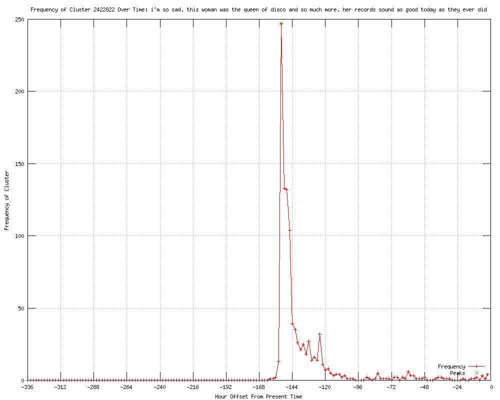 | 23 | her records sound as good today as they ever did Urls http://thirdage.com/movies-music-the-arts/donna-summer-dead-at-63 http://frugal-cafe.com/public_html/frugal-blog/frugal-cafe-blogzone/2012/05/17/rest-in-peace-beautiful-donna-majestic-queen-of-disco-donna-summer-has-died-at-63-loses-her-valiant-battle-against-cancer-video/ http://nigerianbestforum.com/generaltopics/?p=122436 http://updatednews.ca/2012/05/17/donna-summer-queen-of-disco-dies-at-63/ http://bbc.co.uk/news/entertainment-arts-18112387#sa-ns_mchannel=rss&ns_source=PublicRSS20-sa http://news.bbc.co.uk/news/entertainment-arts-18112387 http://bbc.co.uk/news/entertainment-arts-18112387 http://soundspike.com/news/article/4394-donna_summer_news_donna_summer_queen_of.html http://seeholly.blogspot.com/2012/05/mr-eipley-has-bought-four-black-pigs.html http://mirror.co.uk/news/world-news/donna-summer-tributes-the-heartbeat-837989 http://ebz.by/info/UK/331165012 http://eonline.com/news/donna_summers_death_elton_john_neil/317025?cmpid=rss-000000-rssfeed-365-topstories&utm_source=eonline&utm_medium=rssfeeds&utm_campaign=rss_topstories http://feeds.eonline.com/%7Er/eonline/topstories/%7E3/baBI5S03Fn4/317025 http://bbc.co.uk/news/entertainment-arts-18109654 http://gbmnews.com/wp/?p=2332 http://nigerianbestforum.com/index.php?topic=165762.msg456280#msg456280 http://nigerianbestforum.com/index.php?topic=165762.msg456281#msg456281 http://denverpost.com/obituaries/ci_20650529/disco-sensation-donna-summers-songs-defined-era?source=rss http://philly.com/r?19=961&43=166721&44=151983095&32=3796&7=195342&40=http%3A%2F%2Fwww.philly.com%2Finquirer%2Ffront_page%2F20120518_DONNA_SUMMER_1948-2012.html http://philly.com/r?19=961&43=168246&44=151983095&32=3796&7=195442&40=http%3A%2F%2Fwww.philly.com%2Fphilly%2Fobituaries%2F20120518_DONNA_SUMMER_1948-2012.html http://hifimagazine.net/blog/2012/05/18/members-of-rock-and-roll-hall-of-fame-responds-to-donna-summers-death-and-possible-induction/ http://hifimagazine.net/blog/2012/05/18/rr-hall-of-fame-donna-summer-possible-induction/ http://scotsman.com/lifestyle/features/top-ten-celebrity-stories-of-the-week-1-2304243 |