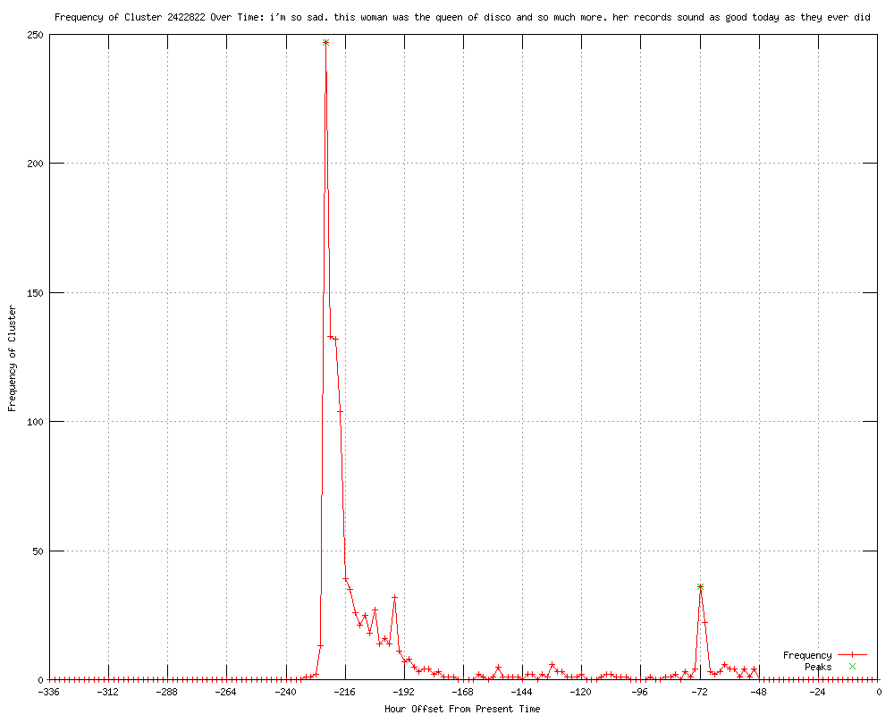 | 23 | her records sound as good today as they ever did Urls http://thirdage.com/movies-music-the-arts/donna-summer-dead-at-63 http://frugal-cafe.com/public_html/frugal-blog/frugal-cafe-blogzone/2012/05/17/rest-in-peace-beautiful-donna-majestic-queen-of-disco-donna-summer-has-died-at-63-loses-her-valiant-battle-against-cancer-video/ http://nigerianbestforum.com/generaltopics/?p=122436 http://updatednews.ca/2012/05/17/donna-summer-queen-of-disco-dies-at-63/ http://bbc.co.uk/news/entertainment-arts-18112387#sa-ns_mchannel=rss&ns_source=PublicRSS20-sa http://news.bbc.co.uk/news/entertainment-arts-18112387 http://bbc.co.uk/news/entertainment-arts-18112387 http://soundspike.com/news/article/4394-donna_summer_news_donna_summer_queen_of.html http://seeholly.blogspot.com/2012/05/mr-eipley-has-bought-four-black-pigs.html http://mirror.co.uk/news/world-news/donna-summer-tributes-the-heartbeat-837989 http://ebz.by/info/UK/331165012 http://eonline.com/news/donna_summers_death_elton_john_neil/317025?cmpid=rss-000000-rssfeed-365-topstories&utm_source=eonline&utm_medium=rssfeeds&utm_campaign=rss_topstories http://feeds.eonline.com/%7Er/eonline/topstories/%7E3/baBI5S03Fn4/317025 http://bbc.co.uk/news/entertainment-arts-18109654 http://gbmnews.com/wp/?p=2332 http://nigerianbestforum.com/index.php?topic=165762.msg456280#msg456280 http://nigerianbestforum.com/index.php?topic=165762.msg456281#msg456281 http://denverpost.com/obituaries/ci_20650529/disco-sensation-donna-summers-songs-defined-era?source=rss http://philly.com/r?19=961&43=166721&44=151983095&32=3796&7=195342&40=http%3A%2F%2Fwww.philly.com%2Finquirer%2Ffront_page%2F20120518_DONNA_SUMMER_1948-2012.html http://philly.com/r?19=961&43=168246&44=151983095&32=3796&7=195442&40=http%3A%2F%2Fwww.philly.com%2Fphilly%2Fobituaries%2F20120518_DONNA_SUMMER_1948-2012.html http://hifimagazine.net/blog/2012/05/18/members-of-rock-and-roll-hall-of-fame-responds-to-donna-summers-death-and-possible-induction/ http://hifimagazine.net/blog/2012/05/18/rr-hall-of-fame-donna-summer-possible-induction/ http://scotsman.com/lifestyle/features/top-ten-celebrity-stories-of-the-week-1-2304243 |