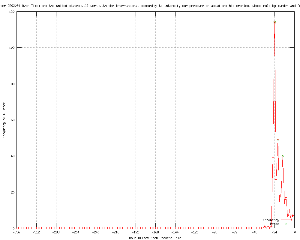 | 164 | the united states will work with the international community to intensify our pressure on assad and his cronies, whose rule by murder and fear must come to an end Urls http://lezgetreal.com/2012/05/u-n-monitors-useless-in-syria/ http://globalnews.ca/Canada/haunting+images+of+dozens+of+dead+children+in+syria+among+90+killed+in+new+regime+attack/6442648963/story.html http://wsfa.com/story/18632553/dozens-of-children-killed-in-new-syria-attack http://wtol.com/story/18632553/dozens-of-children-killed-in-new-syria-attack http://mysanantonio.com/news/article/Dozens-of-children-killed-in-new-Syria-attack-3576940.php http://newstimes.com/news/article/Dozens-of-children-killed-in-new-Syria-attack-3576940.php http://wboc.com/story/18632553/dozens-of-children-killed-in-new-syria-attack http://wsbradio.com/ap/ap/social-issues/dozens-of-children-killed-in-new-syria-attack/nPFdt/ http://kwes.com/story/18632553/dozens-of-children-killed-in-new-syria-attack http://guardian.co.uk/world/feedarticle/10260377 http://artesianews.com/ap-news/international-ap-news/dozens-of-children-killed-in-new-syria-attack/ http://wten.com/story/18632553/dozens-of-children-killed-in-new-syria-attack http://wkrn.com/story/18632553/dozens-of-children-killed-in-new-syria-attack http://ajc.com/news/nation-world/dozens-of-children-killed-1447442.html?cxtype=rss_news_82109 http://cbsnews.com/8301-501713_162-57442185/dozens-of-children-killed-in-new-syria-attack/ http://abc40.com/story/18632553/dozens-of-children-killed-in-new-syria-attack http://newstalkradiowhio.com/news/ap/international/dozens-of-children-killed-in-new-syria-attack/nPFdt/ http://wandtv.com/story/18632553/dozens-of-children-killed-in-new-syria-attack http://klfy.com/story/18632553/dozens-of-children-killed-in-new-syria-attack http://kswo.com/story/18632553/dozens-of-children-killed-in-new-syria-attack http://kfvs.com/story/18632553/dozens-of-children-killed-in-new-syria-attack http://seattlepi.com/news/article/Dozens-of-children-killed-in-new-Syria-attack-3576940.php http://online.wsj.com/article/SB10001424052702304707604577428140437913620.html?mod=europe_home http://feeds.foxnews.com/~r/foxnews/world/~3/4wVDHLqrZzY/ http://online.wsj.com/article/SB10001424052702304707604577428140437913620.html?mod=asia_home http://ckom.com/content/dozens-children-killed-new-syria-attack-0 http://foxnews.com/world/2012/05/26/dozens-children-killed-in-new-syria-attack/ http://svherald.com/associatedpress/266383 http://newstalkradiowhio.com/ap/ap/social-issues/dozens-of-children-killed-in-new-syria-attack/nPFdt/ http://newstalk650.com/content/dozens-children-killed-new-syria-attack-0 http://news.yahoo.com/haunting-images-dozens-dead-children-syria-among-90-002012082.html http://abclocal.go.com/wabc/story?section=news/national_world&id=8678039&rss=rss-wabc-article-8678039 http://wvgazette.com/rssFeeds/201205260091 http://newsinfo.inquirer.net/201393/dozens-of-children-killed-in-new-syria-attack http://twincities.com/national/ci_20720115/dozens-children-among-90-killed-syria?source=rss http://thetelegraph.com/articles/regime-70744-syrian-syria.html http://cbs8.com/story/18632987/dozens-of-children-killed-in-new-syria-attack http://newsday.com/news/world/dozens-of-children-killed-in-new-syria-attack-1.3742558 http://guardian.co.uk/world/feedarticle/10260464 http://the-review.com/latest%20headlines/2012/05/26/dozens-of-children-killed-in-new-syria-attack http://foxnews.com/world/2012/05/26/dozens-children-killed-in-new-syria-attack/#ixzz1w2cM5sio http://kwqc.com/story/18632553/dozens-of-children-killed-in-new-syria-attack http://ktvn.com/story/18632553/dozens-of-children-killed-in-new-syria-attack http://wmbfnews.com/story/18632553/dozens-of-children-killed-in-new-syria-attack http://kswt.com/story/18632553/dozens-of-children-killed-in-new-syria-attack http://kwwl.com/story/18632553/dozens-of-children-killed-in-new-syria-attack http://wistv.com/story/18632553/dozens-of-children-killed-in-new-syria-attack http://wlox.com/story/18632553/dozens-of-children-killed-in-new-syria-attack http://khnl.com/story/18632553/dozens-of-children-killed-in-new-syria-attack http://wgem.com/story/18632553/dozens-of-children-killed-in-new-syria-attack http://wthr.com/story/18632553/dozens-of-children-killed-in-new-syria-attack http://wrex.com/story/18632553/dozens-of-children-killed-in-new-syria-attack http://expressbuzz.com/world/dozens-of-children-killed-in-new-syria-attack/395816.html http://wdam.com/story/18632553/dozens-of-children-killed-in-new-syria-attack http://news9.com/story/18632553/dozens-of-children-killed-in-new-syria-attack http://guardian.co.uk/world/feedarticle/10260541 http://kxxv.com/story/18632553/dozens-of-children-killed-in-new-syria-attack http://ksla.com/story/18632553/dozens-of-children-killed-in-new-syria-attack http://kmph.com/story/18632553/dozens-of-children-killed-in-new-syria-attack http://wxvt.com/Global/story.asp?S=18632553 http://kusi.com/story/18632553/dozens-of-children-killed-in-new-syria-attack http://nbc12.com/story/18632553/dozens-of-children-killed-in-new-syria-attack http://wlbt.com/story/18632553/dozens-of-children-killed-in-new-syria-attack http://wect.com/story/18632553/dozens-of-children-killed-in-new-syria-attack http://live5news.com/story/18632553/dozens-of-children-killed-in-new-syria-attack http://expressbuzz.com/world/Dozens-of-children-killed-in-new-Syria-attack/395816.html http://newson6.com/story/18632553/dozens-of-children-killed-in-new-syria-attack http://ktiv.com/story/18632553/dozens-of-children-killed-in-new-syria-attack http://knoe.com/story/18632553/dozens-of-children-killed-in-new-syria-attack http://wbay.com/story/18632553/dozens-of-children-killed-in-new-syria-attack http://thisislondon.co.uk/panewsfeeds/clinton-end-assad-rule-of-murder-7791553.html http://herald.ie/breaking-news/world-news/clinton-end-assad-rule-of-murder-3119590.html http://news.uk.msn.com/world/articles.aspx?cp-documentid=250096195 http://da.feedsportal.com/c/845/