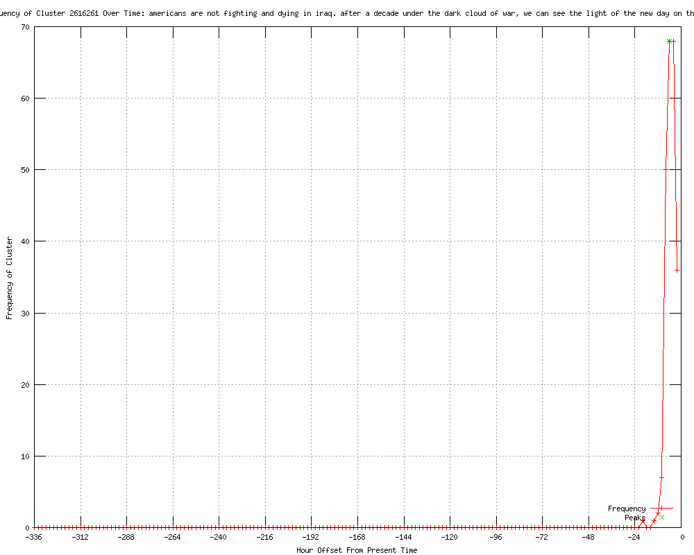 | 24 | after a decade under a dark cloud of war we can see the light of a new day on the horizon Urls http://ohio.com/news/nation/obama-highlights-vietnam-era-during-memorial-day-commemoration-1.310167 http://news.theage.com.au/breaking-news-world/obama-hails-end-of-war-on-memorial-day-20120529-1zfss.html http://news.smh.com.au/breaking-news-world/obama-hails-end-of-war-on-memorial-day-20120529-1zfss.html http://au.news.yahoo.com/world/a/-/world/13802840/obama-hails-end-of-war-on-memorial-day/ http://au.news.yahoo.com/a/-/world/13802840/obama-hails-end-of-war-on-memorial-day/ http://sbs.com.au/news/article/1654373/Obama-hails-end-of-war-on-Memorial-Day http://latimes.com/news/politics/la-pn-obama-highlights-end-of-iraq-war-during-memorial-day-commemoration-20120528,0,6755503.story?track=rss http://ky3.com/la-pn-obama-highlights-end-of-iraq-war-during-memorial-day-commemoration-20120528,0,3592446.story http://wgnradio.com/news/la-pn-obama-highlights-end-of-iraq-war-during-memorial-day-commemoration-20120528,0,5399299.story http://wdbj7.com/la-pn-obama-highlights-end-of-iraq-war-during-memorial-day-commemoration-20120528,0,3917742.story http://ktuu.com/news/la-pn-obama-highlights-end-of-iraq-war-during-memorial-day-commemoration-20120528,0,2560766.story http://latimes.com/news/la-pn-obama-highlights-end-of-iraq-war-during-memorial-day-commemoration-20120528,0,7328701.story?track=rss http://chicagotribune.com/news/nationworld/la-pn-obama-highlights-end-of-iraq-war-during-memorial-day-commemoration-20120528,0,4396979.story?track=rss http://q13fox.com/news/la-pn-obama-highlights-end-of-iraq-war-during-memorial-day-commemoration-20120528,0,2058335.story?track=rss http://chicagotribune.com/news/la-pn-obama-highlights-end-of-iraq-war-during-memorial-day-commemoration-20120528,0,1128020.story?track=rss http://latimes.com/news/politics/la-pn-obama-highlights-end-of-iraq-war-during-memorial-day-commemoration-20120528,0,6755503.story http://chicagotribune.com/news/chi-120528obama-memorial-day,0,5624672.story?track=rss http://wgnradio.com/news/nationworld/la-pn-obama-highlights-end-of-iraq-war-during-memorial-day-commemoration-20120528,0,4030127.story http://wsbt.com/news/la-pn-obama-highlights-end-of-iraq-war-during-memorial-day-commemoration-20120528,0,7611525.story http://abc26.com/news/nationworld/la-pn-obama-highlights-end-of-iraq-war-during-memorial-day-commemoration-20120528,0,7479775.story?track=rss http://chicagotribune.feedsportal.com/c/34253/f/622809/s/1fc8b8ea/l/0L0Schicagotribune0N0Cnews0Cchi0E120A528obama0Ememorial0Eday0H0A0H56246720Bstory0Dtrack0Frss/story01.htm http://latimes.com.feedsportal.com/c/34336/f/625244/s/1fc86bd4/l/0L0Slatimes0N0Cnews0Cla0Epn0Eobama0Ehighlights0Eend0Eof0Eiraq0Ewar0Eduring0Ememorial0Eday0Ecommemoration0E20A120A5280H0A0H732870A10Bstory0Dtrack0Frss/story01.htm http://ChicagoTribune.feedsportal.com/c/34253/f/622809/s/1fc8b8ea/l/0L0Schicagotribune0N0Cnews0Cchi0E120A528obama0Ememorial0Eday0H0A0H56246720Bstory0Dtrack0Frss/story01.htm http://stripes.com/news/memorial-day-weekend-2012-in-washington-d-c-1.178803?localLinksEnabled=false |