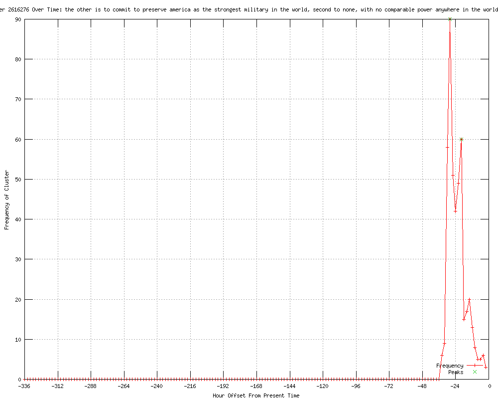 | 78 | the other is to commit to preserve america as the strongest military in the world, second to none, with no comparable power anywhere in the world Urls http://firstread.msnbc.msn.com/_news/2012/05/28/11923526-romney-warns-of-perils-of-shrinking-military-at-memorial-day-event#.T8QTYvYmB28.twitter http://katu.com/politics/national/155199285.html http://utsandiego.com/news/2012/may/28/romney-american-military-must-remain-strong/ http://lansingstatejournal.com/viewart/20120528/ELECTIONS01/305280040/Obama-says-Vietnam-veterans-too-often-denigrated-?odyssey=tab|topnews|text|FRONTPAGE http://sfgate.com/cgi-bin/article.cgi?f=/c/a/2012/05/28/MNC61OOM9F.DTL&feed=rss.news_nation http://wbay.com/story/18639607/romney-promises-worlds-strongest-military http://bostonherald.com/news/us_politics/view.bg?articleid=1061134865&srvc=rss http://newstalkradiowhio.com/ap/ap/california/romney-promises-worlds-strongest-military/nPGC2/ http://chron.com/news/article/Romney-promises-world-s-strongest-military-3590677.php http://goerie.com/apps/pbcs.dll/article?AID=/20120528/APN/1205280735 http://sfgate.com/cgi-bin/article.cgi?f=/n/a/2012/05/28/national/a120758D90.DTL&feed=rss.business http://democraticunderground.com/1014130150 http://statesman.com/news/nation/romney-promises-worlds-strongest-military-2379411.html http://feeds.sfgate.com/click.phdo?i=3f3511c317c88edddef8c9300bc603d9 http://news.feedzilla.com/en_us/stories/top-news/business/225265256?client_source=feed&format=rss http://wlsam.com/Article.asp?id=2464524 http://wlsam.com/Article.asp?id=2464524&spid= http://guardian.co.uk/world/feedarticle/10262634 http://svherald.com/associatedpress/266617 http://boston.com/news/politics/articles/2012/05/28/romney_promises_worlds_strongest_military/?rss_id=Top+Stories http://.tbo.com/news/breaking-news/2012/may/28/romney-promises-worlds-strongest-military-ar-409007/ http://ksbw.com/news/central-california/san-francisco-bay-area/Romney-promises-world-s-strongest-military/-/5739064/14245796/-/403opez/-/index.html http://sfgate.com/cgi-bin/article.cgi?f=/n/a/2012/05/28/national/a120758D90.DTL&feed=rss.news_nation http://utsandiego.com/news/2012/may/28/romney-wont-repudiate-trump-on-birther-issue/ http://koinlocal6.com/content/news/political/election/story/Romney-promises-worlds-strongest-military/p6LdMInhzEOQnIqtEKY4Uw.cspx http://utsandiego.com/news/2012/may/28/texas-primary-will-be-big-day-for-romney/ http://mail.com/news/us/1320552-romney-wont-repudiate-trump-birther-issue.html http://utsandiego.com/news/2012/may/28/romney-promises-to-maintain-us-military-power/ http://news.yahoo.com/romney-promises-maintain-us-military-power-014129702.html http://wsbradio.com/ap/ap/top-news/romney-promises-worlds-strongest-military/nPGC2/ http://guardian.co.uk/world/feedarticle/10262717 http://statesman.com/news/nation/romney-promises-to-maintain-us-military-power-2379411.html http://mail.com/news/us/1320552-romney-promises-to-maintain-us-military-power.html http://kcby.com/news/national/Romney-promises-to-maintain-US-military-power-155199285.html http://chron.com/news/article/Romney-promises-to-maintain-US-military-power-3590677.php http://komonews.com/news/national/Romney-promises-to-maintain-US-military-power-155199285.html http://vosizneias.com/106956/2012/05/28/san-diego-romney-promises-to-maintain-us-military-power/ http://katu.com/news/national/155199285.html http://sify.com/news/Romney-promises-to-maintain-US-military-power-news-others-mf3aJzhjjdh.html http://goerie.com/article/20120529/NEWS07/305299971/Romney-promises-world%27s-strongest-military http://mysanantonio.com/news/article/Romney-promises-to-maintain-US-military-power-3590677.php http://abcnews.go.com/blogs/politics/2012/05/in-memorial-day-tribute-mitt-romney-warns-of-threats-around-the-globe/ http://news.yahoo.com/memorial-day-tribute-mitt-romney-warns-threats-around-194843398--abc-news-politics.html http://feeds.abcnews.com/click.phdo?i=53819857a0485aa0a046652100fb177a http://ibtimes.com/articles/346127/20120528/mitt-romney-memorial-day-military-obama.htm http://delawarelibertarian.blogspot.com/2012/05/mitt-romney-pre-convention-sell-out-of.html http://newsok.com/romney-wont-repudiate-trump-on-birther-issue/article/feed/387113?custom_click=rss http://timesleader.com/stories/Romney-contrasts-self-with-Obama-in-Calif-speech,156591 http://recordpub.com/news/article/5192483 http://greatfallstribune.com/article/20120529/NEWS01/205290303/Romney-promises-world-s-strongest-military?odyssey=tab|topnews|text|Frontpage http://libertarianrepublican.net/2012/05/romneys-memorial-day-speech-signals.html http://fontcraft.com/broadside/?p=664273 http://politicalforum.com/current-events/249907-romney-promises-world-s-strongest-military-new-post.html http://nzherald.co.nz/world/news/article.cfm?c_id=2&objectid=10809344&ref=rss http://breakingnews.ie/world/romney-set-to-win-republican-race-553312.html http://taiwannews.com.tw/etn/news_content.php?id=1932529 http://sfgate.com/cgi-bin/article.cgi?f=/c/a/2012/05/29/MNC61OOM9F.DTL&feed=rss.news_nation http://nz.answers.yahoo.com/question/index?qid=20120529035406AAWAI0E http://answerhow.org/president-obama-honered-the-war-dead-at-arlington-cemetery-is-the-gop-angry-about-this http://ctv.ca/CTVNews/World/20120529/mitt-romney-texas-primary-120529/ http://globalnews.ca/Canada/romney+ready+to+claim+republican+presidential+nomination/6442650055/story.html http://gulfnews.com/news/world/usa/texas-primary-to-formalise-romney-s-rival-status-1.1029200 http://ctv.ca/CTVNews/QPeriod/20120529/mitt-romney-texas-primary-120529/ http://kpbs.org/news/2012/may/28/romney-honors-veterans-san-diego/ http://motherjones.com/kevin-drum/2012/05/romney-military http://carloz.newsvine.com/_news/2012/05/29/11941879-mitt-romney-wants-the-biggest-military-ever-regardless-of-cost http://maddowblog.msnbc.msn.com/_news/2012/05/29/11941914-europe-military-strength-or-door-3 http://wjr.net/rssItem.asp?feedid=112&itemid=29855201 http://ksfo560.com/rssItem.asp?feedid