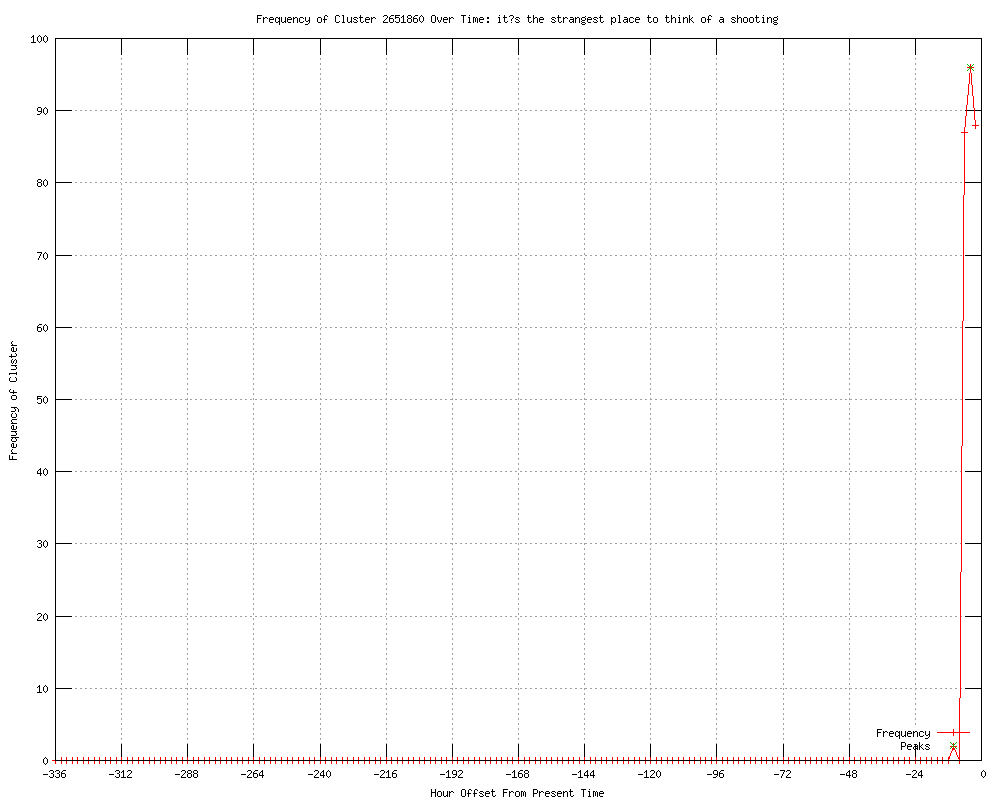 | 39 | its the strangest place to think of a shooting Urls http://abcnews.go.com/US/wireStory/killed-wounded-shooting-seattle-cafe-16459848 http://wlbt.com/story/18657150/2-killed-3-wounded-in-shooting-at-seattle-cafe http://koamtv.com/story/18657150/2-killed-3-wounded-in-shooting-at-seattle-cafe http://kwqc.com/story/18657150/2-killed-3-wounded-in-shooting-at-seattle-cafe http://wbtv.com/story/18657150/2-killed-3-wounded-in-shooting-at-seattle-cafe http://news9.com/story/18657150/2-killed-3-wounded-in-shooting-at-seattle-cafe http://kwwl.com/story/18657150/2-killed-3-wounded-in-shooting-at-seattle-cafe http://seattlepi.com/news/article/2-killed-3-wounded-in-shooting-at-Seattle-cafe-3595964.php http://newstimes.com/news/article/2-killed-3-wounded-in-shooting-at-Seattle-cafe-3595964.php http://katu.com/news/local/155773005.html http://katu.com/news/local/Seattle-shooting-leaves-2-dead-3-injured-155773005.html http://utsandiego.com/news/2012/may/30/2-killed-3-wounded-in-shooting-at-seattle-cafe/ http://syracuse.com/news/index.ssf/2012/05/whats_going_on_2_killed_3_woun.html http://statesman.com/news/nation/2-killed-3-wounded-in-shooting-at-seattle-2382576.html http://seattletimes.nwsource.com/html/localnews/2018316597_apusseattleshooting3rdldwritethru.html?syndication=rss http://bostonherald.com/news/national/west/view.bg?articleid=1061135368&srvc=rss http://guardian.co.uk/world/feedarticle/10265427 http://sacbee.com/2012/05/30/4526043/2-killed-3-wounded-in-shooting.html#mi_rss=Latest%20News http://newsobserver.com/2012/05/30/2099990/2-killed-3-wounded-in-shooting.html#storylink=rss http://timesleader.com/stories/Two-dead-three-wounded-in-Seattle-cafe-shooting,157184 http://newstalkradiowhio.com/ap/ap/us/2-killed-3-wounded-in-shooting-at-seattle-cafe/nPHLW/ http://sfgate.com/cgi-bin/article.cgi?f=/n/a/2012/05/30/national/a120626D37.DTL&feed=rss.news_nation http://themorningsun.com/article/20120530/NEWS04/120539977/seattle-shooting-kills-two-wounds-three-at-cafe http://startribune.com/nation/155773225.html http://abclocal.go.com/wtvd/story?section=news/national_world&id=8682208&rss=rss-wtvd-article-8682208 http://nydailynews.com/news/national/dead-injured-multiple-seattle-shootings-article-1.1086824?localLinksEnabled=false http://nydailynews.com.feedsportal.com/c/34148/f/621861/s/1fdb9ec8/l/0L0Snydailynews0N0Cnews0Cnational0Cdead0Einjured0Emultiple0Eseattle0Eshootings0Earticle0E10B10A868240DlocalLinksEnabled0Ffalse/story01.htm http://gazette.com/articles/seattle-139444-shooting-wounded.html http://kdwn.com/news/national-news/2_killed,_3_wounded_in_shooting_at_Seattle_cafe http://cbsnews.com/8301-201_162-57443753/gunman-at-large-after-deadly-shootings-in-seattle/ http://newsobserver.com/2012/05/30/2099990/2-killed-3-wounded-in-shooting.html http://mysanantonio.com/news/article/2-killed-3-wounded-in-shooting-at-Seattle-cafe-3595964.php http://standard.net/stories/2012/05/30/2-killed-3-wounded-shooting-seattle-cafe http://feeds.cbsnews.com/~r/CBSNewsMain/~3/doPju5VHkAA/ http://inquisitr.com/245142/seattle-shooting-leaves-2-dead-3-wounded/ http://kolotv.com/nationalnews/headlines/2_Killed_3_Wounded_in_Shooting_at_Seattle_Cafe_155791395.html http://wtol.com/story/18657150/2-killed-3-wounded-in-shooting-at-seattle-cafe http://wlsam.com/Article.asp?id=2466070 http://copycateffect.blogspot.com/2012/05/seattle-shooting.html |