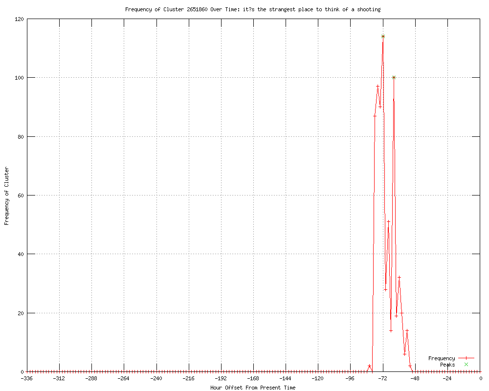 | 39 | its the strangest place to think of a shooting Urls http://abcnews.go.com/US/wireStory/killed-wounded-shooting-seattle-cafe-16459848 http://wlbt.com/story/18657150/2-killed-3-wounded-in-shooting-at-seattle-cafe http://koamtv.com/story/18657150/2-killed-3-wounded-in-shooting-at-seattle-cafe http://kwqc.com/story/18657150/2-killed-3-wounded-in-shooting-at-seattle-cafe http://wbtv.com/story/18657150/2-killed-3-wounded-in-shooting-at-seattle-cafe http://news9.com/story/18657150/2-killed-3-wounded-in-shooting-at-seattle-cafe http://kwwl.com/story/18657150/2-killed-3-wounded-in-shooting-at-seattle-cafe http://seattlepi.com/news/article/2-killed-3-wounded-in-shooting-at-Seattle-cafe-3595964.php http://newstimes.com/news/article/2-killed-3-wounded-in-shooting-at-Seattle-cafe-3595964.php http://katu.com/news/local/155773005.html http://katu.com/news/local/Seattle-shooting-leaves-2-dead-3-injured-155773005.html http://utsandiego.com/news/2012/may/30/2-killed-3-wounded-in-shooting-at-seattle-cafe/ http://syracuse.com/news/index.ssf/2012/05/whats_going_on_2_killed_3_woun.html http://statesman.com/news/nation/2-killed-3-wounded-in-shooting-at-seattle-2382576.html http://seattletimes.nwsource.com/html/localnews/2018316597_apusseattleshooting3rdldwritethru.html?syndication=rss http://bostonherald.com/news/national/west/view.bg?articleid=1061135368&srvc=rss http://guardian.co.uk/world/feedarticle/10265427 http://sacbee.com/2012/05/30/4526043/2-killed-3-wounded-in-shooting.html#mi_rss=Latest%20News http://newsobserver.com/2012/05/30/2099990/2-killed-3-wounded-in-shooting.html#storylink=rss http://timesleader.com/stories/Two-dead-three-wounded-in-Seattle-cafe-shooting,157184 http://newstalkradiowhio.com/ap/ap/us/2-killed-3-wounded-in-shooting-at-seattle-cafe/nPHLW/ http://sfgate.com/cgi-bin/article.cgi?f=/n/a/2012/05/30/national/a120626D37.DTL&feed=rss.news_nation http://themorningsun.com/article/20120530/NEWS04/120539977/seattle-shooting-kills-two-wounds-three-at-cafe http://startribune.com/nation/155773225.html http://abclocal.go.com/wtvd/story?section=news/national_world&id=8682208&rss=rss-wtvd-article-8682208 http://nydailynews.com/news/national/dead-injured-multiple-seattle-shootings-article-1.1086824?localLinksEnabled=false http://nydailynews.com.feedsportal.com/c/34148/f/621861/s/1fdb9ec8/l/0L0Snydailynews0N0Cnews0Cnational0Cdead0Einjured0Emultiple0Eseattle0Eshootings0Earticle0E10B10A868240DlocalLinksEnabled0Ffalse/story01.htm http://gazette.com/articles/seattle-139444-shooting-wounded.html http://kdwn.com/news/national-news/2_killed,_3_wounded_in_shooting_at_Seattle_cafe http://cbsnews.com/8301-201_162-57443753/gunman-at-large-after-deadly-shootings-in-seattle/ http://newsobserver.com/2012/05/30/2099990/2-killed-3-wounded-in-shooting.html http://mysanantonio.com/news/article/2-killed-3-wounded-in-shooting-at-Seattle-cafe-3595964.php http://standard.net/stories/2012/05/30/2-killed-3-wounded-shooting-seattle-cafe http://feeds.cbsnews.com/~r/CBSNewsMain/~3/doPju5VHkAA/ http://inquisitr.com/245142/seattle-shooting-leaves-2-dead-3-wounded/ http://kolotv.com/nationalnews/headlines/2_Killed_3_Wounded_in_Shooting_at_Seattle_Cafe_155791395.html http://wtol.com/story/18657150/2-killed-3-wounded-in-shooting-at-seattle-cafe http://wlsam.com/Article.asp?id=2466070 http://copycateffect.blogspot.com/2012/05/seattle-shooting.html |