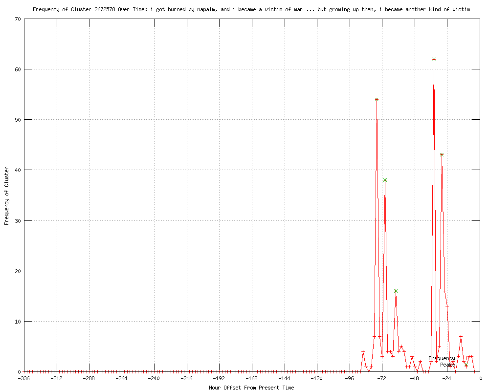 | 76 | i got burned by napalm, and i became a victim of war ? but growing up then, i became another kind of victim Urls http://statesmanjournal.com/article/20120531/UPDATE/120531024/1103 http://longislandpress.com/2012/05/31/ap-napalm-girl-photo-from-vietnam-war-turns-40-2/ http://longislandpress.com/2012/05/31/ap-napalm-girl-photo-from-vietnam-war-turns-40/ http://statesmanjournal.com/viewart/20120531/UPDATE/120531024/-Napalm-girl-photo-from-Vietnam-War-turns-40 http://asiancorrespondent.com/83538/napalm-girl-photo-from-vietnam-war-turns-40/ http://heraldonline.com/2012/06/02/4016227/ap-napalm-girl-photo-from-vietnam.html#storylink=rss http://guardian.co.uk/media/2012/jun/02/girl-vietnam-napalm-photo-peace http://feeds.guardian.co.uk/%7Er/theguardian/media/rss/%7E3/W2FHlcuV0m4/girl-vietnam-napalm-photo-peace http://svherald.com/associatedpress/267578 http://usatoday.com/news/world/story/2012-06-02/napalm-girl-photo-vietnam/55347678/1?csp=34news http://news-press.com/usatoday/article/55347678?odyssey=mod|newswell|text|Home|p http://news-press.com/usatoday/article/55347678?odyssey=mod|newswell|img|Home|p http://dnj.com/usatoday/article/55347678?odyssey=mod|newswell|img|FRONTPAGE|p http://dnj.com/usatoday/article/55347678?odyssey=mod|newswell|text|FRONTPAGE|p http://hattiesburgamerican.com/usatoday/article/55347678?odyssey=mod|newswell|text|FRONTPAGE|p http://hattiesburgamerican.com/usatoday/article/55347678?odyssey=mod|newswell|img|FRONTPAGE|p http://courier-journal.com/usatoday/article/55347678?odyssey=mod|newswell|img|Home|p http://courier-journal.com/usatoday/article/55347678?odyssey=mod|newswell|text|Home|p http://zanesvilletimesrecorder.com/usatoday/article/55347678?odyssey=mod|newswell|img|Frontpage|p http://zanesvilletimesrecorder.com/usatoday/article/55347678?odyssey=mod|newswell|text|Frontpage|p http://stargazette.com/usatoday/article/55347678?odyssey=mod|newswell|text|FRONTPAGE|p http://stargazette.com/usatoday/article/55347678?odyssey=mod|newswell|img|FRONTPAGE|p http://delmarvanow.com/usatoday/article/55347678?odyssey=mod|newswell|text|frontpage|p http://delmarvanow.com/usatoday/article/55347678?odyssey=mod|newswell|img|frontpage|p http://marionstar.com/usatoday/article/55347678?odyssey=mod|newswell|img|Frontpage|p http://marionstar.com/usatoday/article/55347678?odyssey=mod|newswell|text|Frontpage|p http://tallahassee.com/usatoday/article/55347678?odyssey=mod|newswell|img|frontpage|p http://tallahassee.com/usatoday/article/55347678?odyssey=mod|newswell|text|frontpage|p http://coloradoan.com/usatoday/article/55347678?odyssey=mod|newswell|img|FRONTPAGE|p http://coloradoan.com/usatoday/article/55347678?odyssey=mod|newswell|text|FRONTPAGE|p http://bucyrustelegraphforum.com/usatoday/article/55347678?odyssey=mod|newswell|text|Frontpage|p http://bucyrustelegraphforum.com/usatoday/article/55347678?odyssey=mod|newswell|img|Frontpage|p http://lansingstatejournal.com/usatoday/article/55347678?odyssey=mod|newswell|text|FRONTPAGE|p http://lansingstatejournal.com/usatoday/article/55347678?odyssey=mod|newswell|img|FRONTPAGE|p http://mansfieldnewsjournal.com/usatoday/article/55347678?odyssey=mod|newswell|text|Frontpage|p http://mansfieldnewsjournal.com/usatoday/article/55347678?odyssey=mod|newswell|img|Frontpage|p http://lancastereaglegazette.com/usatoday/article/55347678?odyssey=mod|newswell|text|Frontpage|p http://lancastereaglegazette.com/usatoday/article/55347678?odyssey=mod|newswell|img|Frontpage|p http://jconline.com/usatoday/article/55347678?odyssey=mod|newswell|text|FRONTPAGE|p http://jconline.com/usatoday/article/55347678?odyssey=mod|newswell|img|FRONTPAGE|p http://livingstondaily.com/usatoday/article/55347678?odyssey=mod|newswell|text|Frontpage|s http://portclintonnewsherald.com/usatoday/article/55347678?odyssey=mod|newswell|text|FRONTPAGE|p http://portclintonnewsherald.com/usatoday/article/55347678?odyssey=mod|newswell|img|FRONTPAGE|p http://rssfeeds.usatoday.com/~r/usatoday-NewsTopStories/~3/SWcZmXVIK2k/1 http://greatfallstribune.com/usatoday/article/55347678?odyssey=mod|newswell|img|Frontpage|p http://greatfallstribune.com/usatoday/article/55347678?odyssey=mod|newswell|text|Frontpage|p http://news-press.com/usatoday/article/55347678?odyssey=mod|newswell|text|Home|s http://theithacajournal.com/usatoday/article/55347678?odyssey=mod|newswell|text|FRONTPAGE|s http://hattiesburgamerican.com/usatoday/article/55347678?odyssey=mod|newswell|text|FRONTPAGE|s http://courier-journal.com/usatoday/article/55347678?odyssey=mod|newswell|text|Home|s http://zanesvilletimesrecorder.com/usatoday/article/55347678?odyssey=mod|newswell|text|Frontpage|s http://stargazette.com/usatoday/article/55347678?odyssey=mod|newswell|text|FRONTPAGE|s http://delmarvanow.com/usatoday/article/55347678?odyssey=mod|newswell|text|frontpage|s http://marionstar.com/usatoday/article/55347678?odyssey=mod|newswell|text|Frontpage|s http://tallahassee.com/usatoday/article/55347678?odyssey=mod|newswell|text|frontpage|s http://coloradoan.com/usatoday/article/55347678?odyssey=mod|newswell|text|FRONTPAGE|s http://bucyrustelegraphforum.com/usatoday/article/55347678?odyssey=mod|newswell|text|FRONTPAGE|s http://lansingstatejournal.com/usatoday/article/55347678?odyssey=mod|newswell|text|FRONTPAGE|s http://mansfieldnewsjournal.com/usatoday/article/55347678?odyssey=mod|newswell|text|Frontpage|s http://lancastereaglegazette.com/usatoday/article/55347678?odyssey=mod|newswell|text|Frontpage|s http://jconline.com/usatoday/article/55347678?odyssey=mod|newswell|text|FRONTPAGE|s http://portclintonnewsherald.com/usatoday/article/55347678?odyssey=mod|newswell|text|FRONTPAGE|s http://greatfallstribune.com/usatoday/article/55347678?odyssey=mod|newswell|text|Frontpage|s http://dnj.com/usatoday/article/55347678?odyssey=mod|newswell|text|FRONTPAGE|s http://shreveporttimes.com/usatoday/article/55347678?odyssey=mod|newswell|img|FRONTPAGE|p http://shreveporttimes.com/usatoday/article/55347678?odyssey=mod|newswell|text|FRONTPAGE|p http://shreveporttimes.c