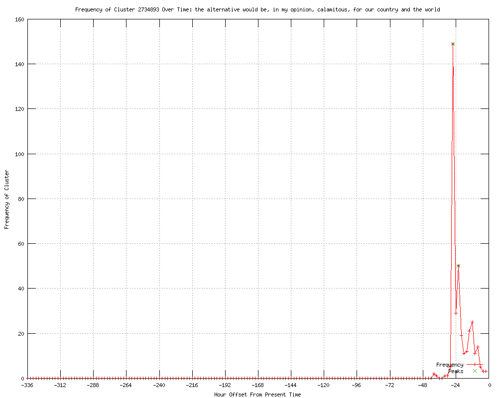| 10 | the alternative would be, in my opinion, calamitous, for our country and the world Urls http://uk.news.yahoo.com/bill-clinton-stumps-obama-slams-calamitous-romney-221857669.html http://sg.news.yahoo.com/bill-clinton-stumps-obama-slams-calamitous-romney-231857181.html http://my.news.yahoo.com/bill-clinton-stumps-obama-slams-calamitous-romney-231857181.html http://au.news.yahoo.com/a/-/world/13869109/bill-clinton-stumps-for-obama-slams-calamitous-romney/ http://rawstory.com/rs/2012/06/04/bill-clinton-stumps-for-obama-slams-calamitous-romney/ http://nwotruth.com/bill-clinton-stumps-for-obama-slams-calamitous-romney/ http://rnw.nl/english/bulletin/bill-clinton-stumps-obama-slams-calamitous-romney http://sg.news.yahoo.com/bill-clinton-stumps-obama-slams-calamitous-romney-030206093.html http://uk.news.yahoo.com/bill-clinton-stumps-obama-slams-calamitous-romney-020206488.html http://my.news.yahoo.com/bill-clinton-stumps-obama-slams-calamitous-romney-030206093.html |