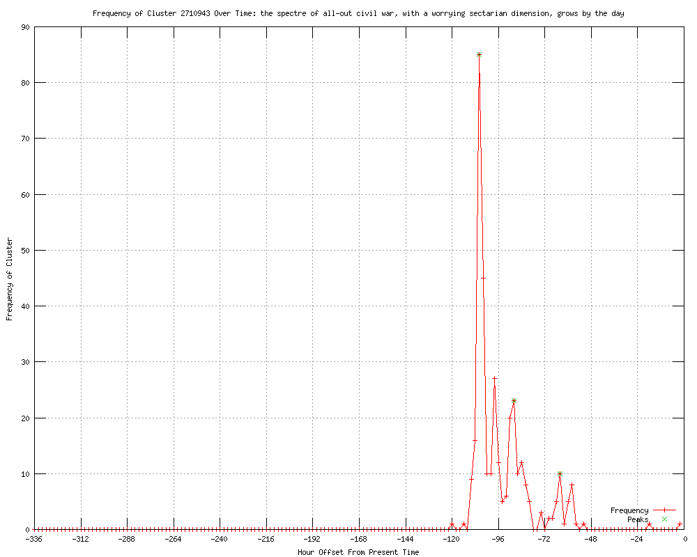 | 23 | the spectre of an all-out war, with an alarming sectarian dimension, grows by the day Urls http://aljazeera.com//news/middleeast/2012/06/201262114654512204.html http://aljazeera.com/news/middleeast/2012/06/201262114654512204.html http://mwcnews.net/news/middle-east/19318-annan-warns.html http://globalindigo.com/annan-warns-of-all-out-war-in-syria http://guardian.co.uk/world/2012/jun/02/violence-lebanon-syria-conflict-spreading http://uk.news.yahoo.com/annan-warns-sectarian-war-syria-111518728.html http://af.reuters.com/article/topNews/idAFJOE85105020120602?feedType=RSS&feedName=topNews http://af.reuters.com/article/topNews/idAFJOE85105020120602 http://trust.org/alertnet/news/annan-warns-of-all-out-sectarian-war-in-syria http://in.reuters.com/article/2012/06/02/syria-crisis-annan-idINDEE85104520120602?feedType=RSS&feedName=topNews http://moneycontrol.com/news/wire-news/annan-warns http://in.reuters.com/article/2012/06/02/syria-crisis-annan-idINDEE85104520120602?feedType=RSS&feedName=worldNews http://worldbulletin.net/index.php?aType=haber&ArticleID=90830 http://france24.com/en/20120602-syria-all-out-war-kofi-annan-united-nations-russia-qatar-assad-arab-league?ns_campaign=editorial&ns_source=RSS_public&ns_mchannel=RSS&ns_fee=0&ns_linkname=20120602_syria_all_out_war_kofi_annan http://telegraph.feedsportal.com/c/32726/f/564430/s/1ff3c7a4/l/0L0Stelegraph0O0Cnews0Cworldnews0Cmiddleeast0Csyria0C930A75210CSyria0Erisks0Eslipping0Einto0Eall0Eout0Esectarian0Ewar0Esays0EKofi0EAnnan0Bhtml/story01.htm http://gulfnews.com/news/region/syria/qatar-prime-minister-asks-security-council-for-military-intervention-in-syria-1.1030874 http://uk.express.feedsportal.com/c/33338/f/565860/s/1ff58f29/l/0L0Sdailyexpress0O0Cposts0Cview0C3241260CAnnan0Es0Ewar0Ealert0C/story01.htm http://globalindigo.com/assad-syria-faces-real-war-from-outside http://maishani.blogspot.com/2012/06/assad-syria-faces-real-war-from-outside.html http://mwcnews.net/news/middle-east/19338-real-war.html http://globalindigo.com/assad-syria-faces-real-war-from-outside-2 http://telegraph.co.uk/news/worldnews/middleeast/syria/9307521/Syria-risks-slipping-into-all-out-sectarian-war-says-Kofi-Annan.html http://truthiscontagious.com/2012/06/03/syria-risks-slipping-into-all-out-sectarian-war-says-kofi-annan |