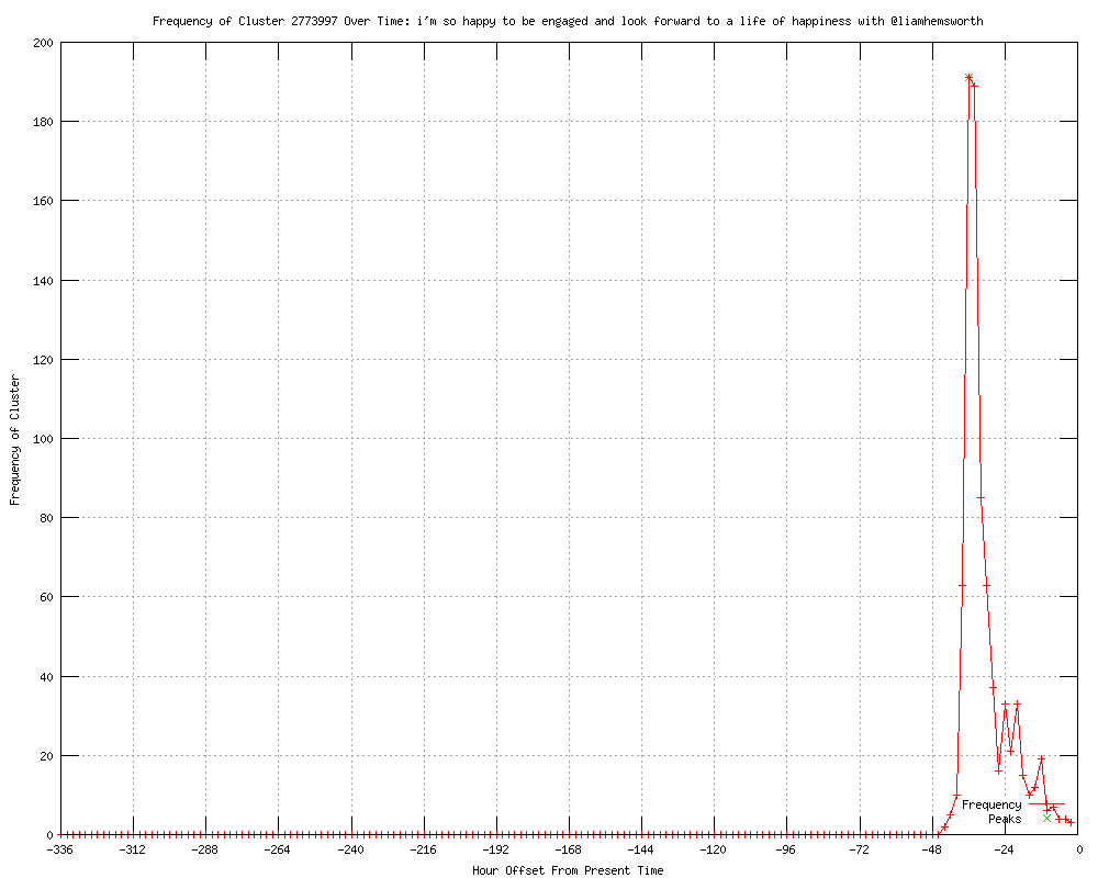 | 13 | i'm so happy to be engaged and look forward to a life of happiness with @liamhemsworth Urls http://sg.news.yahoo.com/aussie-actor-hemsworth-engaged-miley-cyrus-004812156.html http://feeds.bangkokpost.com/c/33101/f/535952/s/2017ec86/l/0L0Sbangkokpost0N0Cnews0Casia0C296970A0Caussie0Eactor0Ehemsworth0Eengaged0Eto0Emiley0Ecyrus/story01.htm http://ph.news.yahoo.com/aussie-actor-hemsworth-engaged-miley-cyrus-004812156.html http://uk.news.yahoo.com/aussie-actor-hemsworth-engaged-miley-cyrus-234812491.html http://au.news.yahoo.com/world/a/-/world/13892452/aussie-actor-hemsworth-engaged-to-miley-cyrus/ http://theborneopost.com/2012/06/07/aussie-actor-hemsworth-engaged-to-miley-cyrus-new/ http://au.news.yahoo.com/a/-/world/13892452/aussie-actor-hemsworth-engaged-to-miley-cyrus/ http://entertainment.inquirer.net/44181/aussie-actor-hemsworth-engaged-to-miley-cyrus http://france24.com/en/20120607-aussie-actor-hemsworth-engaged-miley-cyrus?ns_campaign=editorial&ns_source=RSS_public&ns_mchannel=RSS&ns_fee=0&ns_linkname=20120607_aussie_actor_hemsworth_engaged_miley_cyrus http://channelnewsasia.com/stories/entertainment/view/1206079/1/.html http://theborneopost.com/2012/06/07/aussie-actor-hemsworth-engaged-to-miley-cyrus-update/ http://news.yahoo.com/aussie-actor-hemsworth-engaged-miley-cyrus-004812677.html http://hindustantimes.com/Entertainment/Tabloid/Miley-Cyrus-engaged-to-Liam-Hemsworth/Article1-867172.aspx |