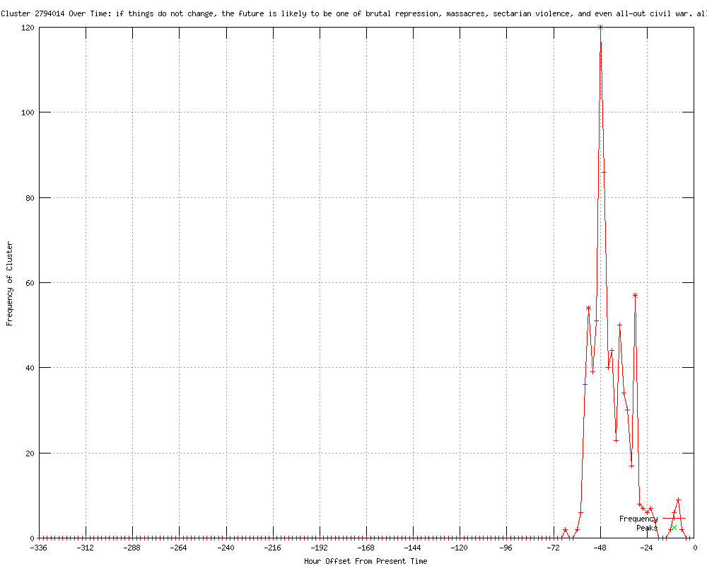 | 267 | if things do not change, the future is likely to be one of brutal repression, massacres, sectarian violence, and even all-out civil war Urls http://castanet.net/edition/news-story-76271-5-.htm#76271 http://castanet.net/edition/news-story-76274-5-.htm#76274 http://mysanantonio.com/news/article/UN-monitors-shot-at-trying-to-reach-massacre-site-3615497.php http://ajc.com/news/nation-world/un-monitors-shot-at-1453779.html?cxtype=rss_news_82109 http://mail.com/news/world/1342686-un-monitors-shot-trying-to-reach-massacre-site.html http://news.yahoo.com/un-monitors-shot-trying-reach-massacre-163433520.html http://newstimes.com/news/article/UN-monitors-shot-at-trying-to-reach-massacre-site-3615497.php http://seattlepi.com/news/article/UN-monitors-shot-at-trying-to-reach-massacre-site-3615497.php http://theglobeandmail.com/news/world/un-monitors-come-under-fire-while-heading-to-mass-killing-site/article4238107/?cmpid=rss1 http://newstalk650.com/content/un-monitors-shot-trying-reach-massacre-site http://ckom.com/content/un-monitors-shot-trying-reach-massacre-site http://cjme.com/content/un-monitors-shot-trying-reach-massacre-site http://mercurynews.com/nation-world/ci_20804895/u-n-monitors-syria-shot-at-while-trying?source=rss http://fortmilltimes.com/2012/06/07/2041748/un-monitors-shot-at-on-way-to.html http://seattlepi.com/news/article/UN-monitors-shot-at-on-way-to-Syrian-massacre-site-3615497.php http://news.yahoo.com/un-monitors-shot-way-syrian-massacre-184121602.html http://stuff.co.nz/world/middle-east/7057256/UN-monitors-shot-at-trying-to-reach-massacre-site http://newstalk650.com/content/un-monitors-shot-way-syrian-massacre-site http://ckom.com/content/un-monitors-shot-way-syrian-massacre-site http://dispatch.com/content/stories/national_world/2012/06/07/un-monitors-shot-at-on-way-to-massacre-site.html http://mail.com/news/world/1342686-un-monitors-shot-way-to-syrian-massacre-site.html http://enquirerherald.com/2012/06/07/1932535/un-monitors-shot-at-on-way-to.html http://cjme.com/content/un-monitors-shot-way-syrian-massacre-site http://mysanantonio.com/news/article/UN-monitors-shot-at-on-way-to-Syrian-massacre-site-3615497.php http://stuff.co.nz/timaru-herald/world/7057256/UN-monitors-shot-at-trying-to-reach-massacre-site http://globalnews.ca/Canada/un+chief+says+monitors+shot+at+trying+to+get+to+scene+of+latest+syrian+mass+killing/6442656519/story.html http://newstimes.com/news/article/UN-monitors-shot-at-on-way-to-Syrian-massacre-site-3615497.php http://bradenton.com/2012/06/07/4068715/un-monitors-shot-at-on-way-to.html#storylink=rss http://justthenews.info/latest-news/unarmed-un-monitors-shot-at-in-syria http://news.yahoo.com/un-monitors-shot-near-syrian-killings-200416189.html http://seattlepi.com/news/article/UN-monitors-shot-at-near-site-of-Syrian-killings-3615497.php http://newstimes.com/news/article/UN-monitors-shot-at-near-site-of-Syrian-killings-3615497.php http://newstalk650.com/content/un-monitors-shot-near-site-syrian-killings http://ckom.com/content/un-monitors-shot-near-site-syrian-killings http://cjme.com/content/un-monitors-shot-near-site-syrian-killings http://mysanantonio.com/news/article/UN-monitors-shot-at-near-site-of-Syrian-killings-3615497.php http://guardian.co.uk/world/feedarticle/10278319 http://dailycaller.com/2012/06/07/uk-pm-urges-concerted-action-on-syria/ http://newstalk650.com/content/un-monitors-shot-near-site-syrian-killings-0 http://dailytribune.com/article/20120607/NEWS05/120609644/u-n-monitors-shot-at-near-site-of-syrian-killings http://spokesman.com/stories/2012/jun/07/un-observers-attacked-in-syria/ http://svherald.com/associatedpress/268533 http://macombdaily.com/article/20120607/NEWS05/120609594/u-n-monitors-shot-at-near-site-of-syrian-killings http://news-sentinel.com/apps/pbcs.dll/article?AID=/20120607/NEWS/120609673 http://news-sentinel.com/apps/pbcs.dll/article?AID=/20120607/NEWS/120609673/1006 http://wvgazette.com/rssFeeds/201206070128 http://denverpost.com/nationworld/ci_20802238/activists-dozens-dead-new-syria-massacre?source=rss http://denverpost.com/breakingnews/ci_20802238/activists-dozens-dead-new-syria-massacre?source=rss http://komonews.com/news/local/UN-monitors-shot-at-near-site-of-Syrian-killings--157950135.html http://krgv.com/news/un-monitors-shot-at-near-site-of-syrian-killings http://guardian.co.uk/world/feedarticle/10278505 http://kcby.com/news/national/UN-monitors-shot-at-near-site-of-Syrian-killings--157950135.html http://komonews.com/news/national/UN-monitors-shot-at-near-site-of-Syrian-killings--157950135.html http://nola.com/politics/index.ssf/2012/06/un_monitors_in_syria_are_shot.html http://newstalkradiowhio.com/ap/ap/social-issues/uk-pm-urges-concerted-action-on-syria/nPNdT/ http://guardian.co.uk/world/feedarticle/10278620 http://townhall.com/news/world/2012/06/07/syrian_president_appoints_new_prime_minister http://.wsls.com/news/2012/jun/07/un-monitors-shot-at-near-site-of-syrian-killings-ar-1974145/ http://news-sentinel.com/apps/pbcs.dll/article?AID=/20120607/NEWS/120609673/1006/YOURVOICE_LOCAL http://wsbradio.com/ap/ap/social-issues/uk-pm-urges-concerted-action-on-syria/nPNdT/ http://csmonitor.com/World/Latest-News-Wires/2012/0607/Syria-UN-observers-come-under-attack http://kdwn.com/news/world-news/UN_monitors_shot_at_near_site_of_Syrian_killings http://guardian.co.uk/world/feedarticle/10278825 http://independent.ie/world-news/middle-east/syria-un-observers-come-under-fire-trying-to-reach-site-of-latest-massacre-3132495.html http://findata.co.nz/News/15876814/UN_monitors_fired_on_in_Syria.htm http://news-gazette.com/news/politics-and-government/2012-06-07/un-monitors-shot-near-site-syrian-killings.html http://newsday.com/news/world/un-monitors-under-fire-near-site-of-syrian-killings-1.3768256 http://thejakartapost.com/news/2012/06/08/un-monitors-shot-near-site-syrian-killings.html http://newsday.com/news/world/un-monitors-shot-at-near-site-of-syrian-killings--1.3768953 http://telegraph.feedsportal.com/c/32726