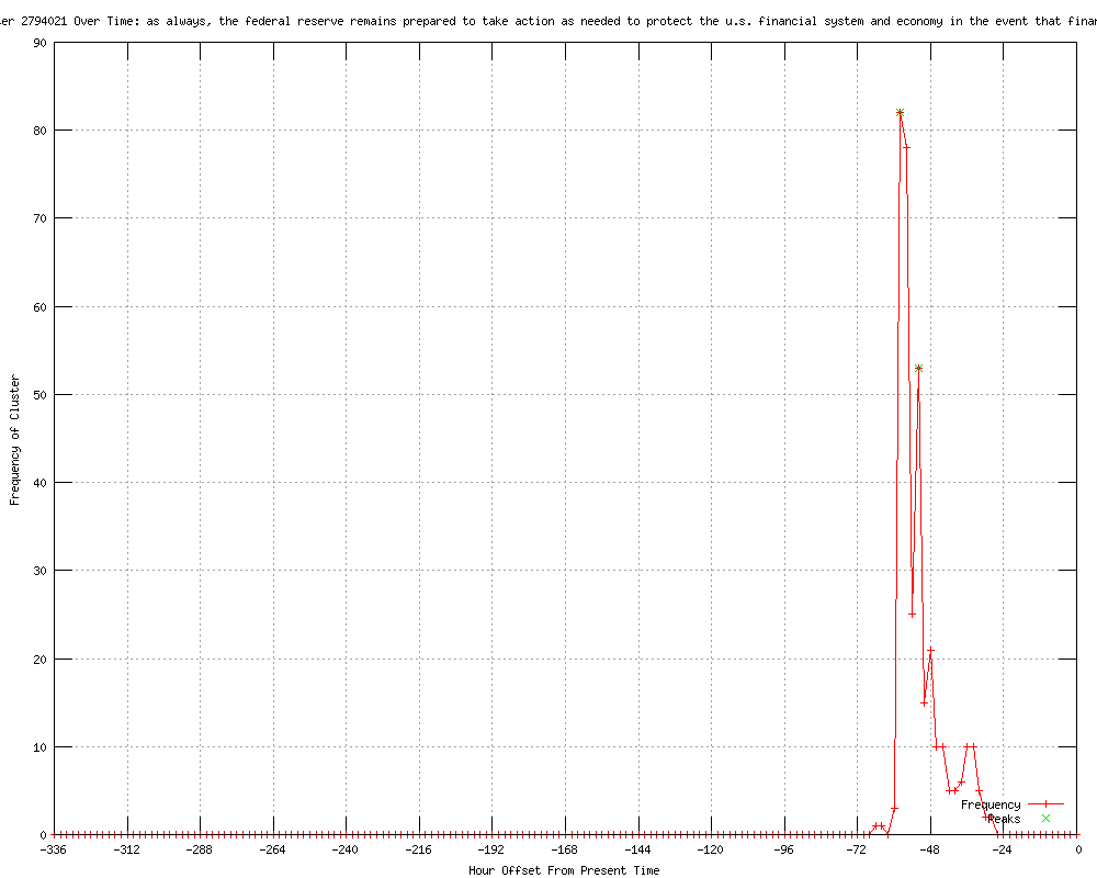 | 20 | as always, the federal reserve remains prepared to take action as needed to protect the us financial system and economy in the event that financial stresses escalate Urls http://theage.com.au/business/world-business/bernanke-says-fed-ready-if-europe-crisis-deepens-20120608-1zzn1.html http://smh.com.au/business/world-business/bernanke-says-fed-ready-if-europe-crisis-deepens-20120608-1zzn1.html http://brisbanetimes.com.au/business/world-business/bernanke-says-fed-ready-if-europe-crisis-deepens-20120608-1zzn1.html http://digitallook.com/news/20148769/London_close_Stocks_gain_with_central_banks_in_the_spotlight.html?&username=&ac= http://digitallook.com/news/sharecast/news.cgi?view=full&story=20148769&username=&ac= http://lse.co.uk/sharecast-news-article.asp?ArticleCode=20148769&ArticleHeadline=london_close:_stocks_gain_with_central_banks_in_the_spotlight http://snuffysmithsblog.blogspot.com/2012/06/bernanke-says-european-crisis-poses.html http://digitallook.com/news/20148718/US_mid-morning_Bernanke_comments_holding_stocks_back.html?&username=&ac= http://sg.businesstimes.feedsportal.com/c/34206/f/620762/s/20201f26/l/0L0Sbusinesstimes0N0Bsg0Cpremium0Ctop0Estories0Cbernanke0Esees0Erisks0Eeconomy0Eeurope0Eus0Ebudget/story01.htm http://independent.ie/business/world/eurozone-debt-crisis-puts-us-at-risk-warns-bernanke-3132464.html http://thaindian.com/newsportal/business/us-federal-reserve-ready-to-act-if-europe-crisis-worsens_100623096.html http://indiatalkies.com/2012/06/federal-reserve-ready-act-europe-crisis-worsens.html http://tdnpost.com/news/us-federal-reserve-ready-to-act-if-europe-crisis-worsens-45400.html http://daijiworld.com/news/news_disp.asp?n_id=139777 http://newkerala.com/news/newsplus/worldnews-34383.html http://feeds.bignewsnetwork.com/?sid=206413958 http://chinabusinessblog.com/2012/06/08/bernanke-fed-ready-to-act/ http://theage.com.au/business/markets/gold-slumps-on-fed-comments-20120608-1zznw.html http://smh.com.au/business/markets/gold-slumps-on-fed-comments-20120608-1zznw.html http://brisbanetimes.com.au/business/markets/gold-slumps-on-fed-comments-20120608-1zznw.html |