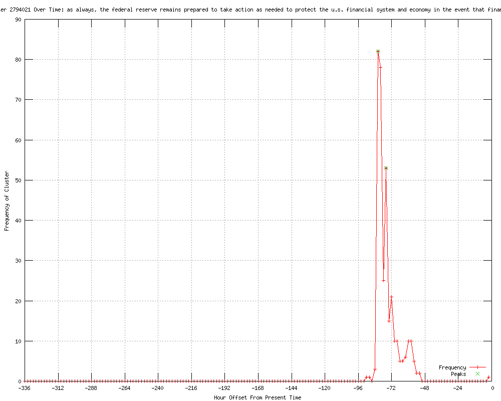 | 20 | as always, the federal reserve remains prepared to take action as needed to protect the us financial system and economy in the event that financial stresses escalate Urls http://theage.com.au/business/world-business/bernanke-says-fed-ready-if-europe-crisis-deepens-20120608-1zzn1.html http://smh.com.au/business/world-business/bernanke-says-fed-ready-if-europe-crisis-deepens-20120608-1zzn1.html http://brisbanetimes.com.au/business/world-business/bernanke-says-fed-ready-if-europe-crisis-deepens-20120608-1zzn1.html http://digitallook.com/news/20148769/London_close_Stocks_gain_with_central_banks_in_the_spotlight.html?&username=&ac= http://digitallook.com/news/sharecast/news.cgi?view=full&story=20148769&username=&ac= http://lse.co.uk/sharecast-news-article.asp?ArticleCode=20148769&ArticleHeadline=london_close:_stocks_gain_with_central_banks_in_the_spotlight http://snuffysmithsblog.blogspot.com/2012/06/bernanke-says-european-crisis-poses.html http://digitallook.com/news/20148718/US_mid-morning_Bernanke_comments_holding_stocks_back.html?&username=&ac= http://sg.businesstimes.feedsportal.com/c/34206/f/620762/s/20201f26/l/0L0Sbusinesstimes0N0Bsg0Cpremium0Ctop0Estories0Cbernanke0Esees0Erisks0Eeconomy0Eeurope0Eus0Ebudget/story01.htm http://independent.ie/business/world/eurozone-debt-crisis-puts-us-at-risk-warns-bernanke-3132464.html http://thaindian.com/newsportal/business/us-federal-reserve-ready-to-act-if-europe-crisis-worsens_100623096.html http://indiatalkies.com/2012/06/federal-reserve-ready-act-europe-crisis-worsens.html http://tdnpost.com/news/us-federal-reserve-ready-to-act-if-europe-crisis-worsens-45400.html http://daijiworld.com/news/news_disp.asp?n_id=139777 http://newkerala.com/news/newsplus/worldnews-34383.html http://feeds.bignewsnetwork.com/?sid=206413958 http://chinabusinessblog.com/2012/06/08/bernanke-fed-ready-to-act/ http://theage.com.au/business/markets/gold-slumps-on-fed-comments-20120608-1zznw.html http://smh.com.au/business/markets/gold-slumps-on-fed-comments-20120608-1zznw.html http://brisbanetimes.com.au/business/markets/gold-slumps-on-fed-comments-20120608-1zznw.html |