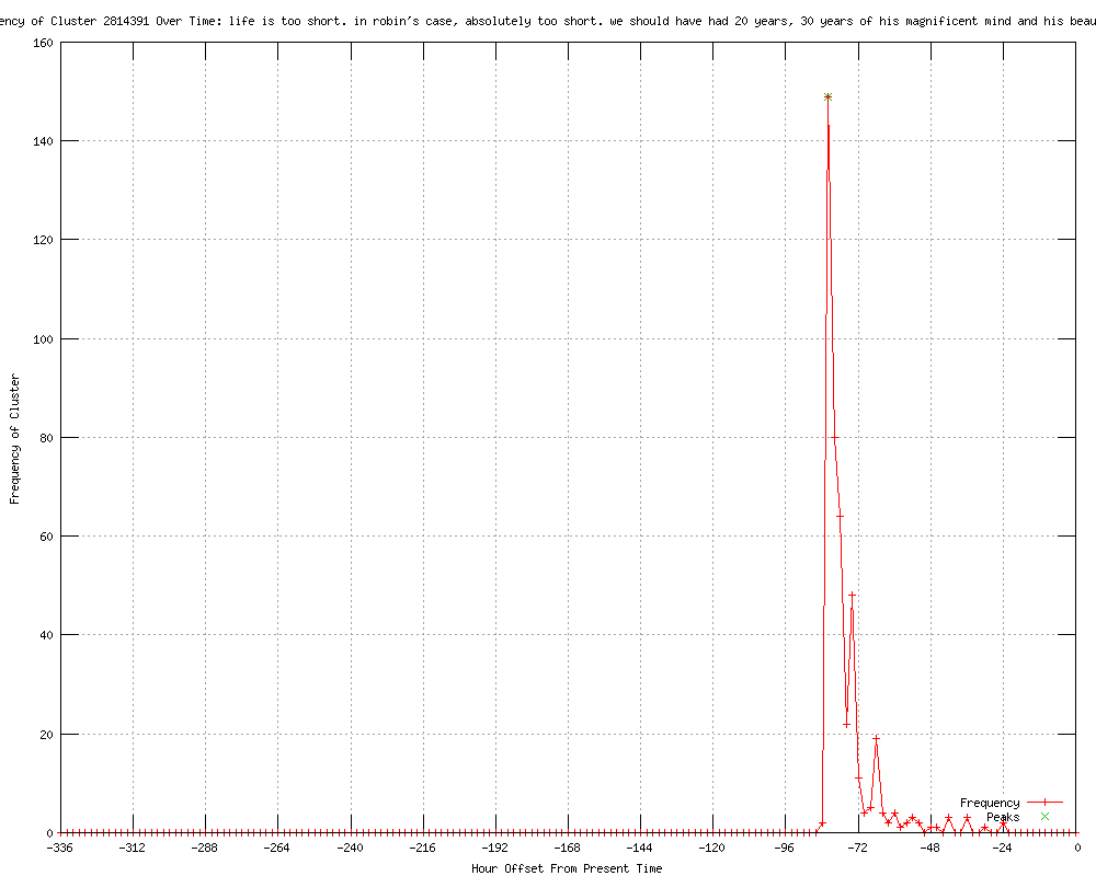 | 29 | life is too short. in robin's case, absolutely too short. we should have had 20 years, 30 years of his magnificent mind and his beautiful heart Urls http://feeds.cbsnews.com/%7Er/CBSNewsTravelGuru/%7E3/-MF-9Cz9LVY/ http://cbsnews.com/8301-31749_162-57449593-10391698/robin-gibb-laid-to-rest-in-england/ http://thametoday.co.uk/news/national/robin-gibb-reunited-with-twin-1-3932875 http://dissexpress.co.uk/news/national-news/robin-gibb-reunited-with-twin-1-3932875 http://kenilworthweeklynews.co.uk/news/national/robin-gibb-reunited-with-twin-1-3932875 http://brighouseecho.co.uk/news/national/robin-gibb-reunited-with-twin-1-4628423 http://suffolkfreepress.co.uk/news/national-news/robin-gibb-reunited-with-twin-1-3932875 http://lakelandecho.co.uk/news/national-news/robin-gibb-reunited-with-twin-1-4628423 http://fenlandcitizen.co.uk/news/national-news/robin-gibb-reunited-with-twin-1-3932875 http://fleetwoodtoday.co.uk/news/national/robin-gibb-reunited-with-twin-1-4628423 http://goolecourier.co.uk/news/national-news/robin-gibb-reunited-with-twin-1-4628423 http://leighreporter.co.uk/news/national/robin-gibb-reunited-with-twin-1-4628423 http://harboroughmail.co.uk/news/national/robin-gibb-reunited-with-twin-1-3932875 http://maltonmercury.co.uk/news/national/robin-gibb-reunited-with-twin-1-4628423 http://tringtoday.co.uk/news/national/robin-gibb-reunited-with-twin-1-3932875 http://driffieldtoday.co.uk/news/national/robin-gibb-reunited-with-twin-1-4628423 http://lancasterguardian.co.uk/news/national-news/robin-gibb-reunited-with-twin-1-4628423 http://bakewelltoday.co.uk/news/national/robin-gibb-reunited-with-twin-1-4628423 http://morleyobserver.co.uk/news/national/robin-gibb-reunited-with-twin-1-4628423 http://selbytimes.co.uk/news/national-news/robin-gibb-reunited-with-twin-1-4628423 http://uk.express.feedsportal.com/c/33338/f/565858/s/2027fde2/l/0L0Sdailyexpress0O0Cposts0Cview0C3253670CRobin0EGibb0Ereunited0Ewith0Etwin0C/story01.htm http://guardian.co.uk/music/2012/jun/08/robin-gibb-funeral-bee-gees http://iccoventry.icnetwork.co.uk/0100news/0200nationalnews/tm_headline=robin-gibb-reunited-with-twin%26method=full%26objectid=31143652%26siteid=50003-name_page.html http://thisislondon.co.uk/panewsfeeds/robin-gibb-reunited-with-twin-7831469.html http://contactmusic.com/news/barry-gibb-remembers-brother-robins-beautiful-heart-at-funeral_1341710 http://eonline.com/news/bee_gees_singer_robin_gibb_laid_rest_in/322177?cmpid=rss-000000-rssfeed-365-topstories&utm_source=eonline&utm_medium=rssfeeds&utm_campaign=rss_topstories http://thescottishsun.co.uk/scotsol/homepage/news/4363051/Bee-Gee-Robin-Gibb-is-buried.html http://thesun.co.uk/sol/homepage/news/4363051/Bee-Gee-Robin-Gibb-is-buried.html http://thesun.co.uk/sol/homepage/news/4363051/Bee-Gee-Robin-Gibb-is-buried.html?OTC-RSS&ATTR=News |