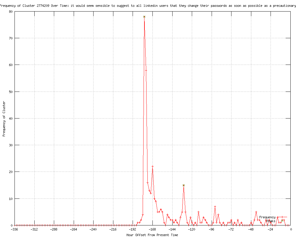 | 20 | it would seem sensible to suggest to linkedin users that they change their passwords as soon as possible as a precautionary step Urls http://independent.ie/business/technology/linkedin-investigates-theft-of-65-million-passwords-published-on-russian-hacking-forum-3131117.html http://thaindian.com/newsportal/uncategorized/linkedin-probes-theft-of-65-mn-passwords_100622806.html http://indiatalkies.com/2012/06/linkedin-probes-theft-65-mn-passwords.html http://telegraph.feedsportal.com/c/32726/f/568300/s/20145d89/l/0L0Stelegraph0O0Ctechnology0Cnews0C93143320CLinkedIn0Einvestigates0Etheft0Eof0E60B50Emillion0Epasswords0Bhtml/story01.htm http://forum.no2id.net/viewtopic.php?t=36922&p=126919#p126919 http://telegraph.co.uk/technology/news/9314332/LinkedIn-investigates-theft-of-6.5-million-passwords.html http://nwotruth.com/linkedin-investigates-theft-of-6-5-million-passwords-the-telegraph/ http://technoholik.com/news/internet/social_media/security-alert-linkedin-65-million-accounts-compromised/3604 http://newkerala.com/news/newsplus/worldnews-33607.html http://truthiscontagious.com/2012/06/06/linkedin-investigates-%e2%80%98theft%e2%80%99-of-65-million-passwords-%e2%80%93-the-telegraph http://truthiscontagious.com/2012/06/06/linkedin-investigates-theft-of-65-million-passwords-the-telegraph http://mid-day.com/news/2012/jun/070612-LinkedIn-probes-theft-of-6-5-mn-passwords.htm http://zeenews.india.com/news/net-news/linkedin-probes-theft-of-6-5-mn-passwords_780210.html http://slinkingtowardretirement.com/?p=98350 http://ebz.by/info/UK/334437392 http://siliconindia.com/news/technology/65-Million-LinkedIn-Passwords-Stolen-nid-118908-cid-2.html http://truthdive.com/2012/06/07/LinkedIn-probing-hacking-of-6-5-million-passwords.html http://indiatalkies.com/2012/06/linkedin-probing-hacking-65-million-passwords.html http://andhranews.net/Technology/2012/LinkedIn-probing-hacking-65-million-passwords-2687.htm http://technoholik.com/news/internet/social_media/security-alert-65-million-linkedin-accounts-compromised/3604 |