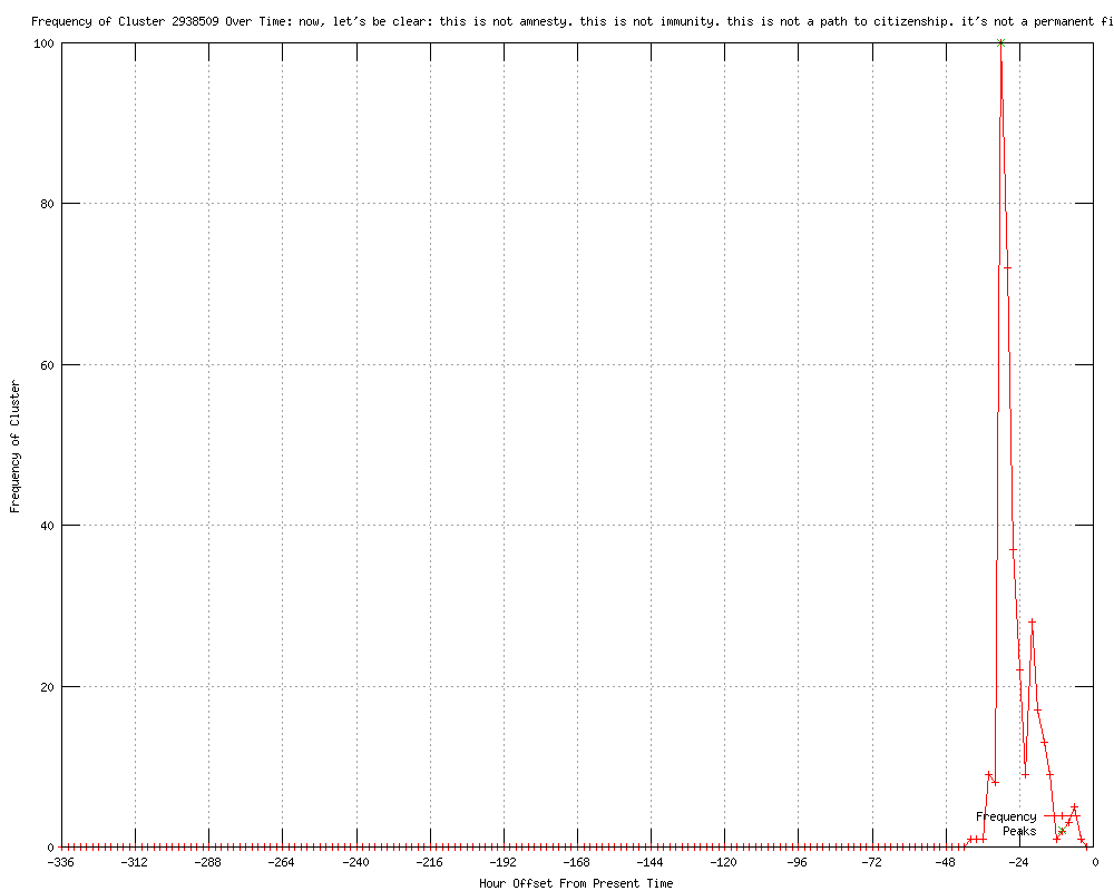 | 6 | this is not amnesty. this is not immunity. this is not a path to citizenship Urls http://latimes.com/news/politics/la-pn-obama-immigration-announcement-20120615,0,7841402.story?track=rss http://latimes.com/news/politics/la-pn-obama-immigration-announcement-20120615,0,7841402.story http://commercialappeal.com/news/2012/jun/16/obama-loosens-immigration-rules/?partner=RSS http://commercialappeal.com/news/2012/jun/16/obama-loosens-immigration-rules/?partner=yahoo_feeds http://reason.com/blog/2012/06/15/this-is-not-amnesty-this-is-not-immunity http://reason.com/blog/2012/06/15/this-is-not-amnesty-this-is-not-immunity?utm_source=feedburner&utm_medium=feed&utm_campaign=Feed%3A+reason%2FHitandRun+%28Reason+Online+-+Hit+%26+Run+Blog%29 |