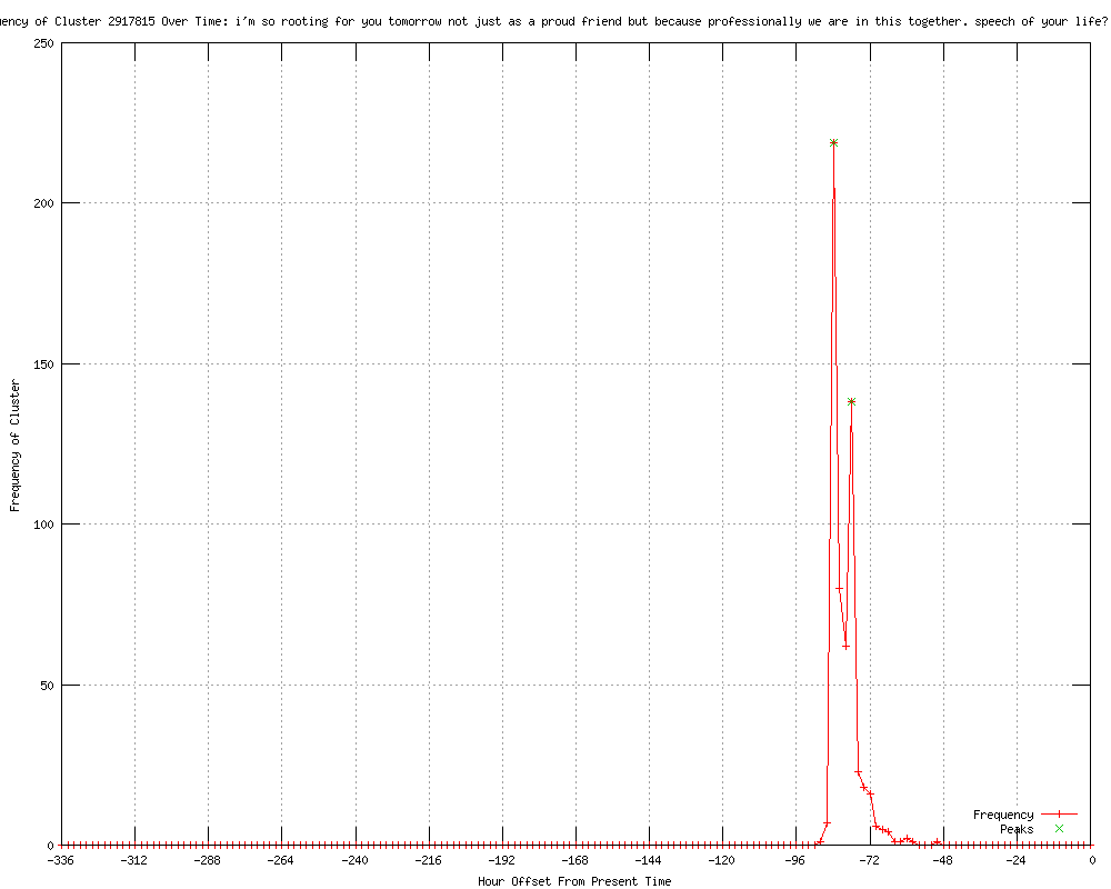 | 14 | i am so rooting for you tomorrow not just as a proud friend but because professionally we're definitely in this together Urls http://online.wsj.com/article/SB10001424052702303734204577466271758093112.html?mod=rss_whats_news_us http://us.rd.yahoo.com/finance/external/wsj/rss/SIG=12gkv38ht/*http://online.wsj.com/article/SB10001424052702303734204577466271758093112.html?ru=yahoo&mod=yahoo_hs http://online.wsj.com/article/SB10001424052702303734204577466271758093112.html?mod=rss_whats_news_us_business http://online.wsj.com/article/SB10001424052702303734204577466271758093112.html?mod=rss_asia_whats_news http://online.wsj.com/article/SB10001424052702303734204577466271758093112.html?mod=WSJ_hp_LEFTWhatsNewsCollection http://telegraph.feedsportal.com/c/32726/f/579330/s/205bda0f/l/0L0Stelegraph0O0Cnews0Cuknews0Cleveson0Einquiry0C93327130CBrooks0Etold0ECameron0EWere0Ein0Ethis0Etogether0Bhtml/story01.htm http://telegraph.feedsportal.com/c/32726/f/579309/s/205bec6d/l/0L0Stelegraph0O0Cnews0Cuknews0Cleveson0Einquiry0C93327130CBrooks0Etold0ECameron0EWere0Ein0Ethis0Etogether0Bhtml/story01.htm http://telegraph.feedsportal.com/c/32726/f/564430/s/205bdb84/l/0L0Stelegraph0O0Cnews0Cuknews0Cleveson0Einquiry0C93327130CBrooks0Etold0ECameron0EWere0Ein0Ethis0Etogether0Bhtml/story01.htm http://care2.com/causes/david-cameron-denies-murdoch-favoritism.html http://wogx.com/story/18787782/british-pm-cameron-grilled-in-uk-hacking-inquiry http://myfoxchicago.com/story/18787782/british-pm-cameron-grilled-in-uk-hacking-inquiry http://guardian.co.uk/uk/2012/jun/14/rebekah-brooks-texted-david-cameron http://feeds.guardian.co.uk/%7Er/theguardian/media/rss/%7E3/9Vn-zxdZWnY/rebekah-brooks-texted-david-cameron http://nymag.com/daily/intel/2012/06/david-cameron-distancing-himself-from-murdoch.html |