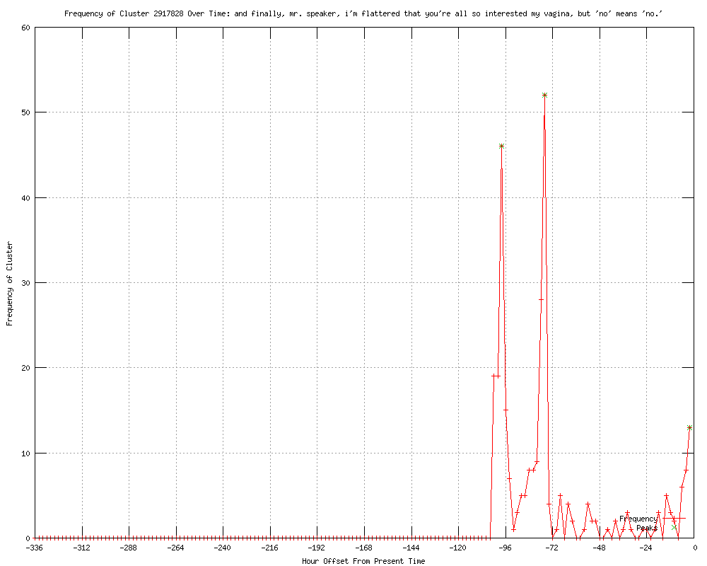 | 13 | i'm flattered that you want to get in my vagina, but no means no Urls http://blogrunner.com/snapshot/D/4/4/as_punishment_for_opposing_antiabortion_bill_male_michigan_house_leader_bans_two_female_reps_from_speaking/ http://thinkprogress.org/health/2012/06/14/499961/as-punishment-for-opposing-anti-abortion-bill-male-michigan-house-leader-bans-two-female-reps-from-speaking/ http://jezebel.com/5918493/female-legislator-who-dared-say-vagina-during-abortion-debate-banned-from-speaking-on-house-floor http://leftword.blogdig.net/archives/articles/June2012/14/As_Punishment_For_Opposing_Anti_Abortion_Bill__Male_Michigan_House_Leader_Bans_Two_Female_Reps_From_Speaking.html http://aclu.org/blog/reproductive-freedom-womens-rights/whose-house-our-house-whose-vagina-not-yours-mr-speaker http://balloon-juice.com/2012/06/14/the-latest-from-the-american-taliban/ http://libertyvoice.net/2012-06/whose-house-our-house-whose-vagina-not-yours-mr-speaker/ http://motorcityliberal.blogspot.com/2012/06/as-punishment-for-opposing-anti.html http://rising-hegemon.blogspot.com/2012/06/party-of-11-year-olds-may-be.html http://firedoglake.com/2012/06/15/the-party-of-11-year-olds-may-be-overestimating/ http://rightmichigan.com/story/2012/6/15/85622/0316 http://freerepublic.com/focus/f-bloggers/2895560/posts http://the-reaction.blogspot.com/2012/06/republican-theocrats-trying-to-control.html |