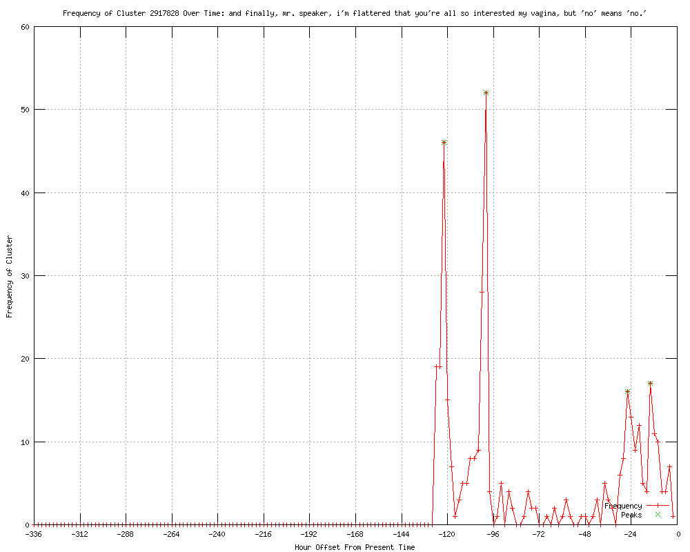 | 13 | i'm flattered that you want to get in my vagina, but no means no Urls http://blogrunner.com/snapshot/D/4/4/as_punishment_for_opposing_antiabortion_bill_male_michigan_house_leader_bans_two_female_reps_from_speaking/ http://thinkprogress.org/health/2012/06/14/499961/as-punishment-for-opposing-anti-abortion-bill-male-michigan-house-leader-bans-two-female-reps-from-speaking/ http://jezebel.com/5918493/female-legislator-who-dared-say-vagina-during-abortion-debate-banned-from-speaking-on-house-floor http://leftword.blogdig.net/archives/articles/June2012/14/As_Punishment_For_Opposing_Anti_Abortion_Bill__Male_Michigan_House_Leader_Bans_Two_Female_Reps_From_Speaking.html http://aclu.org/blog/reproductive-freedom-womens-rights/whose-house-our-house-whose-vagina-not-yours-mr-speaker http://balloon-juice.com/2012/06/14/the-latest-from-the-american-taliban/ http://libertyvoice.net/2012-06/whose-house-our-house-whose-vagina-not-yours-mr-speaker/ http://motorcityliberal.blogspot.com/2012/06/as-punishment-for-opposing-anti.html http://rising-hegemon.blogspot.com/2012/06/party-of-11-year-olds-may-be.html http://firedoglake.com/2012/06/15/the-party-of-11-year-olds-may-be-overestimating/ http://rightmichigan.com/story/2012/6/15/85622/0316 http://freerepublic.com/focus/f-bloggers/2895560/posts http://the-reaction.blogspot.com/2012/06/republican-theocrats-trying-to-control.html |