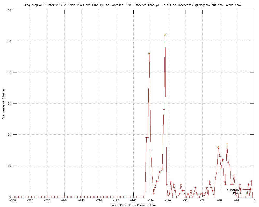| 13 | i'm flattered that you want to get in my vagina, but no means no Urls http://blogrunner.com/snapshot/D/4/4/as_punishment_for_opposing_antiabortion_bill_male_michigan_house_leader_bans_two_female_reps_from_speaking/ http://thinkprogress.org/health/2012/06/14/499961/as-punishment-for-opposing-anti-abortion-bill-male-michigan-house-leader-bans-two-female-reps-from-speaking/ http://jezebel.com/5918493/female-legislator-who-dared-say-vagina-during-abortion-debate-banned-from-speaking-on-house-floor http://leftword.blogdig.net/archives/articles/June2012/14/As_Punishment_For_Opposing_Anti_Abortion_Bill__Male_Michigan_House_Leader_Bans_Two_Female_Reps_From_Speaking.html http://aclu.org/blog/reproductive-freedom-womens-rights/whose-house-our-house-whose-vagina-not-yours-mr-speaker http://balloon-juice.com/2012/06/14/the-latest-from-the-american-taliban/ http://libertyvoice.net/2012-06/whose-house-our-house-whose-vagina-not-yours-mr-speaker/ http://motorcityliberal.blogspot.com/2012/06/as-punishment-for-opposing-anti.html http://rising-hegemon.blogspot.com/2012/06/party-of-11-year-olds-may-be.html http://firedoglake.com/2012/06/15/the-party-of-11-year-olds-may-be-overestimating/ http://rightmichigan.com/story/2012/6/15/85622/0316 http://freerepublic.com/focus/f-bloggers/2895560/posts http://the-reaction.blogspot.com/2012/06/republican-theocrats-trying-to-control.html |