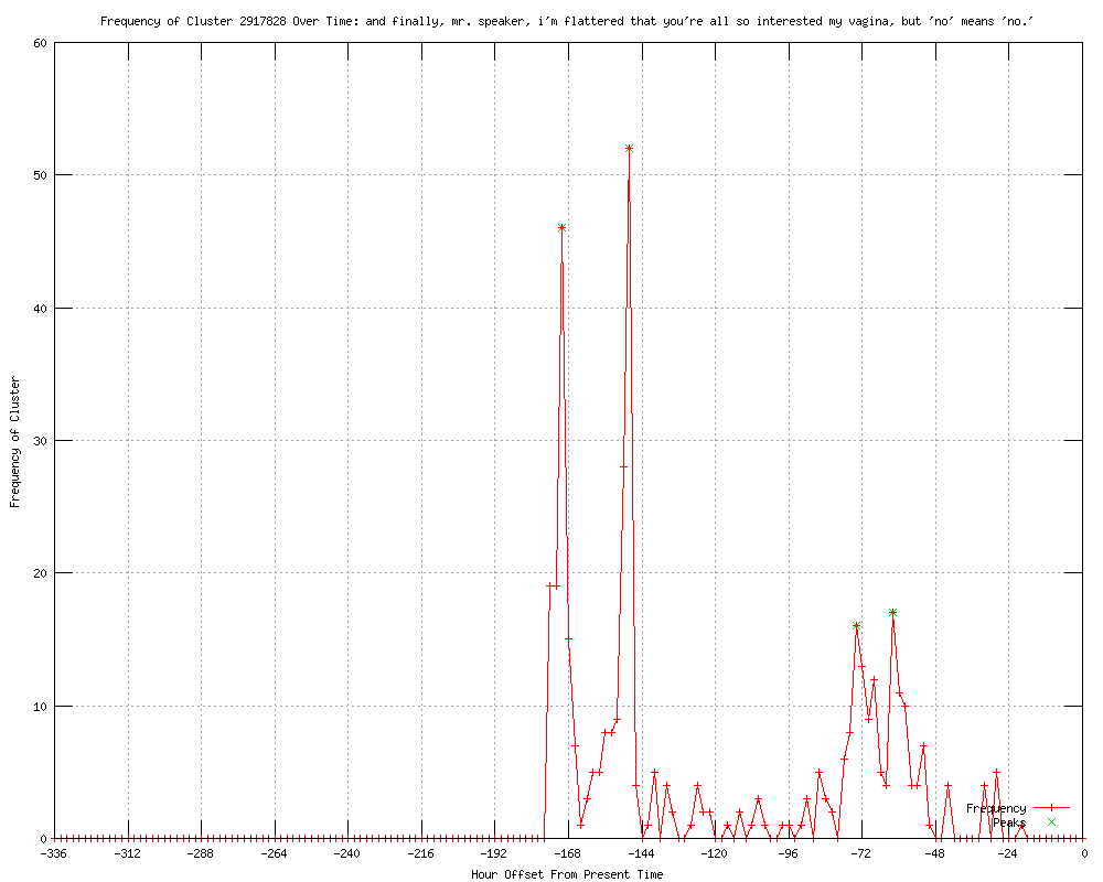| 14 | finally, mr. speaker, i'm flattered that you're all so interested in my vagina, but 'no' means 'no.' Urls http://mediaite.com/online/mi-rep-denied-speaking-on-house-floor-following-vagina-remark/ http://businessinsider.com/michigan-lawmaker-banned-for-saying-the-word-vagina-2012-6 http://businessinsider.com/michigan-lawmaker-banned-for-saying-the-word-vagina-2012-6?utm_source=feedburner&utm_medium=feed&utm_campaign=Feed%3A+businessinsider+%28Business+Insider%29 http://Theatlantic.feedsportal.com/c/34375/f/625848/s/205cfb17/l/0L0Stheatlanticwire0N0Cpolitics0C20A120C0A60Cvagina0Etoo0Elewd0Emichigan0Estate0Erepublicans0C535790C/story01.htm http://investmentwatchblog.com/seriously-michigan-lawmaker-banned-for-saying-the-word-vagina/ http://susiemadrak.com/2012/06/15/vagina/ http://nymag.com/daily/intel/2012/06/michigan-gop-bans-lawmaker-for-using-the-v-word.html http://democraticunderground.com/1014144019 http://indexonline.org/v-word-draws-sanction-in-michigan-house-2/165580?utm_source=rss&utm_medium=rss&utm_campaign=v-word-draws-sanction-in-michigan-house-2 http://indexonline.org/v-word-draws-sanction-in-michigan-house-3/165587?utm_source=rss&utm_medium=rss&utm_campaign=v-word-draws-sanction-in-michigan-house-3 http://upi.com/Top_News/US/2012/06/14/V-word-draws-sanction-in-Michigan-House/UPI-71241339713839/ http://istockanalyst.com/article/viewarticle/articleid/5898983 http://onlinejournal.com/top-news/v-word-draws-sanction-in-michigan-house/ http://darkerme.com/post/25113995590 |