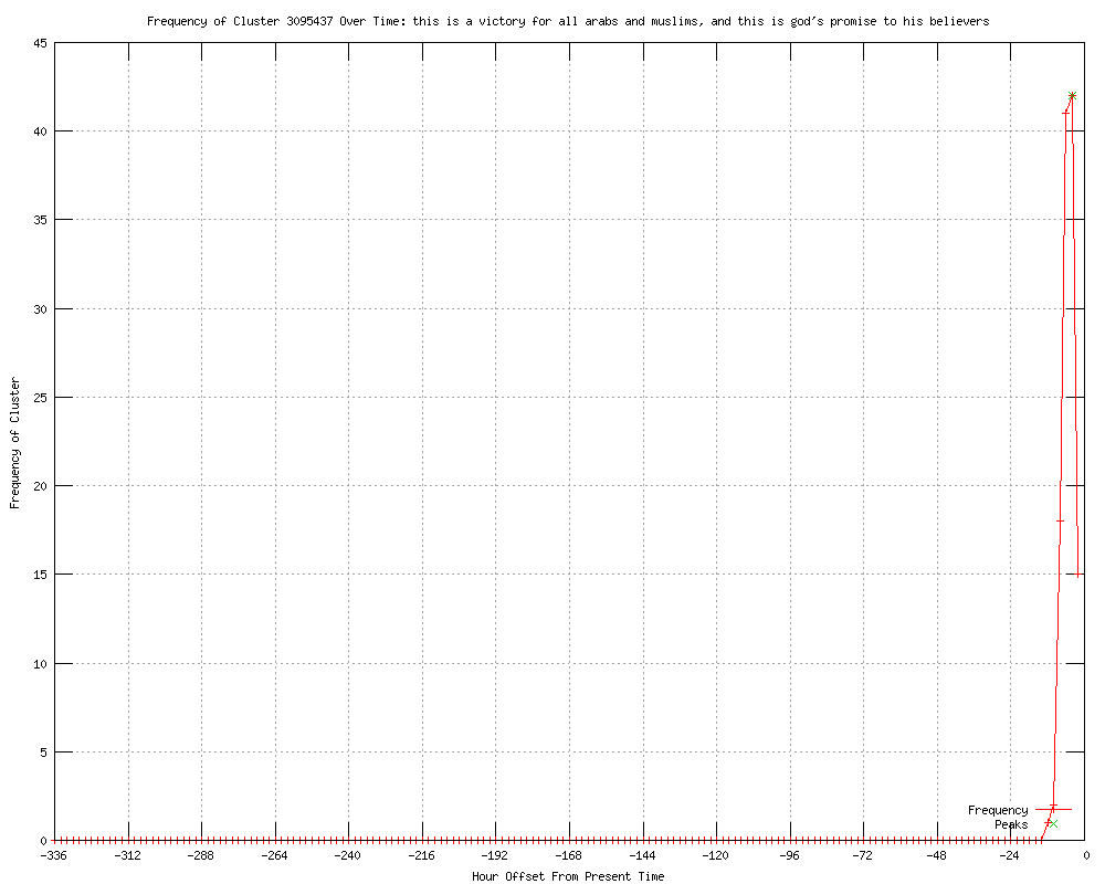 | 68 | this is a victory for all arabs and muslims, and this is god's promise to his believers Urls http://ajc.com/news/nation-world/gazans-celebrate-brotherhood-victory-1463572.html?cxtype=rss_news_82109 http://justthenews.info/latest-news/islamist-mohammed-morsi-wins-egypt-presidency http://wsbradio.com/ap/ap/religion/gazans-celebrate-islamic-victory-in-egypt/nPdHK/ http://news.yahoo.com/gazans-celebrate-brotherhood-victory-egypt-174030114.html http://mysanantonio.com/news/article/Gazans-celebrate-Brotherhood-victory-in-Egypt-3658884.php http://guardian.co.uk/world/feedarticle/10304715 http://mail.com/news/world/1384088-gazans-celebrate-brotherhood-victory-egypt.html http://utsandiego.com/news/2012/jun/24/gazans-celebrate-brotherhood-victory-in-egypt/ http://lakewyliepilot.com/2012/06/24/1572899/gazans-celebrate-islamic-victory.html http://seattlepi.com/news/article/Gazans-celebrate-Brotherhood-victory-in-Egypt-3658884.php http://sfgate.com/news/article/Gazans-celebrate-Brotherhood-victory-in-Egypt-3658884.php http://kdwn.com/news/world-news/Gazans_celebrate_Brotherhood_victory_in_Egypt http://newstimes.com/news/article/Gazans-celebrate-Brotherhood-victory-in-Egypt-3658884.php http://newstalkradiowhio.com/ap/ap/religion/gazans-celebrate-islamic-victory-in-egypt/nPdHK/ http://boston.com/news/world/middleeast/articles/2012/06/24/gazans_celebrate_islamic_victory_in_egypt?rss_id=Boston.com+--+Latest+news http://news.eircom.net/breakingnews/20592334/ http://breakingnews.ie/world/gazans-hail-brotherhood-victory-556576.html http://cbsnews.com/8301-501713_162-57459515/gazans-celebrate-brotherhood-victory-in-egypt/ http://.wsls.com/news/2012/jun/24/gazans-celebrate-brotherhood-victory-in-egypt-ar-2010494/ http://statesman.com/news/nation/gazans-celebrate-brotherhood-victory-in-egypt-2403440.html http://guardian.co.uk/world/feedarticle/10304935 http://jihadwatch.org/2012/06/gaza-one-killed-six-wounded-as-tens-of-thousands-celebrate-muslim-brotherhood-victory-in-egypt.html http://taiwannews.com.tw/etn/news_content.php?id=1955189 http://guardian.co.uk/world/feedarticle/10305120 http://wsbradio.com/ap/ap/top-news/israel-jittery-after-brotherhood-victory-in-egypt/nPdL3/ http://wtol.com/story/18866860/israel-jittery-after-brotherhood-victory-in-egypt http://wten.com/story/18866860/israel-jittery-after-brotherhood-victory-in-egypt http://miamiherald.com/2012/06/24/2865873/israel-jittery-after-brotherhood.html http://newsvine.com/_news/2012/06/24/12385398-israel-jittery-after-brotherhood-victory-in-egypt http://newstimes.com/news/article/Israel-jittery-after-Brotherhood-victory-in-Egypt-3659013.php http://live5news.com/story/18866860/israel-jittery-after-brotherhood-victory-in-egypt http://ajc.com/news/nation-world/israel-jittery-after-brotherhood-1463639.html?cxtype=rss_news_82109 http://ksl.com?nid=235&sid=20976971&s_cid=rss-235 http://wkrn.com/story/18866860/israel-jittery-after-brotherhood-victory-in-egypt http://enquirerherald.com/2012/06/24/1949131/israel-jittery-after-brotherhood.html http://khnl.com/story/18866860/israel-jittery-after-brotherhood-victory-in-egypt http://wboc.com/story/18866860/israel-jittery-after-brotherhood-victory-in-egypt http://wandtv.com/story/18866860/israel-jittery-after-brotherhood-victory-in-egypt http://klfy.com/story/18866860/israel-jittery-after-brotherhood-victory-in-egypt http://klkntv.com/story/18866860/israel-jittery-after-brotherhood-victory-in-egypt http://abc40.com/story/18866860/israel-jittery-after-brotherhood-victory-in-egypt http://kdwn.com/news/world-news/Israel_jittery_after_Brotherhood_victory_in_Egypt http://kswo.com/story/18866860/israel-jittery-after-brotherhood-victory-in-egypt http://wsbradio.com/ap/ap/religion/israel-jittery-after-brotherhood-victory-in-egypt/nPdL3/ http://wsfa.com/story/18866860/israel-jittery-after-brotherhood-victory-in-egypt http://startribune.com/world/160177545.html http://newstalkradiowhio.com/ap/ap/top-news/israel-jittery-after-brotherhood-victory-in-egypt/nPdL3/ http://mysanantonio.com/news/article/Israel-jittery-after-Brotherhood-victory-in-Egypt-3659013.php http://.wsls.com/news/2012/jun/24/israel-jittery-after-brotherhood-victory-in-egypt-ar-2010565/ http://bigpondnews.com/articles/World/2012/06/25/Gaza_celebrates_Egypt_election_result_764560.html http://seattletimes.nwsource.com/html/nationworld/2018517391_apmlmideastegypt.html?syndication=rss http://guardian.co.uk/world/feedarticle/10304842 http://foxnews.com/world/2012/06/24/israel-jittery-after-brotherhood-victory-in-egypt673711/ http://cbsnews.com/8301-501713_162-57459538/israel-jittery-after-brotherhood-victory-in-egypt/ http://findata.co.nz/News/15971884/CBS_3_Springfield_WSHMIsrael_jittery_after_Brotherhood_victory_in_bb.htm http://huffingtonpost.com/2012/06/24/egypt-elections-israel-muslim-brotherhood_n_1622658.html http://vosizneias.com/108578/2012/06/24/jerusalem-israel-jittery-after-brotherhood-victory-in-egypt/ http://newstalkradiowhio.com/ap/ap/religion/israel-jittery-after-brotherhood-victory-in-egypt/nPdL3/ http://guardian.co.uk/world/feedarticle/10304871 http://boston.com/news/world/middleeast/articles/2012/06/24/israel_jittery_after_brotherhood_victory_in_egypt_1340565568?rss_id=Boston.com+--+Latest+news http://indystar.com/article/20120624/NEWS/206240345 http://thejakartapost.com/news/2012/06/25/israel-jittery-after-brotherhood-victory-egypt.html http://wibw.com/home/headlines/Israel_Jittery_After_Brotherhood_Victory_In_Egypt_160192495.html http://wibw.com/home/nationalnews/headlines/Israel_Jittery_After_Brotherhood_Victory_In_Egypt_160192495.html http://guardian.co.uk/world/feedarticle/10305080 http://taiwannews.com.tw/etn/news_content.php?id=1955221 http://guardian.co.uk/world/feedarticle/10305183 http://justthenews.info/latest-news/egypts-morsi-named-president-in-milestone-election |