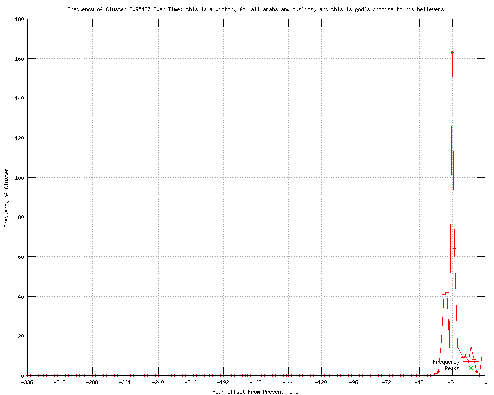 | 75 | this is a victory for all arabs and muslims, and this is god's promise to his believers Urls http://ajc.com/news/nation-world/gazans-celebrate-brotherhood-victory-1463572.html?cxtype=rss_news_82109 http://justthenews.info/latest-news/islamist-mohammed-morsi-wins-egypt-presidency http://wsbradio.com/ap/ap/religion/gazans-celebrate-islamic-victory-in-egypt/nPdHK/ http://news.yahoo.com/gazans-celebrate-brotherhood-victory-egypt-174030114.html http://mysanantonio.com/news/article/Gazans-celebrate-Brotherhood-victory-in-Egypt-3658884.php http://guardian.co.uk/world/feedarticle/10304715 http://mail.com/news/world/1384088-gazans-celebrate-brotherhood-victory-egypt.html http://utsandiego.com/news/2012/jun/24/gazans-celebrate-brotherhood-victory-in-egypt/ http://lakewyliepilot.com/2012/06/24/1572899/gazans-celebrate-islamic-victory.html http://seattlepi.com/news/article/Gazans-celebrate-Brotherhood-victory-in-Egypt-3658884.php http://sfgate.com/news/article/Gazans-celebrate-Brotherhood-victory-in-Egypt-3658884.php http://kdwn.com/news/world-news/Gazans_celebrate_Brotherhood_victory_in_Egypt http://newstimes.com/news/article/Gazans-celebrate-Brotherhood-victory-in-Egypt-3658884.php http://newstalkradiowhio.com/ap/ap/religion/gazans-celebrate-islamic-victory-in-egypt/nPdHK/ http://boston.com/news/world/middleeast/articles/2012/06/24/gazans_celebrate_islamic_victory_in_egypt?rss_id=Boston.com+--+Latest+news http://news.eircom.net/breakingnews/20592334/ http://breakingnews.ie/world/gazans-hail-brotherhood-victory-556576.html http://cbsnews.com/8301-501713_162-57459515/gazans-celebrate-brotherhood-victory-in-egypt/ http://.wsls.com/news/2012/jun/24/gazans-celebrate-brotherhood-victory-in-egypt-ar-2010494/ http://statesman.com/news/nation/gazans-celebrate-brotherhood-victory-in-egypt-2403440.html http://guardian.co.uk/world/feedarticle/10304935 http://jihadwatch.org/2012/06/gaza-one-killed-six-wounded-as-tens-of-thousands-celebrate-muslim-brotherhood-victory-in-egypt.html http://taiwannews.com.tw/etn/news_content.php?id=1955189 http://guardian.co.uk/world/feedarticle/10305120 http://wsbradio.com/ap/ap/top-news/israel-jittery-after-brotherhood-victory-in-egypt/nPdL3/ http://wtol.com/story/18866860/israel-jittery-after-brotherhood-victory-in-egypt http://wten.com/story/18866860/israel-jittery-after-brotherhood-victory-in-egypt http://miamiherald.com/2012/06/24/2865873/israel-jittery-after-brotherhood.html http://newsvine.com/_news/2012/06/24/12385398-israel-jittery-after-brotherhood-victory-in-egypt http://newstimes.com/news/article/Israel-jittery-after-Brotherhood-victory-in-Egypt-3659013.php http://live5news.com/story/18866860/israel-jittery-after-brotherhood-victory-in-egypt http://ajc.com/news/nation-world/israel-jittery-after-brotherhood-1463639.html?cxtype=rss_news_82109 http://ksl.com?nid=235&sid=20976971&s_cid=rss-235 http://wkrn.com/story/18866860/israel-jittery-after-brotherhood-victory-in-egypt http://enquirerherald.com/2012/06/24/1949131/israel-jittery-after-brotherhood.html http://khnl.com/story/18866860/israel-jittery-after-brotherhood-victory-in-egypt http://wboc.com/story/18866860/israel-jittery-after-brotherhood-victory-in-egypt http://wandtv.com/story/18866860/israel-jittery-after-brotherhood-victory-in-egypt http://klfy.com/story/18866860/israel-jittery-after-brotherhood-victory-in-egypt http://klkntv.com/story/18866860/israel-jittery-after-brotherhood-victory-in-egypt http://abc40.com/story/18866860/israel-jittery-after-brotherhood-victory-in-egypt http://kdwn.com/news/world-news/Israel_jittery_after_Brotherhood_victory_in_Egypt http://kswo.com/story/18866860/israel-jittery-after-brotherhood-victory-in-egypt http://wsbradio.com/ap/ap/religion/israel-jittery-after-brotherhood-victory-in-egypt/nPdL3/ http://wsfa.com/story/18866860/israel-jittery-after-brotherhood-victory-in-egypt http://startribune.com/world/160177545.html http://newstalkradiowhio.com/ap/ap/top-news/israel-jittery-after-brotherhood-victory-in-egypt/nPdL3/ http://mysanantonio.com/news/article/Israel-jittery-after-Brotherhood-victory-in-Egypt-3659013.php http://.wsls.com/news/2012/jun/24/israel-jittery-after-brotherhood-victory-in-egypt-ar-2010565/ http://bigpondnews.com/articles/World/2012/06/25/Gaza_celebrates_Egypt_election_result_764560.html http://seattletimes.nwsource.com/html/nationworld/2018517391_apmlmideastegypt.html?syndication=rss http://guardian.co.uk/world/feedarticle/10304842 http://foxnews.com/world/2012/06/24/israel-jittery-after-brotherhood-victory-in-egypt673711/ http://cbsnews.com/8301-501713_162-57459538/israel-jittery-after-brotherhood-victory-in-egypt/ http://findata.co.nz/News/15971884/CBS_3_Springfield_WSHMIsrael_jittery_after_Brotherhood_victory_in_bb.htm http://huffingtonpost.com/2012/06/24/egypt-elections-israel-muslim-brotherhood_n_1622658.html http://vosizneias.com/108578/2012/06/24/jerusalem-israel-jittery-after-brotherhood-victory-in-egypt/ http://newstalkradiowhio.com/ap/ap/religion/israel-jittery-after-brotherhood-victory-in-egypt/nPdL3/ http://guardian.co.uk/world/feedarticle/10304871 http://boston.com/news/world/middleeast/articles/2012/06/24/israel_jittery_after_brotherhood_victory_in_egypt_1340565568?rss_id=Boston.com+--+Latest+news http://indystar.com/article/20120624/NEWS/206240345 http://thejakartapost.com/news/2012/06/25/israel-jittery-after-brotherhood-victory-egypt.html http://wibw.com/home/headlines/Israel_Jittery_After_Brotherhood_Victory_In_Egypt_160192495.html http://wibw.com/home/nationalnews/headlines/Israel_Jittery_After_Brotherhood_Victory_In_Egypt_160192495.html http://guardian.co.uk/world/feedarticle/10305080 http://taiwannews.com.tw/etn/news_content.php?id=1955221 http://guardian.co.uk/world/feedarticle/10305183 http://justthenews.info/latest-news/egypts-morsi-named-president-in-milestone-election http://guardian.co.uk/world/feedarticle/10305233 http://recordpub.com/news/article/5198993 http://mountdweller.blogspot.com/2012/06/israel-dah-ketar-lutut.html http:/