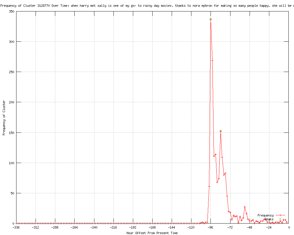 | 19 | when harry met sally is one of my go-to rainy day movies. thanks to nora ephron for making so many people happy. she will be missed Urls http://news-press.com/article/20120626/NATION/120626027/Oscar-nominated-filmmaker-Nora-Ephron-dead-age-71?odyssey=tab|topnews|img|Home http://kfvs.com/story/18888188/actors-writers-react-to-ephrons-death-on-twitter http://wlbt.com/story/18888188/actors-writers-react-to-ephrons-death-on-twitter http://newsvine.com/_news/2012/06/26/12425660-actors-writers-react-to-ephrons-death-on-twitter http://utsandiego.com/news/2012/jun/26/actors-writers-react-to-ephrons-death-on-twitter/ http://omg.yahoo.com/news/actors-writers-react-ephrons-death-twitter-013748854.html http://mail.com/news/us/1390188-actors-writers-react-to-ephrons-death-twitter.html http://hosted.ap.org/dynamic/stories/U/US_OBIT_NORA_EPHRON_TWITTER_REACTION?SITE=WCMHTV&SECTION=HOME&TEMPLATE=DEFAULT http://wonderwall.msn.com/entertainment/actors-writers-react-to-ephrons-death-on-twitter-1689980.story http://seattlepi.com/news/article/Actors-writers-react-to-Ephron-s-death-on-Twitter-3665001.php http://goerie.com/apps/pbcs.dll/article?AID=/20120626/APA/1206261046 http://bostonherald.com/entertainment/movies/general/view.bg?articleid=1061141735&srvc=rss http://sfgate.com/news/article/Actors-writers-react-to-Ephron-s-death-on-Twitter-3665001.php http://bostonherald.com/track/celebrity/view.bg?articleid=1061141735&srvc=rss http://seattletimes.nwsource.com/html/entertainment/2018536031_apusobitnoraephrontwitterreaction.html?syndication=rss http://cbsnews.com/8301-501368_162-57461216/actors-writers-react-to-ephrons-death-on-twitter/ http://entertainment.msn.com/news/article.aspx?news=739071&affid=100055 http://cbs3springfield.com/story/18888188/actors-writers-react-to-ephrons-death-on-twitter http://sify.com/movies/actors-writers-react-to-ephron-s-death-on-twitter-news-hollywood-mg1h4uihhih.html |