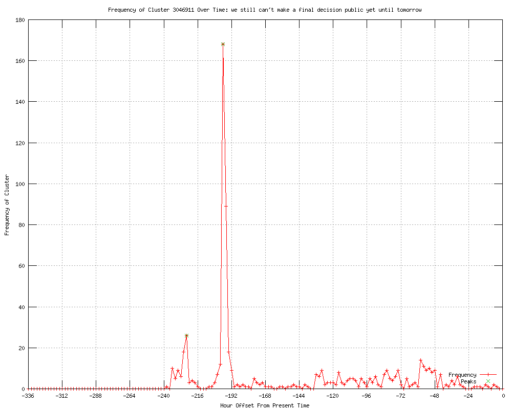 | 47 | we still can't make a final decision public yet until tomorrow Urls http://independent.ie/world-news/europe/wikileaks-julian-assange-decision-expected-today-on-asylum-bid-to-ecuador-3145733.html http://rte.ie/news/2012/0621/julian-assange-ecuador.html http://guardian.co.uk/media/2012/jun/21/julian-assange-ecuador-decision-asylum http://standard.co.uk/news/uk/ecuadorian-ambassador-says-country-is-considering-wikileaks-founder-julian-assanges-bid-for-political-asylum-7872213.html http://standard.co.uk/news/uk/wikileaks-julian-assanges-bid-for-political-asylum-at-ecuadorian-embassy-to-be-decided-today-7872213.html http://feeds.guardian.co.uk/%7Er/theguardian/media/rss/%7E3/DOusjqfHbec/julian-assange-ecuador-decision-asylum http://uk.news.yahoo.com/ecuador-decision-assange-asylum-imminent-report-065437980.html http://news.yahoo.com/ecuador-decision-assange-asylum-imminent-report-065437980.html http://news.yahoo.com/ecuador-decision-assange-asylum-imminent-report-072023028.html http://worldbulletin.net/index.php?aType=haber&ArticleID=91582 http://japantoday.com/category/world/view/ecuador-decision-on-assange-asylum-imminent-report http://archive.japantoday.com/category/world/view/ecuador-decision-on-assange-asylum-imminent-report http://rssreader.blogspot.com/2012/06/y-alert-yahoo-news-latest-news_8926.html http://rssreader.blogspot.com/2012/06/y-alert-yahoo-news-latest-news_9710.html http://thextrivia.blogspot.com/2012/06/oracle-chief-buys-hawaiian-island.html http://dnaindia.com/world/report_ecuador-decision-on-assange-asylum-imminent_1704931 http://edition.cnn.com/2012/06/21/world/europe/uk-assange-asylum/index.html http://paginadeinicio.com.mx/blog/679804/report-ecuador-decision-on-assange-asylum-imminent/ http://news24.com/World/News/Ecuador-decision-on-Assange-imminent-20120621 http://telegraph.feedsportal.com/c/32726/f/534871/s/2093c9a2/l/0L0Stelegraph0O0Cnews0Cworldnews0Cwikileaks0C93468650CJulian0EAssange0Ewill0Ebe0Earrested0Eregardless0Eof0EEcuador0Easylum0Edecision0Bhtml/story01.htm http://moblog.whmsoft.net/en/?p=4180 http://edition.cnn.com/2012/06/21/world/europe/uk-assange-asylum/index.html?eref=edition http://rssreader.blogspot.com/2012/06/y-alert-yahoo-news-latest-news_8775.html http://telegraph.feedsportal.com/c/32726/f/579330/s/2094097c/l/0L0Stelegraph0O0Cnews0Cworldnews0Cwikileaks0C93468650CJulian0EAssange0Ewill0Ebe0Earrested0Eregardless0Eof0EEcuador0Easylum0Edecision0Bhtml/story01.htm http://rssreader.blogspot.com/2012/06/y-alert-yahoo-news-latest-news_2786.html http://torontosun.com/2012/06/21/assange-ready-for-arrest http://calgarysun.com/2012/06/21/assange-ready-for-arrest http://winnipegsun.com/2012/06/21/assange-ready-for-arrest http://ottawasun.com/2012/06/21/assange-ready-for-arrest http://edmontonsun.com/2012/06/21/assange-ready-for-arrest http://odt.co.nz/news/world/214206/assange-ready-arrest-if-asylum-bid-fails http://feeds.huffingtonpost.com/~r/HP/media/~3/dsTXkgQkS0U/julian-assange-arrest-asylum_n_1616207.html http://Theatlantic.feedsportal.com/c/34375/f/625848/s/209e2a12/l/0L0Stheatlanticwire0N0Cglobal0C20A120C0A60Cecuador0Egetting0Ecold0Efeet0Ejulian0Eassanges0Easylum0C538280C/story01.htm http://reuters.com/article/2012/06/22/us-britain-ecuador-assange-idUSBRE85L13H20120622?feedType=RSS&feedName=topNews http://wkzo.com/news/articles/2012/jun/22/assange-ready-for-arrest-if-denied-asylum-colleague/ http://publicbroadcasting.net/wuky/news.newsmain/article/0/0/1940142/World/Assange.ready.for.arrest.if.denied.asylum.colleague http://news.yahoo.com/wikileaks-assange-says-ready-life-ecuador-010422970.html http://reuters.com/article/2012/06/22/us-britain-ecuador-assange-idUSBRE85L13H20120622?feedType=RSS&feedName=worldNews http://feeds.reuters.com/~r/reuters/topNews/~3/Y5Jjc0KNPJc/us-britain-ecuador-assange-idUSBRE85L13H20120622 http://newsdaily.com/stories/bre85l13h-us-britain-ecuador-assange/ http://feeds.reuters.com/~r/Reuters/worldNews/~3/emoPV9QbUIc/us-britain-ecuador-assange-idUSBRE85L13H20120622 http://publicbroadcasting.net/wabe/news.newsmain/article/0/0/1940142/World/Assange.ready.for.arrest.if.denied.asylum.colleague http://publicbroadcasting.net/wkyu/news.newsmain/article/0/0/1940142/World/Assange.ready.for.arrest.if.denied.asylum.colleague http://publicbroadcasting.net/wkyu/news.newsmain/article/0/0/1940146/Top.Stories/Assange.ready.for.arrest.if.denied.asylum.colleague http://rocketnews.com/2012/06/assange-ready-for-arrest-if-denied-asylum-colleague/ http://kgmi.com/Assange-ready-for-arrest-if-denied-asylum-colleagu/11461924?newsId=150183 http://reuters.com/article/2012/06/22/us-britain-ecuador-assange-idUSBRE85L13H20120622 |