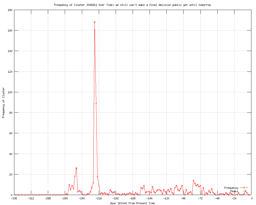 | 47 | we still can't make a final decision public yet until tomorrow Urls http://independent.ie/world-news/europe/wikileaks-julian-assange-decision-expected-today-on-asylum-bid-to-ecuador-3145733.html http://rte.ie/news/2012/0621/julian-assange-ecuador.html http://guardian.co.uk/media/2012/jun/21/julian-assange-ecuador-decision-asylum http://standard.co.uk/news/uk/ecuadorian-ambassador-says-country-is-considering-wikileaks-founder-julian-assanges-bid-for-political-asylum-7872213.html http://standard.co.uk/news/uk/wikileaks-julian-assanges-bid-for-political-asylum-at-ecuadorian-embassy-to-be-decided-today-7872213.html http://feeds.guardian.co.uk/%7Er/theguardian/media/rss/%7E3/DOusjqfHbec/julian-assange-ecuador-decision-asylum http://uk.news.yahoo.com/ecuador-decision-assange-asylum-imminent-report-065437980.html http://news.yahoo.com/ecuador-decision-assange-asylum-imminent-report-065437980.html http://news.yahoo.com/ecuador-decision-assange-asylum-imminent-report-072023028.html http://worldbulletin.net/index.php?aType=haber&ArticleID=91582 http://japantoday.com/category/world/view/ecuador-decision-on-assange-asylum-imminent-report http://archive.japantoday.com/category/world/view/ecuador-decision-on-assange-asylum-imminent-report http://rssreader.blogspot.com/2012/06/y-alert-yahoo-news-latest-news_8926.html http://rssreader.blogspot.com/2012/06/y-alert-yahoo-news-latest-news_9710.html http://thextrivia.blogspot.com/2012/06/oracle-chief-buys-hawaiian-island.html http://dnaindia.com/world/report_ecuador-decision-on-assange-asylum-imminent_1704931 http://edition.cnn.com/2012/06/21/world/europe/uk-assange-asylum/index.html http://paginadeinicio.com.mx/blog/679804/report-ecuador-decision-on-assange-asylum-imminent/ http://news24.com/World/News/Ecuador-decision-on-Assange-imminent-20120621 http://telegraph.feedsportal.com/c/32726/f/534871/s/2093c9a2/l/0L0Stelegraph0O0Cnews0Cworldnews0Cwikileaks0C93468650CJulian0EAssange0Ewill0Ebe0Earrested0Eregardless0Eof0EEcuador0Easylum0Edecision0Bhtml/story01.htm http://moblog.whmsoft.net/en/?p=4180 http://edition.cnn.com/2012/06/21/world/europe/uk-assange-asylum/index.html?eref=edition http://rssreader.blogspot.com/2012/06/y-alert-yahoo-news-latest-news_8775.html http://telegraph.feedsportal.com/c/32726/f/579330/s/2094097c/l/0L0Stelegraph0O0Cnews0Cworldnews0Cwikileaks0C93468650CJulian0EAssange0Ewill0Ebe0Earrested0Eregardless0Eof0EEcuador0Easylum0Edecision0Bhtml/story01.htm http://rssreader.blogspot.com/2012/06/y-alert-yahoo-news-latest-news_2786.html http://torontosun.com/2012/06/21/assange-ready-for-arrest http://calgarysun.com/2012/06/21/assange-ready-for-arrest http://winnipegsun.com/2012/06/21/assange-ready-for-arrest http://ottawasun.com/2012/06/21/assange-ready-for-arrest http://edmontonsun.com/2012/06/21/assange-ready-for-arrest http://odt.co.nz/news/world/214206/assange-ready-arrest-if-asylum-bid-fails http://feeds.huffingtonpost.com/~r/HP/media/~3/dsTXkgQkS0U/julian-assange-arrest-asylum_n_1616207.html http://Theatlantic.feedsportal.com/c/34375/f/625848/s/209e2a12/l/0L0Stheatlanticwire0N0Cglobal0C20A120C0A60Cecuador0Egetting0Ecold0Efeet0Ejulian0Eassanges0Easylum0C538280C/story01.htm http://reuters.com/article/2012/06/22/us-britain-ecuador-assange-idUSBRE85L13H20120622?feedType=RSS&feedName=topNews http://wkzo.com/news/articles/2012/jun/22/assange-ready-for-arrest-if-denied-asylum-colleague/ http://publicbroadcasting.net/wuky/news.newsmain/article/0/0/1940142/World/Assange.ready.for.arrest.if.denied.asylum.colleague http://news.yahoo.com/wikileaks-assange-says-ready-life-ecuador-010422970.html http://reuters.com/article/2012/06/22/us-britain-ecuador-assange-idUSBRE85L13H20120622?feedType=RSS&feedName=worldNews http://feeds.reuters.com/~r/reuters/topNews/~3/Y5Jjc0KNPJc/us-britain-ecuador-assange-idUSBRE85L13H20120622 http://newsdaily.com/stories/bre85l13h-us-britain-ecuador-assange/ http://feeds.reuters.com/~r/Reuters/worldNews/~3/emoPV9QbUIc/us-britain-ecuador-assange-idUSBRE85L13H20120622 http://publicbroadcasting.net/wabe/news.newsmain/article/0/0/1940142/World/Assange.ready.for.arrest.if.denied.asylum.colleague http://publicbroadcasting.net/wkyu/news.newsmain/article/0/0/1940142/World/Assange.ready.for.arrest.if.denied.asylum.colleague http://publicbroadcasting.net/wkyu/news.newsmain/article/0/0/1940146/Top.Stories/Assange.ready.for.arrest.if.denied.asylum.colleague http://rocketnews.com/2012/06/assange-ready-for-arrest-if-denied-asylum-colleague/ http://kgmi.com/Assange-ready-for-arrest-if-denied-asylum-colleagu/11461924?newsId=150183 http://reuters.com/article/2012/06/22/us-britain-ecuador-assange-idUSBRE85L13H20120622 |