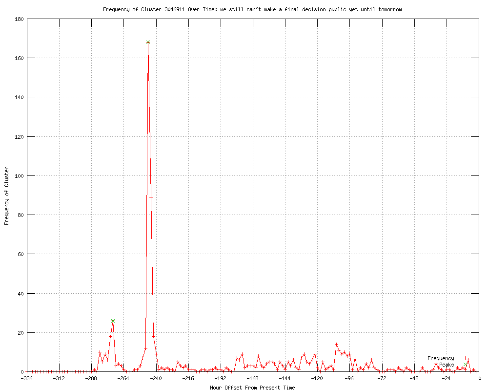 | 47 | we still can't make a final decision public yet until tomorrow Urls http://independent.ie/world-news/europe/wikileaks-julian-assange-decision-expected-today-on-asylum-bid-to-ecuador-3145733.html http://rte.ie/news/2012/0621/julian-assange-ecuador.html http://guardian.co.uk/media/2012/jun/21/julian-assange-ecuador-decision-asylum http://standard.co.uk/news/uk/ecuadorian-ambassador-says-country-is-considering-wikileaks-founder-julian-assanges-bid-for-political-asylum-7872213.html http://standard.co.uk/news/uk/wikileaks-julian-assanges-bid-for-political-asylum-at-ecuadorian-embassy-to-be-decided-today-7872213.html http://feeds.guardian.co.uk/%7Er/theguardian/media/rss/%7E3/DOusjqfHbec/julian-assange-ecuador-decision-asylum http://uk.news.yahoo.com/ecuador-decision-assange-asylum-imminent-report-065437980.html http://news.yahoo.com/ecuador-decision-assange-asylum-imminent-report-065437980.html http://news.yahoo.com/ecuador-decision-assange-asylum-imminent-report-072023028.html http://worldbulletin.net/index.php?aType=haber&ArticleID=91582 http://japantoday.com/category/world/view/ecuador-decision-on-assange-asylum-imminent-report http://archive.japantoday.com/category/world/view/ecuador-decision-on-assange-asylum-imminent-report http://rssreader.blogspot.com/2012/06/y-alert-yahoo-news-latest-news_8926.html http://rssreader.blogspot.com/2012/06/y-alert-yahoo-news-latest-news_9710.html http://thextrivia.blogspot.com/2012/06/oracle-chief-buys-hawaiian-island.html http://dnaindia.com/world/report_ecuador-decision-on-assange-asylum-imminent_1704931 http://edition.cnn.com/2012/06/21/world/europe/uk-assange-asylum/index.html http://paginadeinicio.com.mx/blog/679804/report-ecuador-decision-on-assange-asylum-imminent/ http://news24.com/World/News/Ecuador-decision-on-Assange-imminent-20120621 http://telegraph.feedsportal.com/c/32726/f/534871/s/2093c9a2/l/0L0Stelegraph0O0Cnews0Cworldnews0Cwikileaks0C93468650CJulian0EAssange0Ewill0Ebe0Earrested0Eregardless0Eof0EEcuador0Easylum0Edecision0Bhtml/story01.htm http://moblog.whmsoft.net/en/?p=4180 http://edition.cnn.com/2012/06/21/world/europe/uk-assange-asylum/index.html?eref=edition http://rssreader.blogspot.com/2012/06/y-alert-yahoo-news-latest-news_8775.html http://telegraph.feedsportal.com/c/32726/f/579330/s/2094097c/l/0L0Stelegraph0O0Cnews0Cworldnews0Cwikileaks0C93468650CJulian0EAssange0Ewill0Ebe0Earrested0Eregardless0Eof0EEcuador0Easylum0Edecision0Bhtml/story01.htm http://rssreader.blogspot.com/2012/06/y-alert-yahoo-news-latest-news_2786.html http://torontosun.com/2012/06/21/assange-ready-for-arrest http://calgarysun.com/2012/06/21/assange-ready-for-arrest http://winnipegsun.com/2012/06/21/assange-ready-for-arrest http://ottawasun.com/2012/06/21/assange-ready-for-arrest http://edmontonsun.com/2012/06/21/assange-ready-for-arrest http://odt.co.nz/news/world/214206/assange-ready-arrest-if-asylum-bid-fails http://feeds.huffingtonpost.com/~r/HP/media/~3/dsTXkgQkS0U/julian-assange-arrest-asylum_n_1616207.html http://Theatlantic.feedsportal.com/c/34375/f/625848/s/209e2a12/l/0L0Stheatlanticwire0N0Cglobal0C20A120C0A60Cecuador0Egetting0Ecold0Efeet0Ejulian0Eassanges0Easylum0C538280C/story01.htm http://reuters.com/article/2012/06/22/us-britain-ecuador-assange-idUSBRE85L13H20120622?feedType=RSS&feedName=topNews http://wkzo.com/news/articles/2012/jun/22/assange-ready-for-arrest-if-denied-asylum-colleague/ http://publicbroadcasting.net/wuky/news.newsmain/article/0/0/1940142/World/Assange.ready.for.arrest.if.denied.asylum.colleague http://news.yahoo.com/wikileaks-assange-says-ready-life-ecuador-010422970.html http://reuters.com/article/2012/06/22/us-britain-ecuador-assange-idUSBRE85L13H20120622?feedType=RSS&feedName=worldNews http://feeds.reuters.com/~r/reuters/topNews/~3/Y5Jjc0KNPJc/us-britain-ecuador-assange-idUSBRE85L13H20120622 http://newsdaily.com/stories/bre85l13h-us-britain-ecuador-assange/ http://feeds.reuters.com/~r/Reuters/worldNews/~3/emoPV9QbUIc/us-britain-ecuador-assange-idUSBRE85L13H20120622 http://publicbroadcasting.net/wabe/news.newsmain/article/0/0/1940142/World/Assange.ready.for.arrest.if.denied.asylum.colleague http://publicbroadcasting.net/wkyu/news.newsmain/article/0/0/1940142/World/Assange.ready.for.arrest.if.denied.asylum.colleague http://publicbroadcasting.net/wkyu/news.newsmain/article/0/0/1940146/Top.Stories/Assange.ready.for.arrest.if.denied.asylum.colleague http://rocketnews.com/2012/06/assange-ready-for-arrest-if-denied-asylum-colleague/ http://kgmi.com/Assange-ready-for-arrest-if-denied-asylum-colleagu/11461924?newsId=150183 http://reuters.com/article/2012/06/22/us-britain-ecuador-assange-idUSBRE85L13H20120622 |