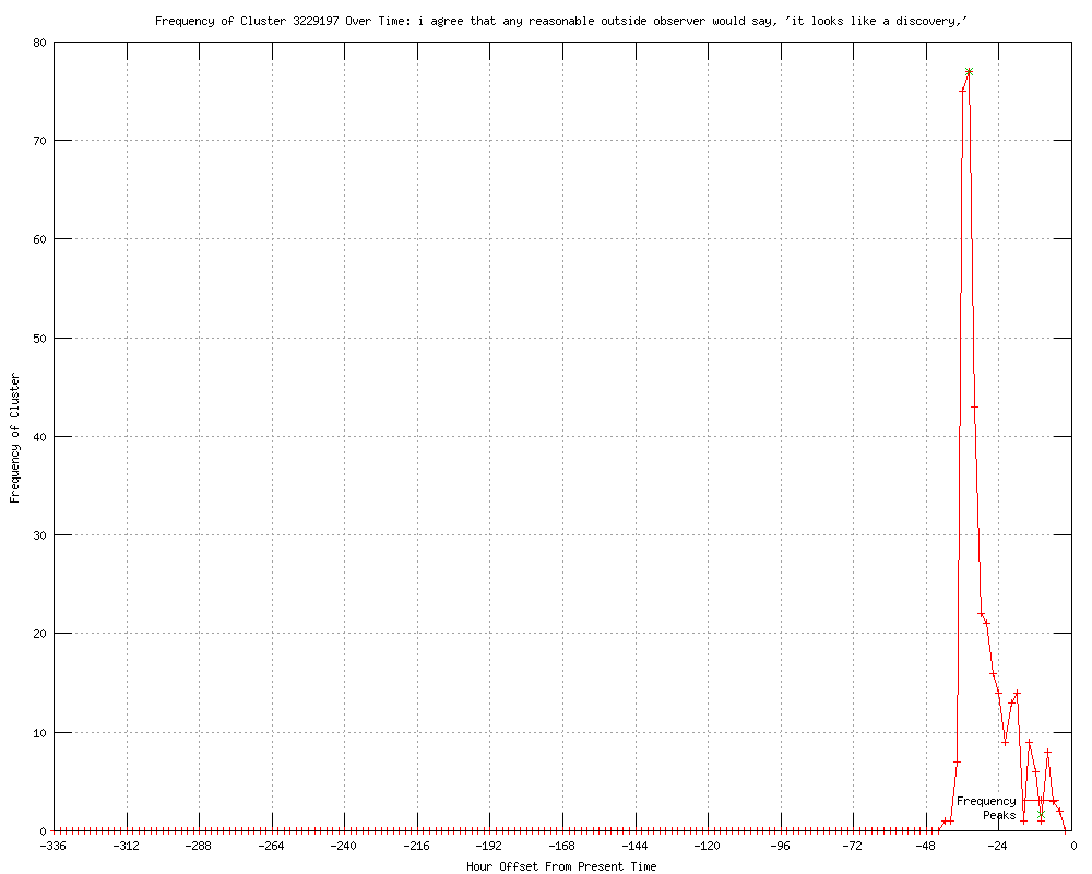 | 256 | i agree that any reasonable outside observer would say, 'it looks like a discovery,' Urls http://castanet.net/edition/news-story-77368-5-.htm#77368 http://castanet.net/edition/news-story-77370-5-.htm#77370 http://castanet.net/edition/news-story-77372-5-.htm#77372 http://castanet.net/edition/news-story-77378-5-.htm#77378 http://slumz.boxden.com/f5/jul-2-scientists-unveil-proof-god-particle-1777652/ http://cio.com.au/article/429371/scientists_may_found_proof_god_particle_/?utm_medium=rss&utm_source=taxonomyfeed http://computerworld.com.au/article/429371/scientists_may_found_proof_god_particle_/?utm_medium=rss&utm_source=taxonomyfeed http://techworld.com.au/article/429371/scientists_may_found_proof_god_particle_/?utm_medium=rss&utm_source=taxonomyfeed http://computerworld.com.au/article/429371/scientists_may_found_proof_god_particle_/?utm_medium=rss&utm_source=sectionfeed http://computerworld.co.nz/news.nsf/technology/scientists-may-have-found-proof-of-god-particle http://technorati.com/technology/article/scientists-will-announce-the-existence-of/ http://news.uk.msn.com/world/articles.aspx?cp-documentid=250445843 http://live5news.com/story/18930237/apnewsbreak-on-verge-of-new-particle-discovery http://wsfa.com/story/18930237/apnewsbreak-on-verge-of-new-particle-discovery http://wten.com/story/18930237/apnewsbreak-on-verge-of-new-particle-discovery http://wkrn.com/story/18930237/apnewsbreak-on-verge-of-new-particle-discovery http://mail.com/news/world/1402618-apnewsbreak-proof-god-particle.html http://khnl.com/story/18930237/apnewsbreak-on-verge-of-new-particle-discovery http://abc40.com/story/18930237/apnewsbreak-on-verge-of-new-particle-discovery http://klfy.com/story/18930237/apnewsbreak-on-verge-of-new-particle-discovery http://kswo.com/story/18930237/apnewsbreak-on-verge-of-new-particle-discovery http://wtol.com/story/18930237/apnewsbreak-on-verge-of-new-particle-discovery http://kwes.com/story/18930237/apnewsbreak-on-verge-of-new-particle-discovery http://newstimes.com/news/article/APNewsBreak-Proof-of-God-particle-found-3678506.php http://sfgate.com/news/article/APNewsBreak-Proof-of-God-particle-found-3678506.php http://wmbfnews.com/story/18930237/apnewsbreak-on-verge-of-new-particle-discovery http://wbay.com/story/18930237/apnewsbreak-on-verge-of-new-particle-discovery http://ktiv.com/story/18930237/apnewsbreak-on-verge-of-new-particle-discovery http://wandtv.com/story/18930237/apnewsbreak-on-verge-of-new-particle-discovery http://wdam.com/story/18930237/apnewsbreak-on-verge-of-new-particle-discovery http://newson6.com/story/18930237/apnewsbreak-on-verge-of-new-particle-discovery http://news.yahoo.com/apnewsbreak-proof-god-particle-found-131226045.html http://mysanantonio.com/news/article/APNewsBreak-Proof-of-God-particle-found-3678506.php http://koamtv.com/story/18930237/apnewsbreak-on-verge-of-new-particle-discovery http://wistv.com/story/18930237/apnewsbreak-on-verge-of-new-particle-discovery http://kmph.com/story/18930237/apnewsbreak-on-verge-of-new-particle-discovery http://wgem.com/story/18930237/apnewsbreak-on-verge-of-new-particle-discovery http://ckom.com/content/proof-god-particle-found http://wbez.org/news/scientists-glimpse-evidence-god-particle-100570 http://fox41.com/story/18930237/apnewsbreak-on-verge-of-new-particle-discovery http://ksla.com/story/18930237/apnewsbreak-on-verge-of-new-particle-discovery http://guardian.co.uk/world/feedarticle/10316925 http://guardian.co.uk/world/feedarticle/10316881 http://kfvs.com/story/18930237/apnewsbreak-on-verge-of-new-particle-discovery http://wect.com/story/18930237/apnewsbreak-on-verge-of-new-particle-discovery http://myfoxdfw.com/story/18930237/apnewsbreak-on-verge-of-new-particle-discovery http://thespec.com/news/world/article/753463--scientists-to-show-god-particle-exists http://cjme.com/content/proof-god-particle-found http://wlbt.com/story/18930237/apnewsbreak-on-verge-of-new-particle-discovery http://kcbd.com/story/18930237/apnewsbreak-on-verge-of-new-particle-discovery http://newstalk650.com/content/proof-god-particle-found http://uk.news.yahoo.com/science-almost-finds-god-particle-134631139.html http://knoe.com/story/18930237/apnewsbreak-on-verge-of-new-particle-discovery http://wrcbtv.com/story/18930237/apnewsbreak-on-verge-of-new-particle-discovery http://ktvn.com/story/18930237/apnewsbreak-on-verge-of-new-particle-discovery http://kswt.com/story/18930237/apnewsbreak-on-verge-of-new-particle-discovery http://northjersey.com/r?19=961&43=516177&44=161066575&32=4497&7=309037&40=http%3A%2F%2Fwww.northjersey.com%2Fnews%2Finternational%2F070212Proof_of_God_particle_found.html http://news9.com/story/18930237/apnewsbreak-on-verge-of-new-particle-discovery http://ajc.com/news/nation-world/apnewsbreak-proof-of-god-1468757.html?cxtype=rss_news_81963 http://da.feedsportal.com/c/845/f/464365/s/20ed3040/l/0L0Sbelfasttelegraph0O0Cnews0Cworld0Enews0Cscience0Ealmost0Efinds0Egod0Eparticle0E161799580Bhtml0Dr0FRSS/ia1.htm http://klkntv.com/story/18930237/apnewsbreak-on-verge-of-new-particle-discovery http://wdbo.com/ap/ap/general/apnewsbreak-on-verge-of-new-particle-discovery/nPkFG/ http://lex18.com/news/proof-of-so-called-god-particle-found/ http://thehindu.com/sci-tech/science/article3594941.ece http://corkman.ie/breaking-news/world-news/science-almost-finds-god-particle-3155324.html http://wlox.com/story/18930237/apnewsbreak-on-verge-of-new-particle-discovery http://uk.express.feedsportal.com/c/33338/f/565860/s/20ed90c6/l/0L0Sdailyexpress0O0Cposts0Cview0C330A30A70CScience0Ealmost0Efinds0EGod0Eparticle0E0C/story01.htm http://waff.com/story/18930237/apnewsbreak-on-verge-of-new-particle-discovery http://kwqc.com/story/18930237/apnewsbreak-on-verge-of-new-particle-discovery http://kxxv.com/story/18930237/apnewsbreak-on-verge-of-new-particle-discovery http://winnipegfreepress.com/breakingnews/researchers-on-verge-of-discovery-of-new-god-particle-that-explains-universe-161055625.html http://wboc.com/story/18930237/apnewsbreak-on-ver