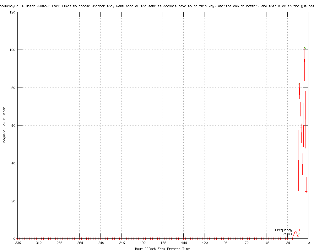 | 11 | it doesn't have to be this way. america can do better, and this kick in the gut has got to end Urls http://uk.news.yahoo.com/obama-defiant-romney-pounces-jobs-report-162143412.html http://news.yahoo.com/obama-defiant-romney-pounces-jobs-report-172143947.html http://my.news.yahoo.com/obama-defiant-romney-pounces-jobs-report-172143071.html http://dailystar.com.lb/News/International/2012/Jul-06/179658-obama-defiant-romney-pounces-on-jobs-report.ashx http://au.news.yahoo.com/a/-/business/14157549/obama-defiant-romney-pounces-on-jobs-report/ http://au.news.yahoo.com/world/a/-/world/14157549/obama-defiant-romney-pounces-on-jobs-report/ http://rocketnews.com/2012/07/obama-defiant-romney-pounces-on-jobs-report/ http://au.news.yahoo.com/a/-/world/14157549/obama-defiant-romney-pounces-on-jobs-report/ http://washingtonpost.com/blogs/election-2012/post/mitt-romney-president-obama-react-to-june-unemployment-report/2012/07/06/gJQA3LTuRW_blog.html?wprss=rss_campaigns http://content.usatoday.com/communities/theoval/post/2012/07/obama-jobs-report-step-in-the-right-direction/1?csp=34news&utm_source=feedburner&utm_medium=feed&utm_campaign=Feed:%20usatoday-NewsTopStories%20%28News%20-%20Top%20Stories%29 http://attackmachine.com/blog/2012/07/06/obama-looks-at-the-bright-side/ |