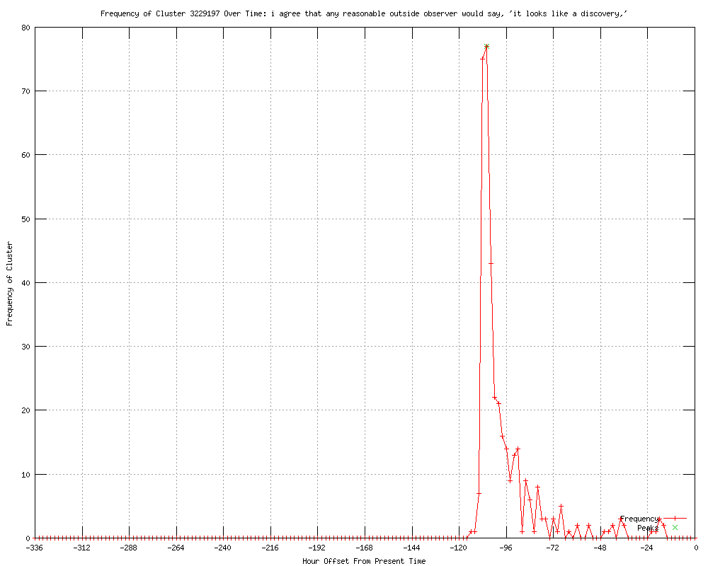| 270 | i agree that any reasonable outside observer would say, 'it looks like a discovery,' Urls http://castanet.net/edition/news-story-77368-5-.htm#77368 http://castanet.net/edition/news-story-77370-5-.htm#77370 http://castanet.net/edition/news-story-77372-5-.htm#77372 http://castanet.net/edition/news-story-77378-5-.htm#77378 http://slumz.boxden.com/f5/jul-2-scientists-unveil-proof-god-particle-1777652/ http://cio.com.au/article/429371/scientists_may_found_proof_god_particle_/?utm_medium=rss&utm_source=taxonomyfeed http://computerworld.com.au/article/429371/scientists_may_found_proof_god_particle_/?utm_medium=rss&utm_source=taxonomyfeed http://techworld.com.au/article/429371/scientists_may_found_proof_god_particle_/?utm_medium=rss&utm_source=taxonomyfeed http://computerworld.com.au/article/429371/scientists_may_found_proof_god_particle_/?utm_medium=rss&utm_source=sectionfeed http://computerworld.co.nz/news.nsf/technology/scientists-may-have-found-proof-of-god-particle http://technorati.com/technology/article/scientists-will-announce-the-existence-of/ http://news.uk.msn.com/world/articles.aspx?cp-documentid=250445843 http://live5news.com/story/18930237/apnewsbreak-on-verge-of-new-particle-discovery http://wsfa.com/story/18930237/apnewsbreak-on-verge-of-new-particle-discovery http://wten.com/story/18930237/apnewsbreak-on-verge-of-new-particle-discovery http://wkrn.com/story/18930237/apnewsbreak-on-verge-of-new-particle-discovery http://mail.com/news/world/1402618-apnewsbreak-proof-god-particle.html http://khnl.com/story/18930237/apnewsbreak-on-verge-of-new-particle-discovery http://abc40.com/story/18930237/apnewsbreak-on-verge-of-new-particle-discovery http://klfy.com/story/18930237/apnewsbreak-on-verge-of-new-particle-discovery http://kswo.com/story/18930237/apnewsbreak-on-verge-of-new-particle-discovery http://wtol.com/story/18930237/apnewsbreak-on-verge-of-new-particle-discovery http://kwes.com/story/18930237/apnewsbreak-on-verge-of-new-particle-discovery http://newstimes.com/news/article/APNewsBreak-Proof-of-God-particle-found-3678506.php http://sfgate.com/news/article/APNewsBreak-Proof-of-God-particle-found-3678506.php http://wmbfnews.com/story/18930237/apnewsbreak-on-verge-of-new-particle-discovery http://wbay.com/story/18930237/apnewsbreak-on-verge-of-new-particle-discovery http://ktiv.com/story/18930237/apnewsbreak-on-verge-of-new-particle-discovery http://wandtv.com/story/18930237/apnewsbreak-on-verge-of-new-particle-discovery http://wdam.com/story/18930237/apnewsbreak-on-verge-of-new-particle-discovery http://newson6.com/story/18930237/apnewsbreak-on-verge-of-new-particle-discovery http://news.yahoo.com/apnewsbreak-proof-god-particle-found-131226045.html http://mysanantonio.com/news/article/APNewsBreak-Proof-of-God-particle-found-3678506.php http://koamtv.com/story/18930237/apnewsbreak-on-verge-of-new-particle-discovery http://wistv.com/story/18930237/apnewsbreak-on-verge-of-new-particle-discovery http://kmph.com/story/18930237/apnewsbreak-on-verge-of-new-particle-discovery http://wgem.com/story/18930237/apnewsbreak-on-verge-of-new-particle-discovery http://ckom.com/content/proof-god-particle-found http://wbez.org/news/scientists-glimpse-evidence-god-particle-100570 http://fox41.com/story/18930237/apnewsbreak-on-verge-of-new-particle-discovery http://ksla.com/story/18930237/apnewsbreak-on-verge-of-new-particle-discovery http://guardian.co.uk/world/feedarticle/10316925 http://guardian.co.uk/world/feedarticle/10316881 http://kfvs.com/story/18930237/apnewsbreak-on-verge-of-new-particle-discovery http://wect.com/story/18930237/apnewsbreak-on-verge-of-new-particle-discovery http://myfoxdfw.com/story/18930237/apnewsbreak-on-verge-of-new-particle-discovery http://thespec.com/news/world/article/753463--scientists-to-show-god-particle-exists http://cjme.com/content/proof-god-particle-found http://wlbt.com/story/18930237/apnewsbreak-on-verge-of-new-particle-discovery http://kcbd.com/story/18930237/apnewsbreak-on-verge-of-new-particle-discovery http://newstalk650.com/content/proof-god-particle-found http://uk.news.yahoo.com/science-almost-finds-god-particle-134631139.html http://knoe.com/story/18930237/apnewsbreak-on-verge-of-new-particle-discovery http://wrcbtv.com/story/18930237/apnewsbreak-on-verge-of-new-particle-discovery http://ktvn.com/story/18930237/apnewsbreak-on-verge-of-new-particle-discovery http://kswt.com/story/18930237/apnewsbreak-on-verge-of-new-particle-discovery http://northjersey.com/r?19=961&43=516177&44=161066575&32=4497&7=309037&40=http%3A%2F%2Fwww.northjersey.com%2Fnews%2Finternational%2F070212Proof_of_God_particle_found.html http://news9.com/story/18930237/apnewsbreak-on-verge-of-new-particle-discovery http://ajc.com/news/nation-world/apnewsbreak-proof-of-god-1468757.html?cxtype=rss_news_81963 http://da.feedsportal.com/c/845/f/464365/s/20ed3040/l/0L0Sbelfasttelegraph0O0Cnews0Cworld0Enews0Cscience0Ealmost0Efinds0Egod0Eparticle0E161799580Bhtml0Dr0FRSS/ia1.htm http://klkntv.com/story/18930237/apnewsbreak-on-verge-of-new-particle-discovery http://wdbo.com/ap/ap/general/apnewsbreak-on-verge-of-new-particle-discovery/nPkFG/ http://lex18.com/news/proof-of-so-called-god-particle-found/ http://thehindu.com/sci-tech/science/article3594941.ece http://corkman.ie/breaking-news/world-news/science-almost-finds-god-particle-3155324.html http://wlox.com/story/18930237/apnewsbreak-on-verge-of-new-particle-discovery http://uk.express.feedsportal.com/c/33338/f/565860/s/20ed90c6/l/0L0Sdailyexpress0O0Cposts0Cview0C330A30A70CScience0Ealmost0Efinds0EGod0Eparticle0E0C/story01.htm http://waff.com/story/18930237/apnewsbreak-on-verge-of-new-particle-discovery http://kwqc.com/story/18930237/apnewsbreak-on-verge-of-new-particle-discovery http://kxxv.com/story/18930237/apnewsbreak-on-verge-of-new-particle-discovery http://winnipegfreepress.com/breakingnews/researchers-on-verge-of-discovery-of-new-god-particle-that-explains-universe-161055625.html http://wboc.com/story/18930237/apnewsbreak-on-ver