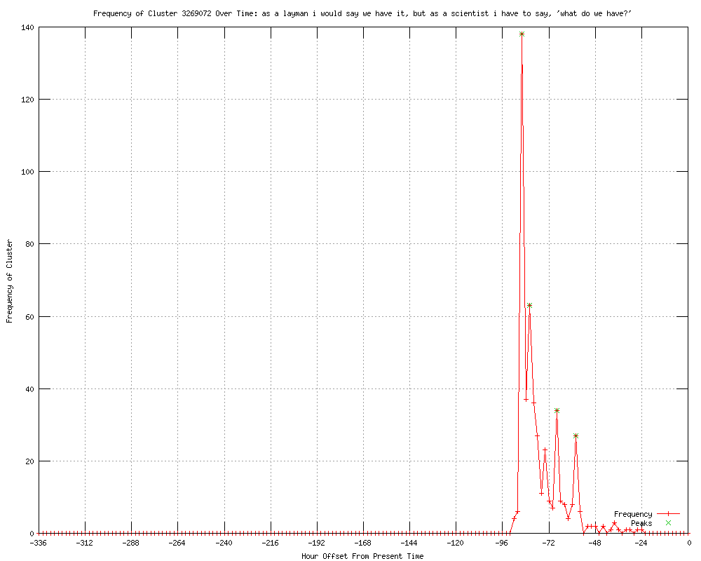 | 15 | as a layman i would say we have it, but as a scientist i have to say, 'what do we have?' Urls http://my.news.yahoo.com/crunch-time-looms-quest-god-particle-034321104.html http://rawstory.com/rs/2012/07/04/higgs-like-particle-found-in-milestone-for-mankind/ http://nwotruth.com/higgs-like-particle-found-in-milestone-for-mankind/ http://abs-cbnnews.com/global-filipino/world/07/04/12/god-particle-discovery-milestone-mankind http://timesofindia.indiatimes.com/home/science/God-particle-We-have-reached-a-milestone-in-our-understanding-of-nature-scientists-say/articleshow/14676020.cms http://da.feedsportal.com/c/33039/f/555218/s/be5a089/l/0Ltimesofindia0Bindiatimes0N0Chome0Cscience0CGod0Eparticle0EWe0Ehave0Ereached0Ea0Emilestone0Ein0Eour0Eunderstanding0Eof0Enature0Escientists0Esay0Carticleshow0C146760A20A0Bcms/ia1.htm http://evans-politics.com/higgs-like-god-particle-found-by-cern-scientists.html http://redicecreations.com/article.php?id=20573 http://gulf-times.com//site/topics/article.asp?cu_no=2&item_no=516853&version=1&template_id=57&parent_id=56 http://news4u.co.in/2012/07/god-particle-we-have-reached-a-milestone-in-our-understanding-of-nature-scientists-say/ http://thefinancialexpress-bd.com/more.php?news_id=135634&date=2012-07-05 http://arabtimesonline.com/RSS/tabid/69/smid/414/ArticleID/185243/Default.aspx http://veggieboards.com/t/136383/higgs-boson-hunt-over-cern-scientists-at-large-hadron-collider-find-god-particle http://arabtimesonline.com/NewsDetails/tabid/96/smid/414/ArticleID/185243/reftab/69/Default.aspx http://technology.inquirer.net/13361/higgs-like-particle-found-in-milestone-for-mankind |