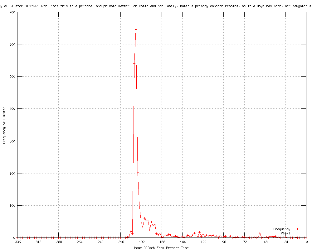 | 14 | a personal and private matter for katie and her family ... katie's primary concern remains, as it always has been, her daughter's best interest Urls http://publicbroadcasting.net/wabe/news.newsmain/article/0/8/1942053/Entertainment.News/Katie.Holmes.finds.Tom.Cruise.is. http://publicbroadcasting.net/wuky/news.newsmain/article/0/0/1942053/Arts..and..Culture/Katie.Holmes.finds.Tom.Cruise.is. http://au.news.yahoo.com/world/a/-/world/14092692/katie-holmes-finds-tom-cruise-is-mission-impossible/ http://au.news.yahoo.com/a/-/world/14092692/katie-holmes-finds-tom-cruise-is-mission-impossible/ http://au.news.yahoo.com/a/-/business/14092814/katie-holmes-to-divorce-tom-cruise/ http://abc.net.au/news/2012-06-30/katie-holmes-to-divorce-tom-cruise/4102080 http://thenews.com.pk/article-56663-Katie-Holmes-divorcing-Tom-Cruise http://thezimbabwemail.com/entertainments/12381-katie-holmes-finds-tom-cruise-is-mission-impossible.html http://au.news.yahoo.com/a/-/newshome/14092814/katie-holmes-to-divorce-tom-cruise/ http://au.news.yahoo.com/entertainment/a/-/entertainment/14092814/katie-holmes-to-divorce-tom-cruise/ http://palaisip.blogspot.com/2012/06/katie-holmes-and-tom-cruise-to-divorce.html http://thenews.com.pk/article-56663-Katie-Holmes-finds-Tom-Cruise-is-%22Mission:-Impossible%22 http://thewebmagazine.blogspot.com/2012/06/katie-holmes-filed-divorce.html http://wdbj7.com/sns-rt-us-tomcruise-katieholmesbre85s16m-20120629,0,6580061.story |
