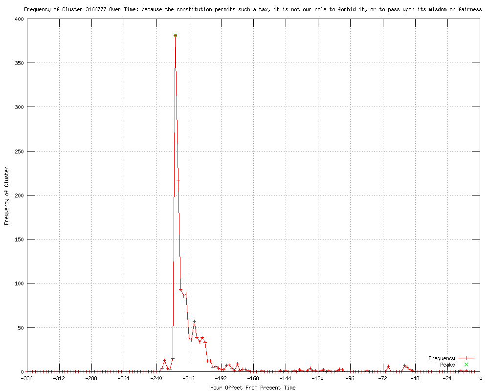 | 1205 | because the constitution permits such a tax, it is not our role to forbid it, or to pass upon its wisdom or fairness Urls http://blog.locustfork.net/2012/06/u-s-supreme-court-upholds-constitutionality-of-health-care-law/ http://theledger.com/article/20120628/politics/120629337 http://kttc.com/story/18903947/high-court-upholds-key-part-of-obama-health-law http://wbez.org/news/supreme-court-upholds-requirement-most-americans-have-health-insurance-100489 http://newsherald.com/news/uncertainty-103746-washington-abounds.html http://reuters.com/article/2012/06/28/us-usa-healthcare-court-idUSBRE85R06420120628?feedType=RSS&feedName=businessNews http://reuters.com/article/2012/06/28/us-usa-healthcare-court-idUSBRE85R06420120628?feedType=RSS&feedName=everything&virtualBrandChannel=11563 http://feeds.reuters.com/%7Er/reuters/businessNews/%7E3/EFooMJw6Z5M/us-usa-healthcare-court-idUSBRE85R06420120628 http://reuters.com/article/2012/06/28/us-usa-healthcare-court-idUSBRE85R06420120628 http://rss.cnn.com/~r/rss/cnn_latest/~3/HidA1DxeVFA/index.html http://theskanner.com/article/Supreme-Court-Upholds-Obamacare-54-2012-06-28 http://justnews.com/news/politics/Court-upholds-health-care-law-White-House-elated/-/1895020/15329532/-/5o6iffz/-/index.html http://intuitivefred888.blogspot.com/2012/06/supreme-court-upholds-obamacare-5-4.html http://thoroughlyandersoncooper.blogspot.com/2012/06/obamacare-upheld.html http://justnews.com/news/politics/Obama-Ruling-a-victory-for-all-Americans/-/1895020/15329532/-/gdyisj/-/index.html http://kpax.com/news/obama-supreme-court-ruling-on-health-care-a-victory-for-all-americans/ http://orianomattei.blogspot.com/2012/06/obama-supreme-court-ruling-on-health.html http://justnews.com/news/politics/Obama-Ruling-a-victory-for-all/-/1895020/15329532/-/1uejj3/-/index.html http://pukhtunkhwatimes.blogspot.com/2012/06/us-supreme-court-upholds-obamacare-5-4.html http://freeinternetpress.com/story/President-Obama-Supreme-Court-Ruling-On-Health-Care-A-Victory-For-All-Americans-35265.html http://stylemagazine.com/supreme-court-upholds-obamacare-5-4-white-house-elated/ http://cnn.com/2012/06/28/politics/supreme-court-health-ruling/index.html?hpt=hp_t1 http://justnews.com/news/politics/Supreme-Court-upholds-Obamacare-5-4/-/1895020/15329532/-/htv1yb/-/index.html http://cnn.com/2012/06/28/politics/supreme-court-health-ruling/index.html?hpt=hp_c1 http://justnews.com/news/politics/Obama-Health-care-ruling-a-victory-for-all/-/1895020/15329532/-/gq7vt/-/index.html http://.timesdispatch.com/news/2012/jun/28/16/anticipation-builds-health-care-decision-ar-2019804/ http://baltimoresun.com/business/bs-hs-supreme-court-health-decision-20120628,0,6735407.story?track=rss http://mydesert.com/article/20120628/LIFESTYLES03/120628001/Supreme-Court-upholds-health-law?odyssey=nav|head http://feeds.abcnews.com/click.phdo?i=74fea4e26884b7d67221ede2712903ad http://wlsam.com/Article.asp?id=2484168 http://wlsam.com/Article.asp?id=2484168&spid= http://prospect.org/article/tale-two-justices http://leftword.blogdig.net/archives/articles/June2012/28/A_Tale_of_Two_Justices.html http://freespeech.org/text/tale-two-justices http://cbc.ca/news/business/story/2012/06/28/healthcare-ruling-supreme-court.html?cmp=rss http://cbc.ca/news/politics/story/2012/06/28/healthcare-ruling-supreme-court.html?cmp=rss http://generalblogger.com/angry-birds-are-not-much-fun-in-real-life/ http://mydesert.com/article/20120628/LIFESTYLES03/120628001/Olds-Court-didn-t-get-dragged-into-politics-?odyssey=nav|head http://mydesert.com/article/20120628/LIFESTYLES03/120628001/-We-re-not-going-fix-overnight-?odyssey=nav|head http://wric.com/story/18903931/high-court-upholds-key-part-of-obama-health-law http://wrex.com/story/18903931/high-court-upholds-key-part-of-obama-health-law http://newson6.com/story/18903931/high-court-upholds-key-part-of-obama-health-law http://abc40.com/story/18903931/high-court-upholds-key-part-of-obama-health-law http://kswo.com/story/18903931/high-court-upholds-key-part-of-obama-health-law http://toledoblade.com/Politics/2012/06/29/Supreme-Court-upholds-health-care-law.html http://sfgate.com/news/article/High-court-upholds-Obama-health-law-3669996.php http://news.yahoo.com/obamacare-survives-supreme-court-5-takeaways-115000109.html http://theweek.com/article/index/229985/obamacare-survives-the-supreme-court-5-takeaways http://ajc.com/news/nation-world/high-court-upholds-obama-1466268.html?cxtype=rss_sports_82075 http://connecticut.onpolitix.com/news/126759/high-court-upholds-obama-health-law?referrer=wtnh.com http://feeds.foxnews.com/~r/foxnews/national/~3/x1pfhcgqq1g/?utm_source=rss&utm_medium=rss&utm_campaign=supreme-court-upholds-heart-of-obama-health-care-law-seeking-to-cover-30-million-uninsured http://seattlepi.com/news/article/High-court-upholds-Obama-health-law-3669996.php http://newsvine.com/_news/2012/06/28/12460466-high-court-upholds-obama-health-law http://norwalkcitizenonline.com/news/article/High-court-upholds-Obama-health-law-3669996.php http://ajc.com/news/nation-world/high-court-upholds-obama-1466268.html?cxtype=rss_news_82111 http://.ohio-votes.com/news/2012/jun/28/12/supreme-court-upholds-obama-laws-health-insurance--ar-1086193/ http://news.yahoo.com/high-court-upholds-obama-health-law-161315841.html http://startribune.com/politics/160675375.html http://newstimes.com/news/article/High-court-upholds-Obama-health-law-3669996.php http://.nbc17.com/news/2012/jun/28/9/supreme-court-unveil-health-care-decision-events-p-ar-2392078/ http://newsvine.com/_news/2012/06/28/12460466-high-court-upholds-obama-health-law-by-5-4-vote http://health.yahoo.com/news/s/ap/high-court-upholds-obama-health-law http://.wsls.com/news/2012/jun/28/high-court-upholds-obama-health-law-ar-2020400/ http://krnv.com/news/story/Court-upholds-individual-mandate-in-health-care/tKLCfe_9eU2l-voDxde4bw.cspx http://inforum.com/event/apArticle/id/D9VM84V00/ http://news.yahoo.com/high-court-upholds-obama-health-law-5-4-163351908.html http://