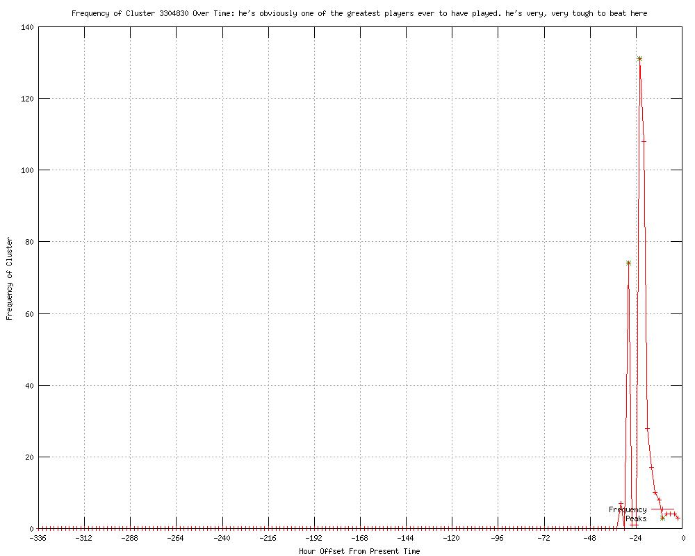 | 7 | he's obviously one of the greatest players ever to have played. he's very, very tough to beat here Urls http://uk.news.yahoo.com/murray-not-ready-celebrate-just-yet-203625532--ten.html http://uk.reuters.com/article/2012/07/06/tennis-wimbledon-murray-quotes-idUKL3E8I63EC20120706?feedType=RSS&feedName=tennisNews http://abs-cbnnews.com/sports/07/06/12/murray-not-ready-celebrate-just-yet http://moneycontrol.com/news/wire-news/murray-not-ready-to-celebrate-just-yet_727177.html http://rp1.abs-cbnnews.com/sports/07/06/12/murray-not-ready-celebrate-just-yet http://reuters.com/article/2012/07/06/us-tennis-wimbledon-murray-quotes-idUSBRE86513Y20120706?feedType=RSS&feedName=sportsNews http://kgmi.com/Murray-not-ready-to-celebrate-just-yet/11461894?newsId=152625 |