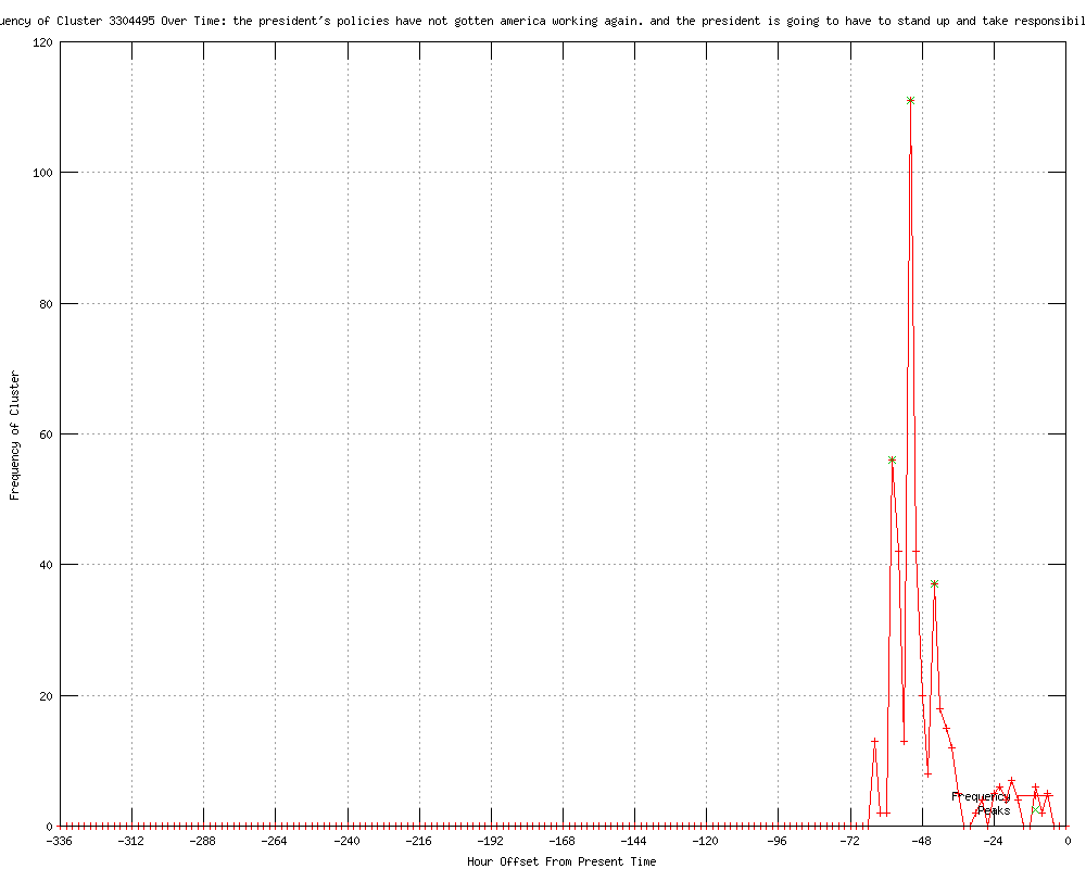 | 146 | the president's policies have not gotten america working again. and the president is going to have to stand up and take responsibility for it Urls http://post-gazette.com/stories/news/politics-national/obama-stop-comes-to-pittsburgh-as-campaign-turns-to-jobs-643668/ http://toledoblade.com/Politics/2012/07/07/Obama-Vision-plainly-varies-from-foe.html http://feeds.huffingtonpost.com/~r/HP/Politics/~3/1_TYX6Xb73A/obama-romney-jobs-numbers_n_1653820.html http://longislandpress.com/2012/07/06/as-obama-campaigns-jobs-numbers-sure-to-set-tone/ http://longislandpress.com/2012/07/06/as-obama-campaigns-jobs-numbers-sure-to-set-tone-2/ http://mysanantonio.com/news/article/As-Obama-campaigns-jobs-numbers-sure-to-set-tone-3687487.php http://app.com/article/20120706/NJBIZ/307060067/1003/BUSINESS&source=rss http://news-sentinel.com/apps/pbcs.dll/article?AID=/20120706/AP01/307069946 http://csbj.com/2012/07/06/as-obama-campaigns-jobs-numbers-sure-to-set-tone/ http://cnbc.com//id/48093925 http://mercurynews.com/presidentelect/ci_21020279/presidential-candidates-focus-kick-gut-from-jobs-report?source=rss http://wdbo.com/ap/ap/labor/as-obama-campaigns-jobs-numbers-sure-to-set-tone/nPnZ4/ http://cnbc.com/id/48093925 http://denverpost.com/politics/ci_21018455/obama-campaigns-jobs-numbers-sure-set-tone?source=rss http://denverpost.com/business/ci_21018455/obama-campaigns-jobs-numbers-sure-set-tone?source=rss http://mail.com/news/politics/1411314-tepid-jobs-data-sets-tone-presidential-contest.html http://news.yahoo.com/tepid-jobs-data-sets-tone-presidential-contest-160808634.html http://chron.com/news/article/Tepid-jobs-data-sets-tone-for-presidential-contest-3687487.php http://mysanantonio.com/news/article/Tepid-jobs-data-sets-tone-for-presidential-contest-3687487.php http://denverpost.com/breakingnews/ci_21018455/obama-campaigns-jobs-numbers-sure-set-tone?source=rss http://denverpost.com/news/ci_21018455/obama-campaigns-jobs-numbers-sure-set-tone?source=rss http://us.rd.yahoo.com/finance/news/rss/story/*http://finance.yahoo.com/news/tepid-jobs-data-sets-tone-160932928.html http://kdwn.com/news/national-news/Tepid_jobs_data_sets_tone_for_presidential_contest http://midwestdemocracy.com/articles/jobs-report-bad-news-obama-campaign/#storylink=rss http://dailytribune.com/article/20120706/NEWS06/120709704/tepid-jobs-data-sets-tone-for-presidential-contest http://macombdaily.com/article/20120706/NEWS06/120709684/tepid-jobs-data-sets-tone-for-presidential-contest http://seattlepi.com/news/article/Tepid-jobs-data-sets-tone-for-presidential-contest-3687487.php http://wral.com/business/story/11288072/ http://.wsls.com/news/2012/jul/06/tepid-jobs-data-sets-tone-for-presidential-contest-ar-2038595/ http://feeds.foxnews.com/~r/foxnews/national/~3/bMGCghiCUVg/?utm_source=rss&utm_medium=rss&utm_campaign=jobs-data-sets-tone-for-campaign-step-in-the-right-direction-versus-kick-in-the-gut http://crescent-news.com/latest%20headlines/2012/07/06/tepid-jobs-data-sets-tone-for-presidential-contest http://cnsnews.com/news/article/tepid-jobs-data-sets-tone-presidential-contest http://fox28.com/story/18961997/as-obama-campaigns-jobs-numbers-sure-to-set-tone http://chronicle.northcoastnow.com/2012/07/06/obama-continues-bus-tour-gets-jobs-report/ http://nola.com/politics/index.ssf/2012/07/tepid_jobs_data_sets_tone_for.html http://kstp.com/news/stories/s2680559.shtml?cat=1 http://newsday.com/elections/mitt-romney-jobs-data-kick-in-the-gut-1.3824152 http://kstc45.com/article/stories/s2680568.shtml?cat=11512 http://kstc45.com/article/stories/S2680568.shtml?cat=10905 http://sify.com/news/Tepid-jobs-data-sets-tone-for-presidential-contest-news-others-mhgqqqbehbd.html http://sfgate.com/news/article/Tepid-jobs-data-sets-tone-for-presidential-contest-3687487.php http://kstc45.com/article/stories/S2680568.shtml?cat=11512 http://news-sentinel.com/apps/pbcs.dll/article?AID=/20120706/NEWS/120709727/1006 http://news-sentinel.com/apps/pbcs.dll/article?AID=/20120706/NEWS/120709727 http://macombdaily.com/article/20120706/NEWS06/120709650/tepid-jobs-data-sets-tone-for-presidential-contest http://news-sentinel.com/article/2012120709727 http://wdbo.com/ap/ap/labor/tepid-jobs-data-sets-tone-for-presidential-contest/nPnm7/ http://news-sentinel.com/apps/pbcs.dll/article?AID=/20120706/NEWS/120709727/1006/FORTREPORT http://news-sentinel.com/apps/pbcs.dll/article?AID=/20120706/NEWS/120709727/1006/RANT http://wdbo.com/ap/ap/political/tepid-jobs-data-sets-tone-for-presidential-contest/nPnm7/ http://lex18.com/news/tepid-jobs-data-sets-tone-for-presidential-contest/ http://theledger.com/article/20120707/politics/120709524 http://dailytribune.com/article/20120706/NEWS06/120709669/tepid-jobs-data-sets-tone-for-presidential-contest http://news-sentinel.com/apps/pbcs.dll/article?AID=/20120706/NEWS/120709727/1006/EDUCATION http://seattlepi.com/news/article/Tepid-jobs-data-set-a-tone-for-presidential-debate-3687487.php http://.wsls.com/news/2012/jul/06/tepid-jobs-data-set-a-tone-for-presidential-debate-ar-2039066/ http://news.yahoo.com/tepid-jobs-data-set-tone-presidential-debate-212812775.html http://newsok.com/tepid-jobs-data-set-a-tone-for-presidential-debate/article/feed/401109?custom_click=rss http://chron.com/news/article/Tepid-jobs-data-set-a-tone-for-presidential-debate-3687487.php http://mysanantonio.com/news/article/Tepid-jobs-data-set-a-tone-for-presidential-debate-3687487.php http://mail.com/news/politics/1411314-tepid-jobs-data-set-tone-presidential-debate.html http://sify.com/news/Tepid-jobs-data-set-a-tone-for-presidential-debate-news-others-mhgqqqbehbd.html http://kdwn.com/news/national-news/Tepid_jobs_data_set_a_tone_for_presidential_debate http://cnsnews.com/news/article/tepid-jobs-data-set-tone-presidential-debate http://rocketnews.com/2012/07/tepid-jobs-data-set-a-tone-for-presidential-debate/ http://newsday.com/news/nation/tepid-jobs-data-set-a-tone-for-presidential-debate-1.3824534 http://independent.co.uk/news/world/americas/romney-seizes-o