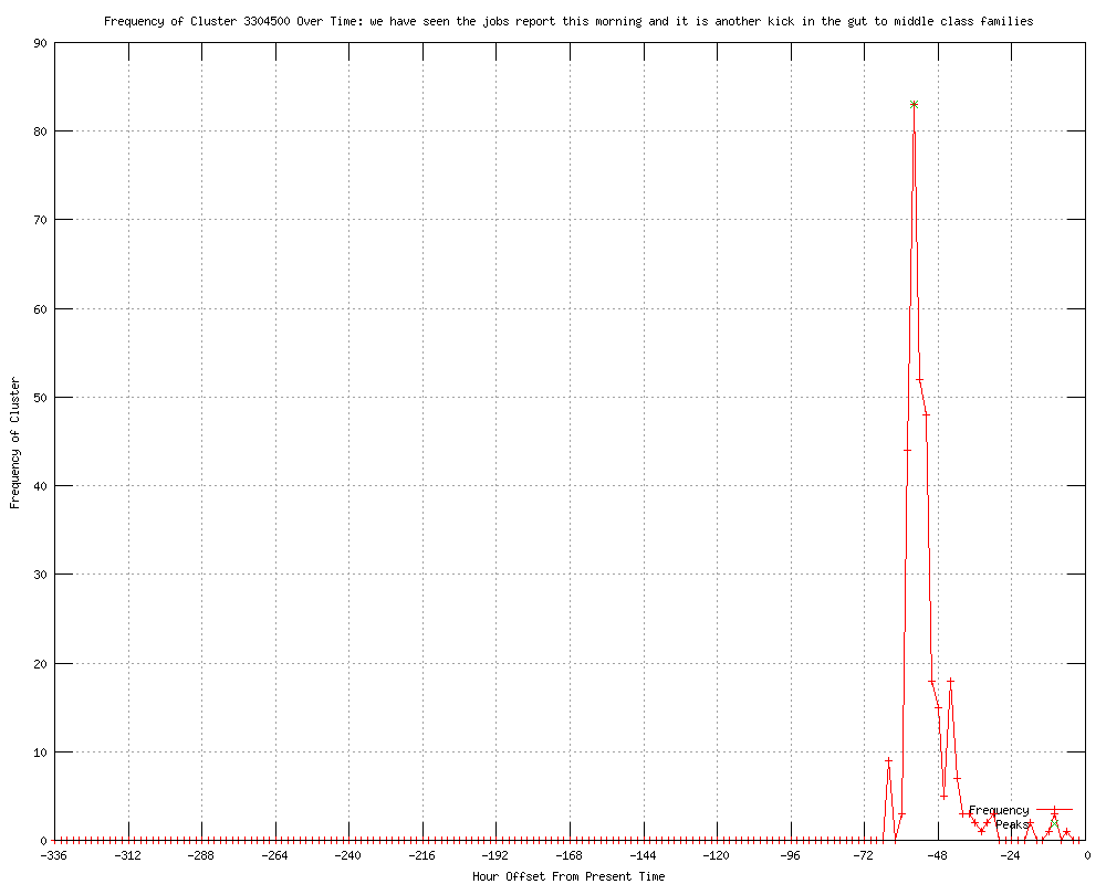 | 9 | we have seen the jobs report this morning and it is another kick in the gut to middle class families Urls http://abcnews.go.com/blogs/politics/2012/07/politicians-sound-off-on-june-jobs-report/ http://wapi1070.com/rssItem.asp?feedid=114&itemid=29874068 http://ksfo560.com/rssItem.asp?feedid=114&itemid=29874068 http://wgowam.com/rssItem.asp?feedid=114&itemid=29874068 http://wbsm.com/rssItem.asp?feedid=114&itemid=29874068 http://wjimam.com/rssItem.asp?feedid=114&itemid=29874068 http://wbap.com/rssItem.asp?feedid=114&itemid=29874068 http://wjr.net/rssItem.asp?feedid=114&itemid=29874068 http://cbsnews.com/8301-503544_162-57467582-503544/republicans-seize-on-june-jobs-report-as-evidence-of-failed-wh-policies/ |