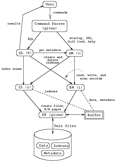 - QL = Query Checker, Query Optimizer (simple), Execution Engine