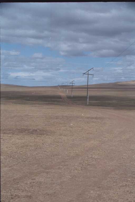 The only infranstructure in Mongolia: a road and electricity poles