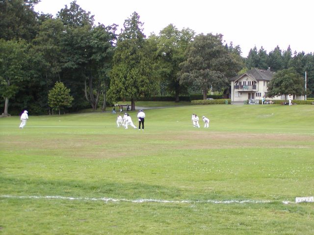 A cricket match in progress in Stanley Park. There were, in fact, two matches being played simultaneously!