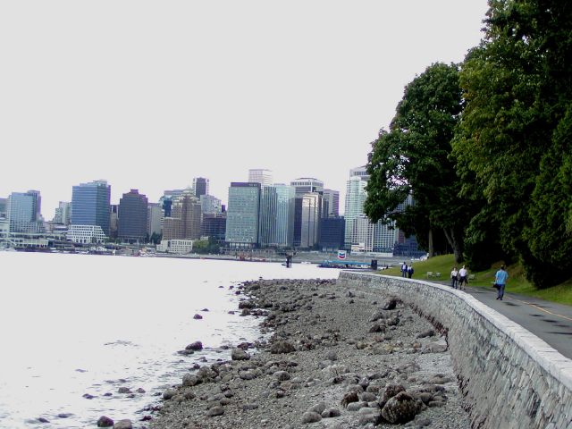 The waterfront in Stanley Park. Downtown Vancouver in the background.